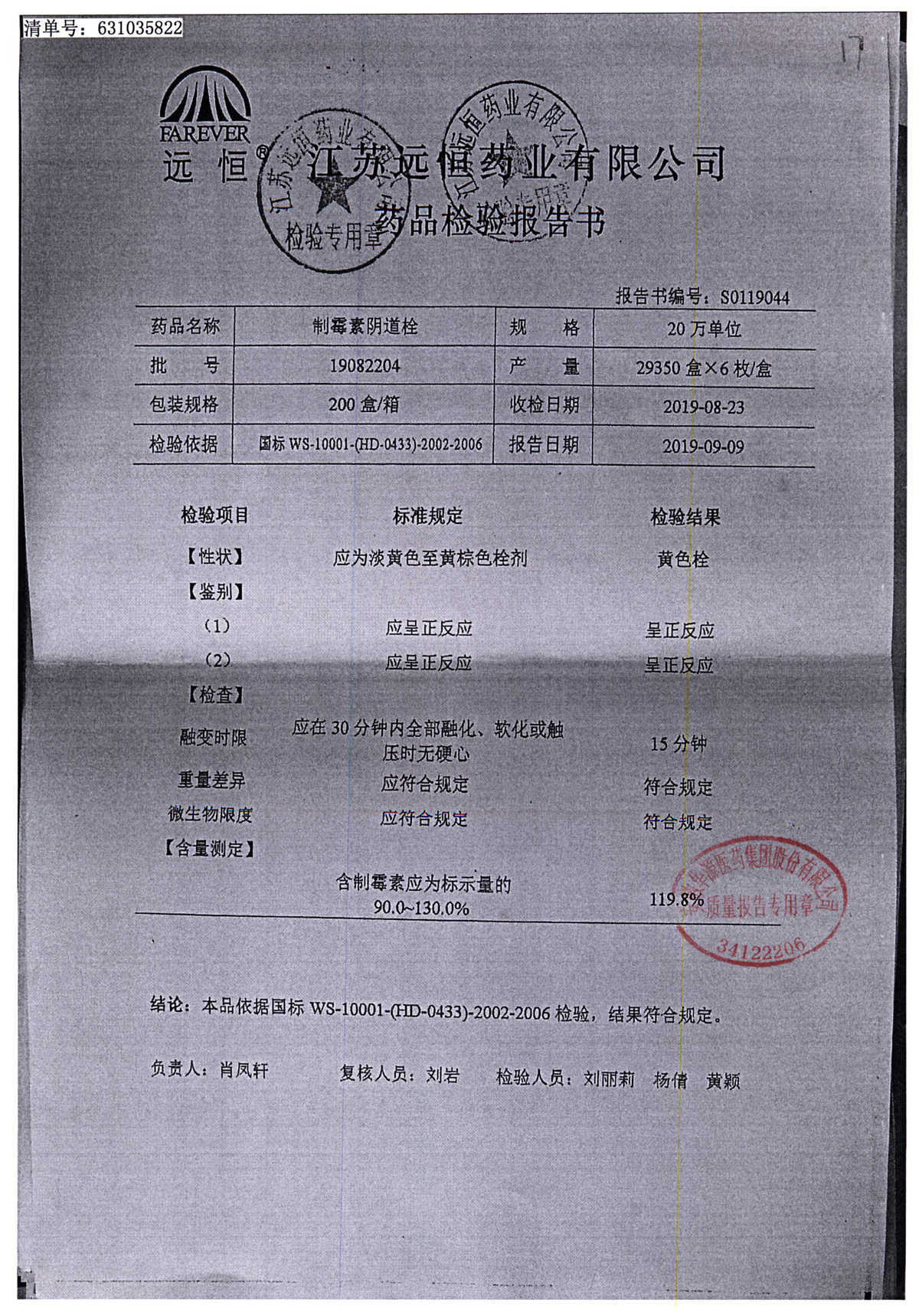 制霉素阴道栓 | 20万单位 | 19050802 | 查看详情 |
