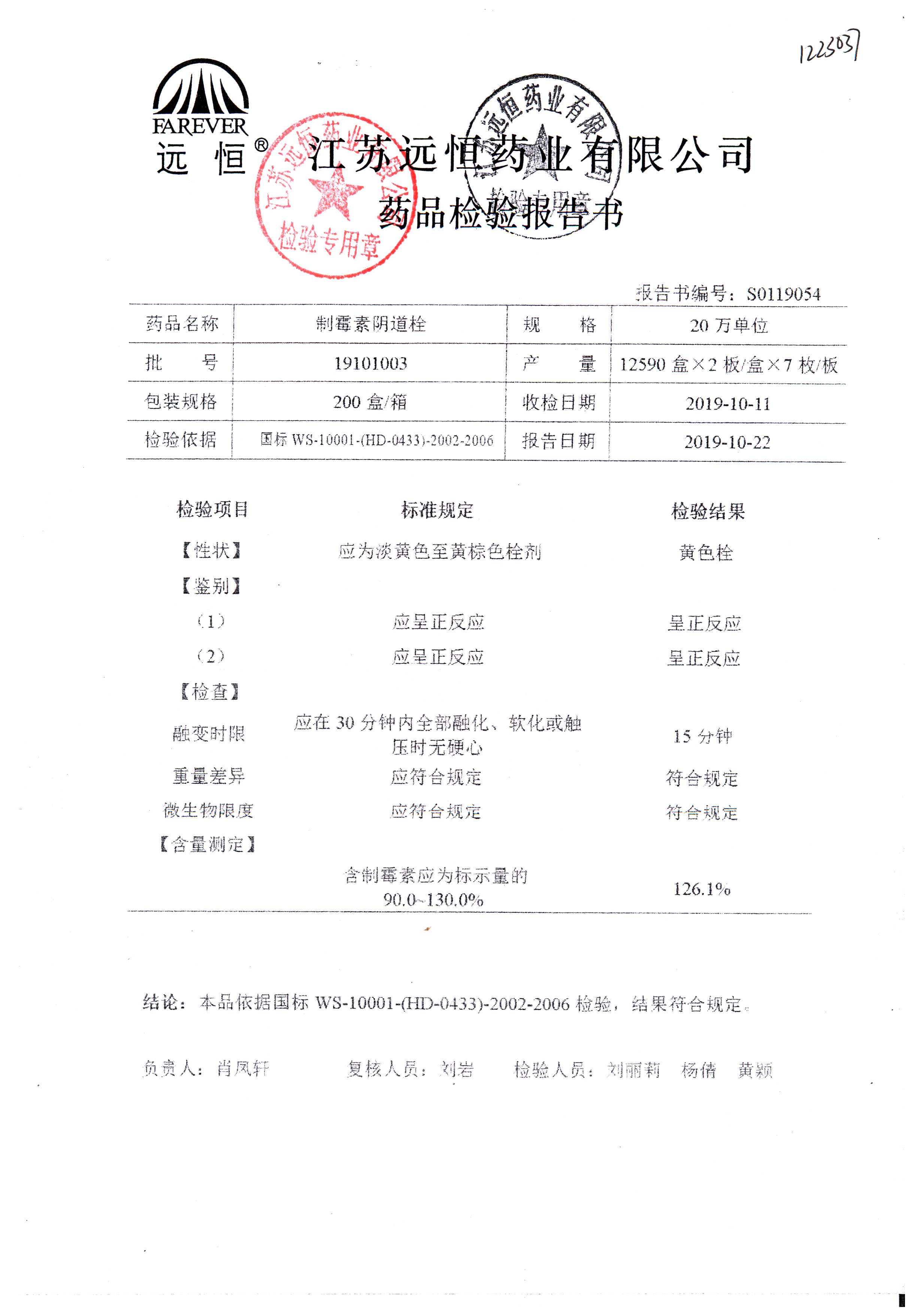 制霉素阴道栓 | 20万单位 | 19101003 | 查看详情 |