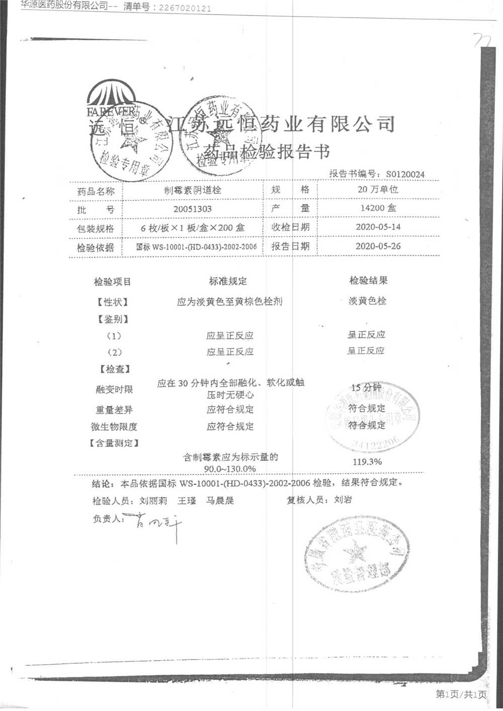 制霉素阴道栓 | 20万单位 | 20051303 | 查看详情 |