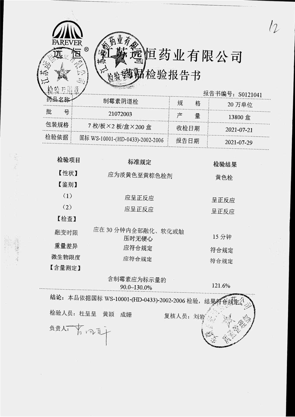 制霉素阴道栓 | 20万单位 | 21110401 | 查看详情 |