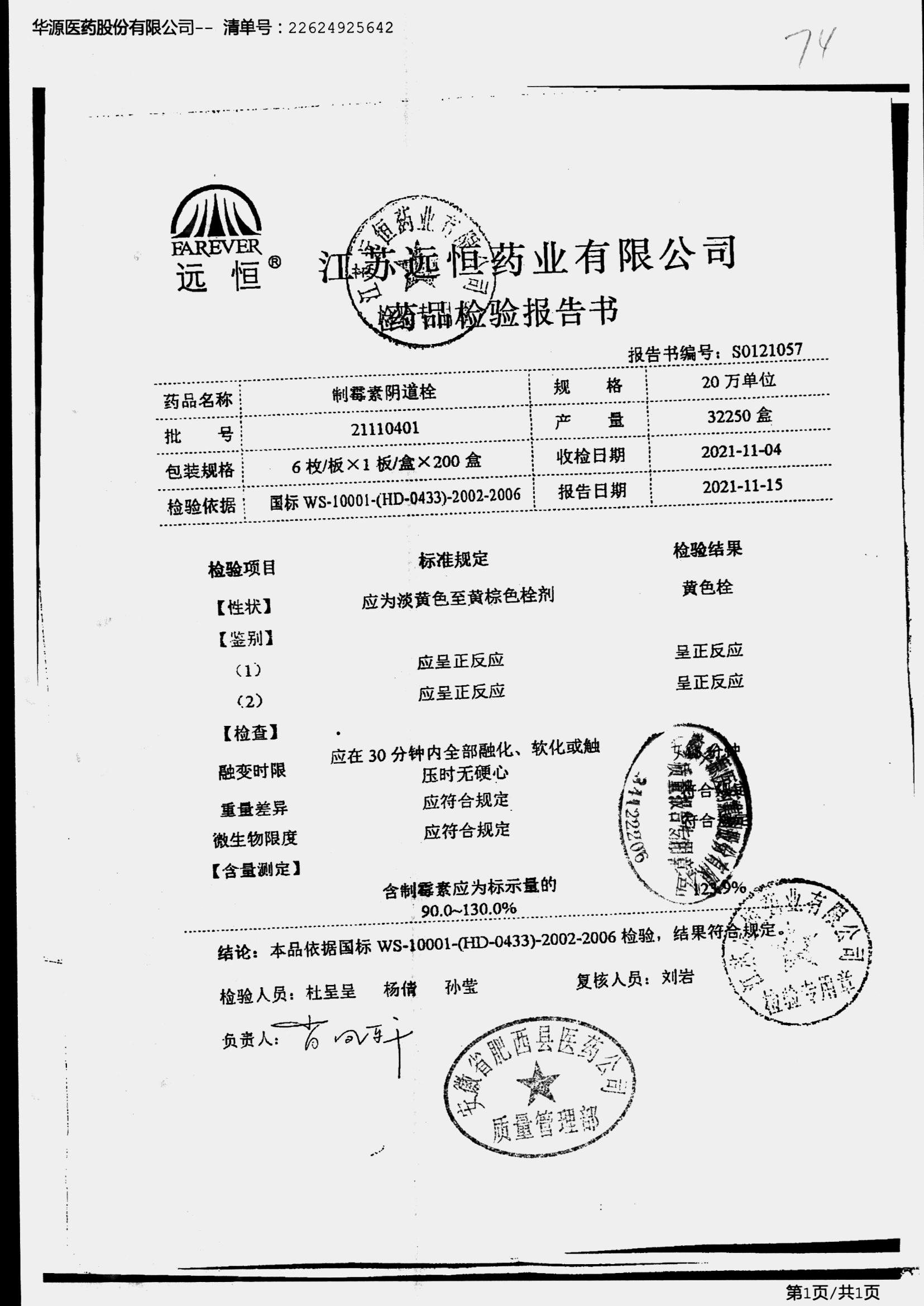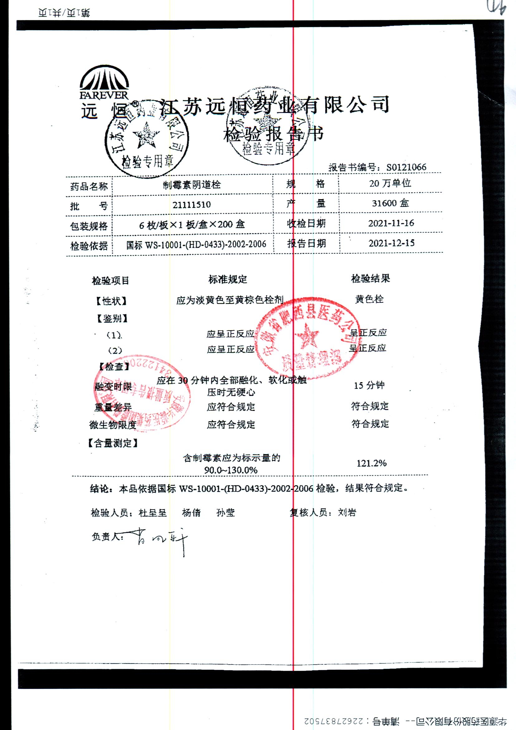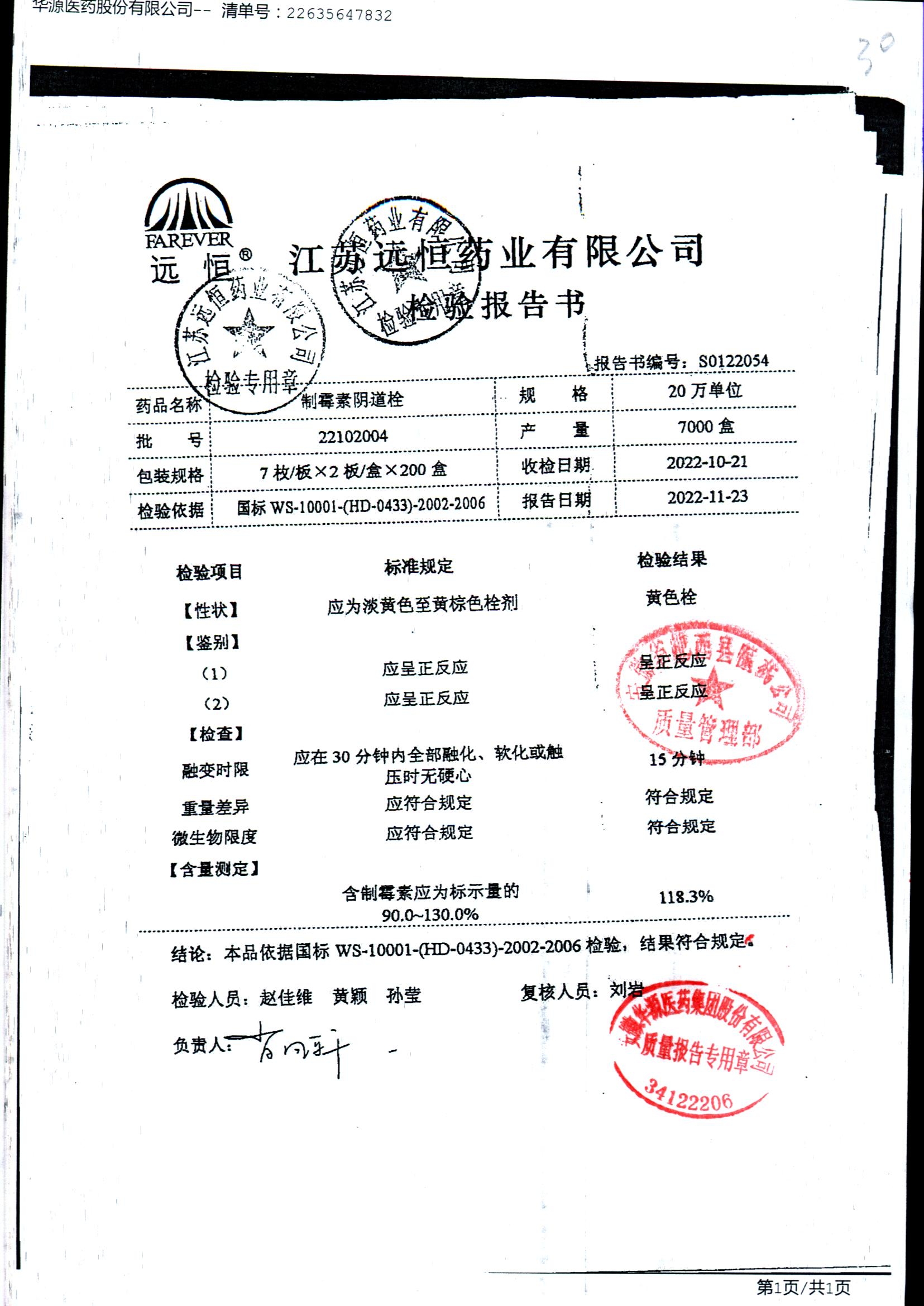 制霉素阴道栓 | 20万单位 | 22102004 | 查看详情 |