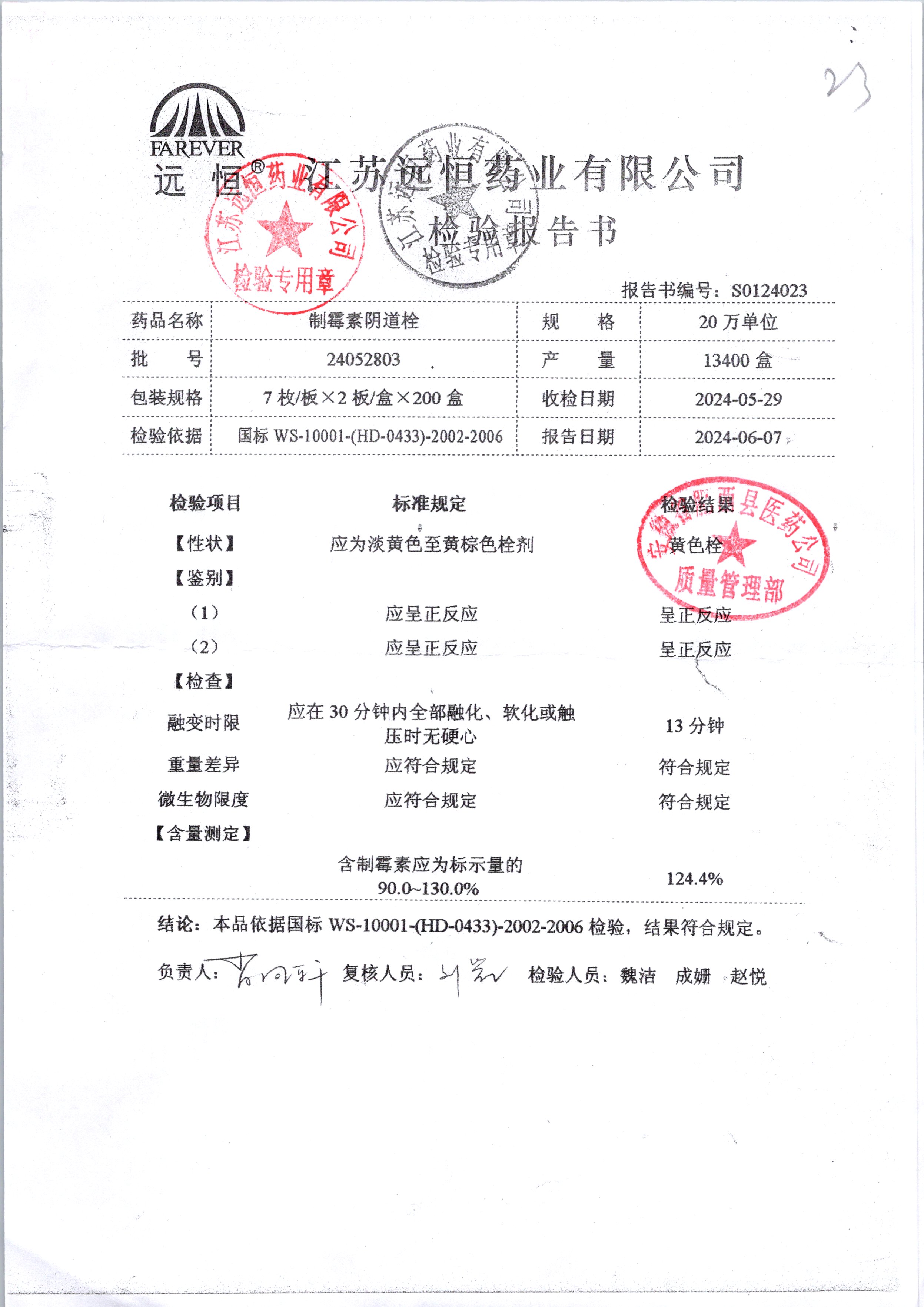 制霉素阴道栓 | 20万单位 | 23070503 | 查看详情 |