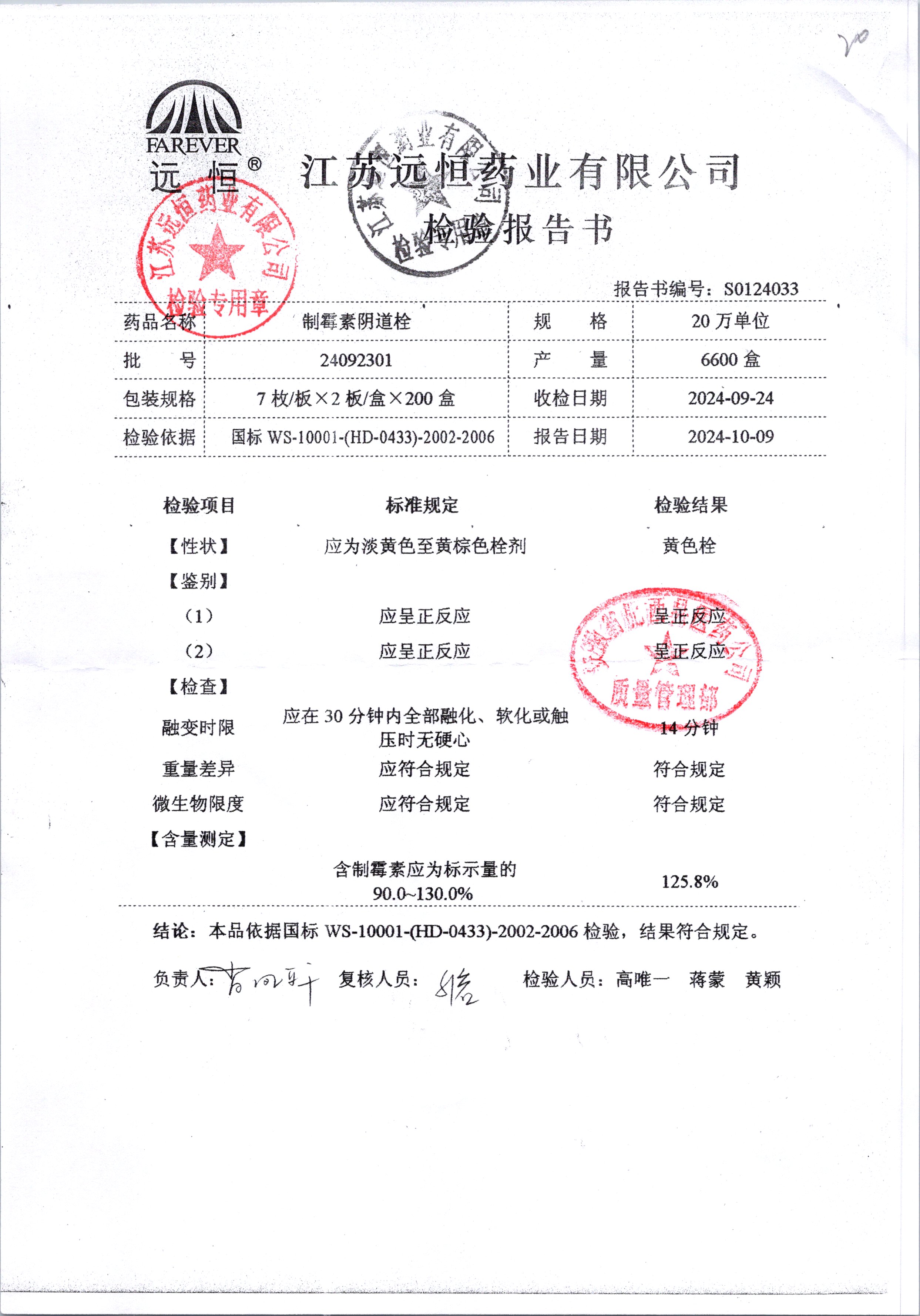 制霉素阴道栓 | 20万单位 | 24092301 | 查看详情 |