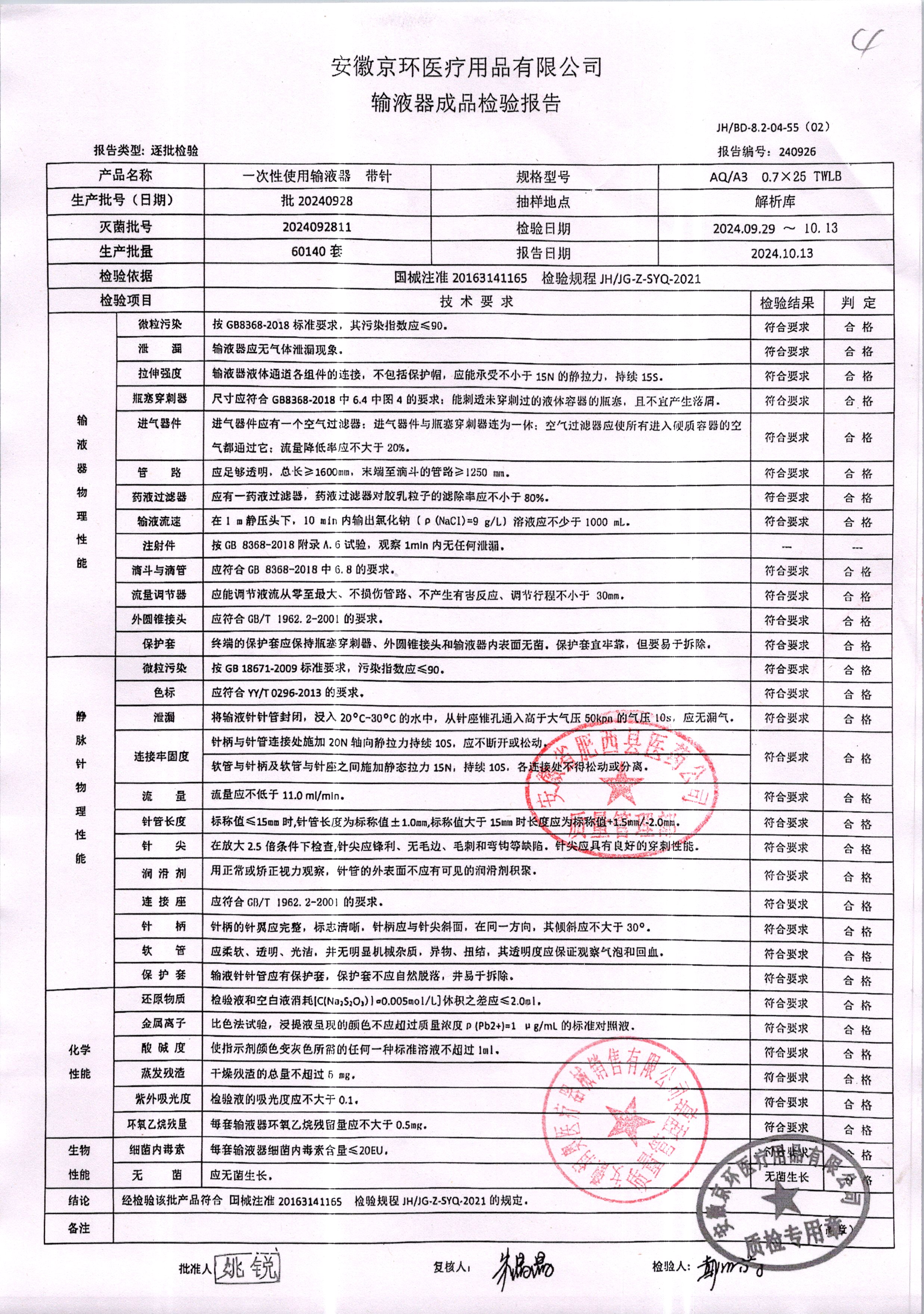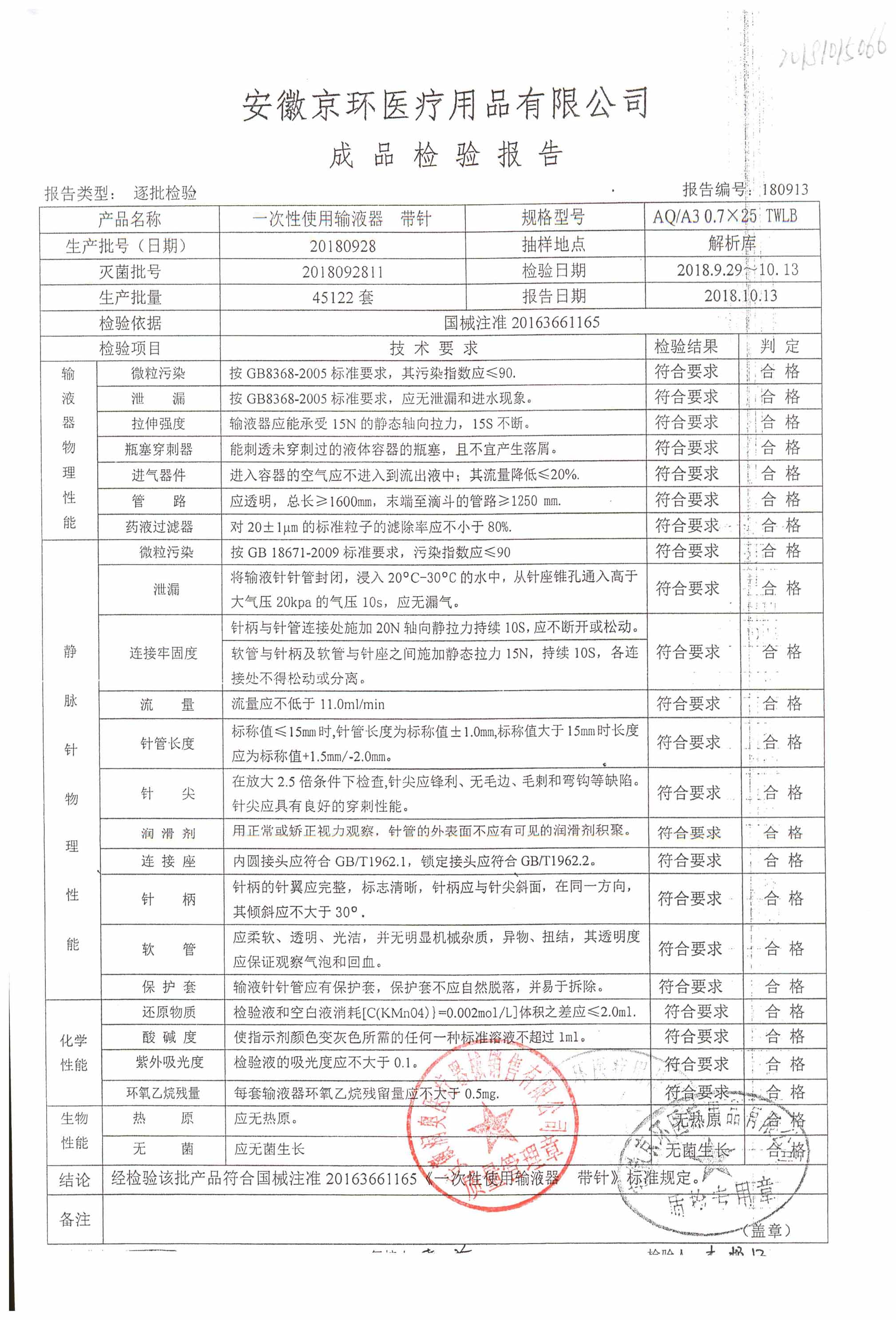 一次性使用输液器 带针 | 0.7*25 | 20180928 | 查看详情 |