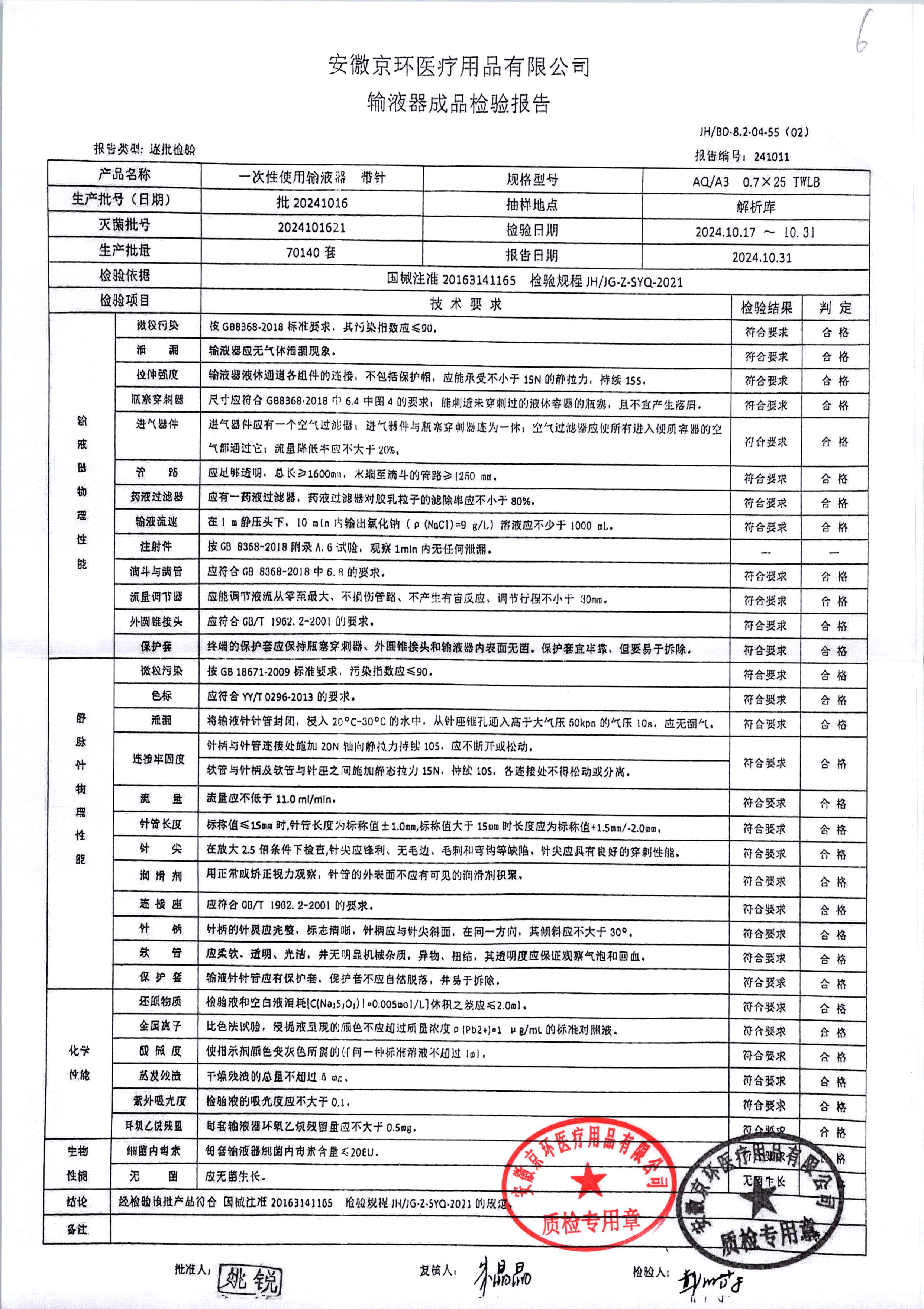 一次性使用输液器 带针 | 0.7*25 | 批20241016 | 查看详情 |