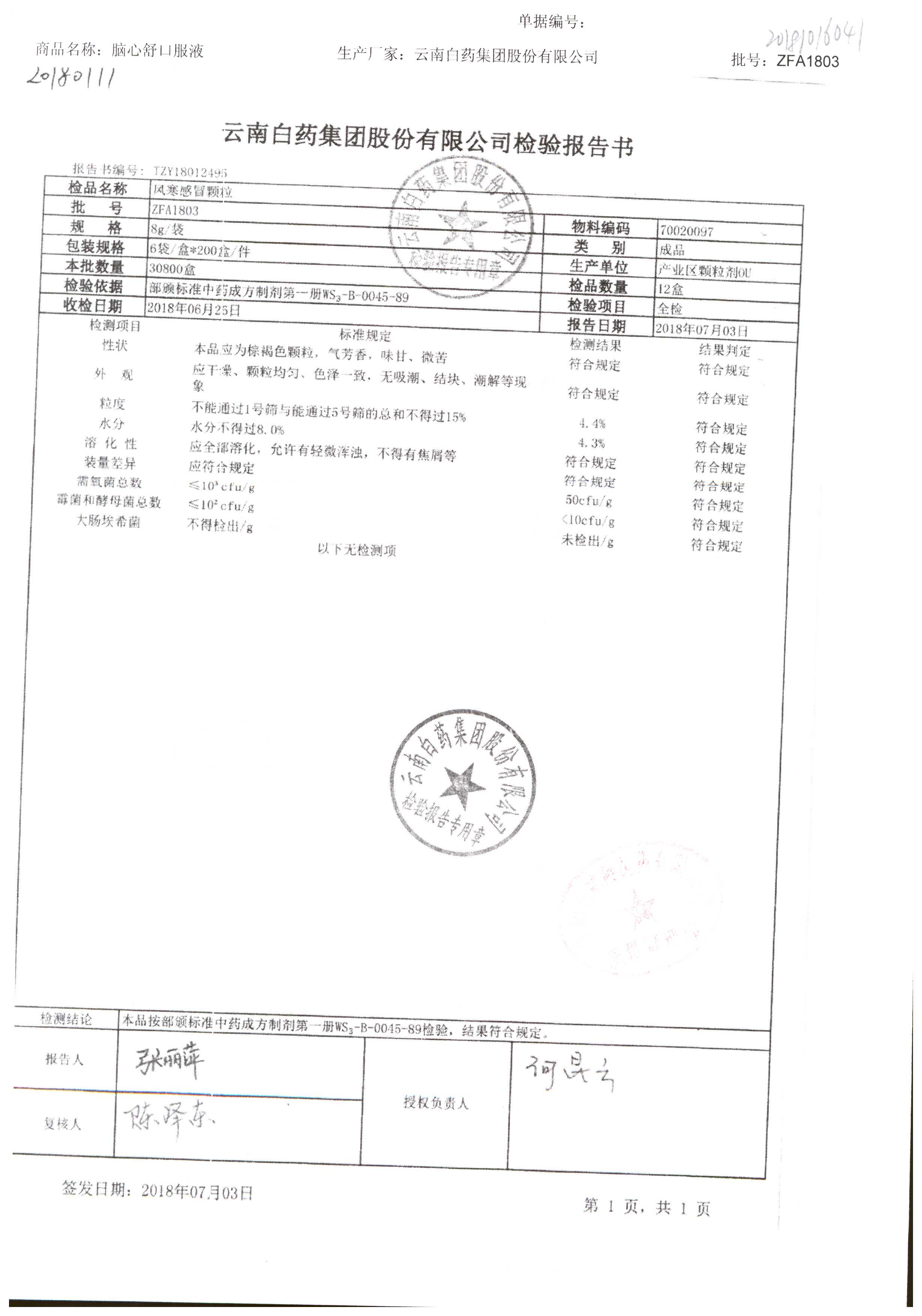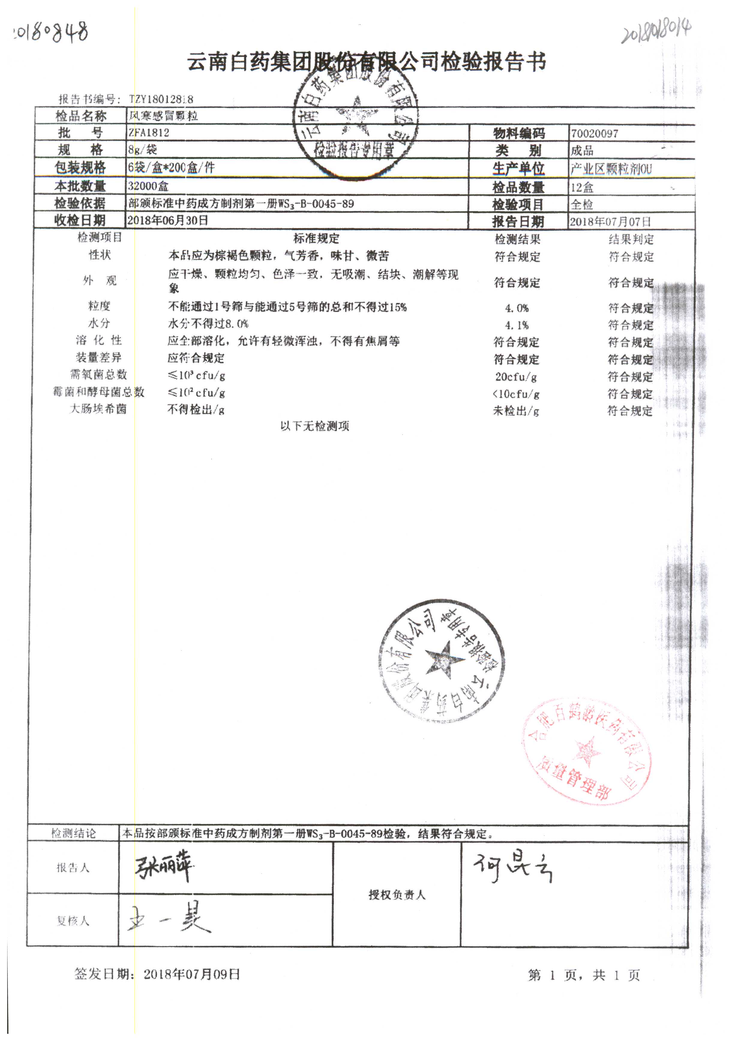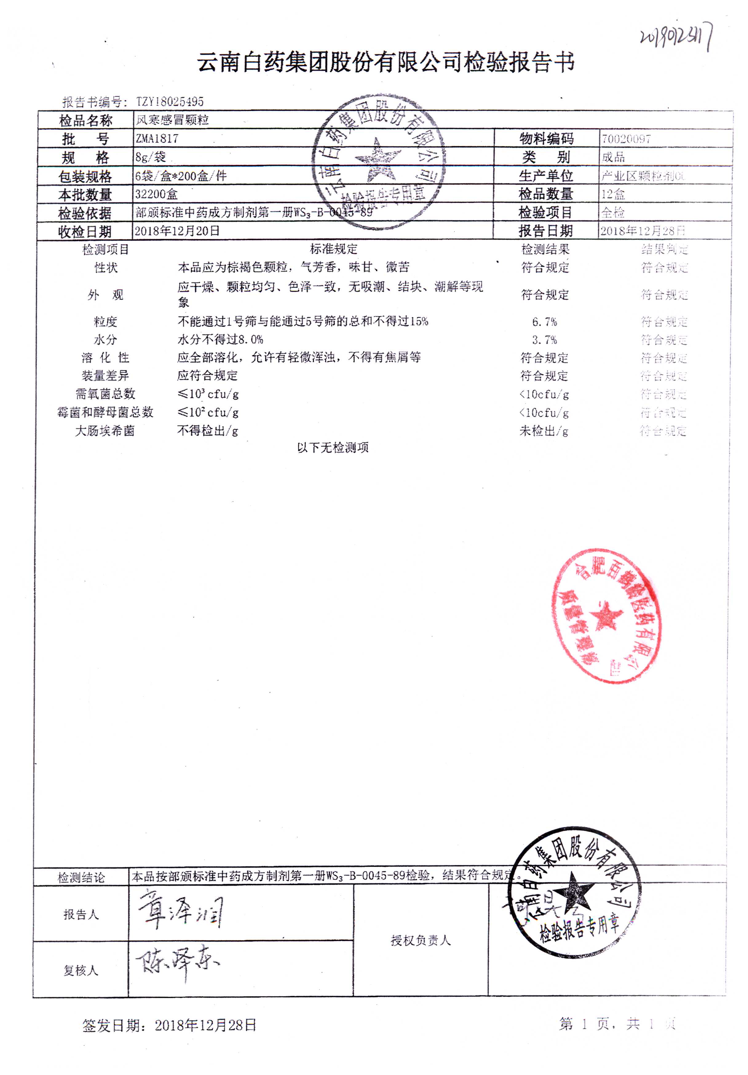 风寒感冒颗粒 | 8g*6袋 | ZFA1812 | 查看详情 |