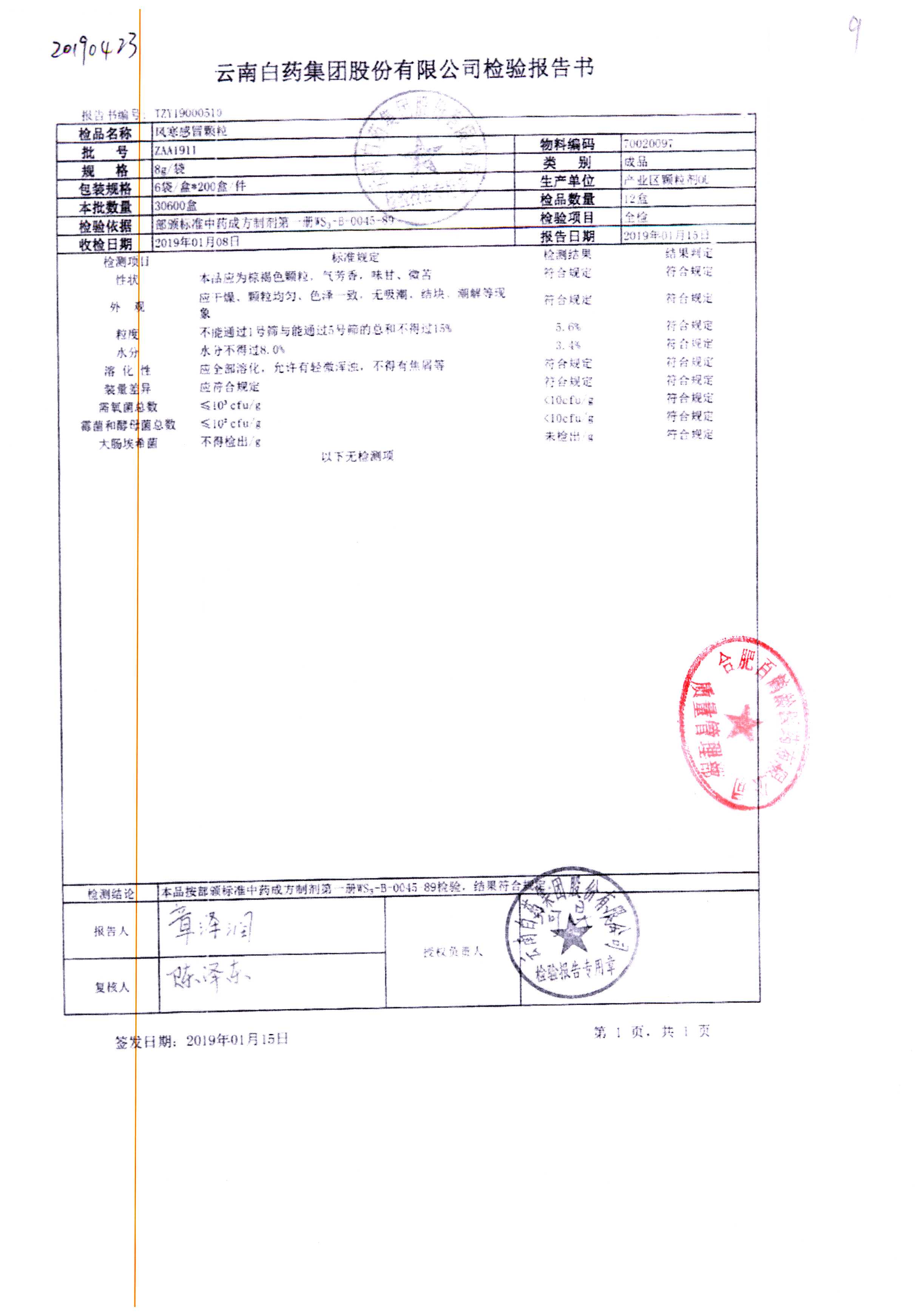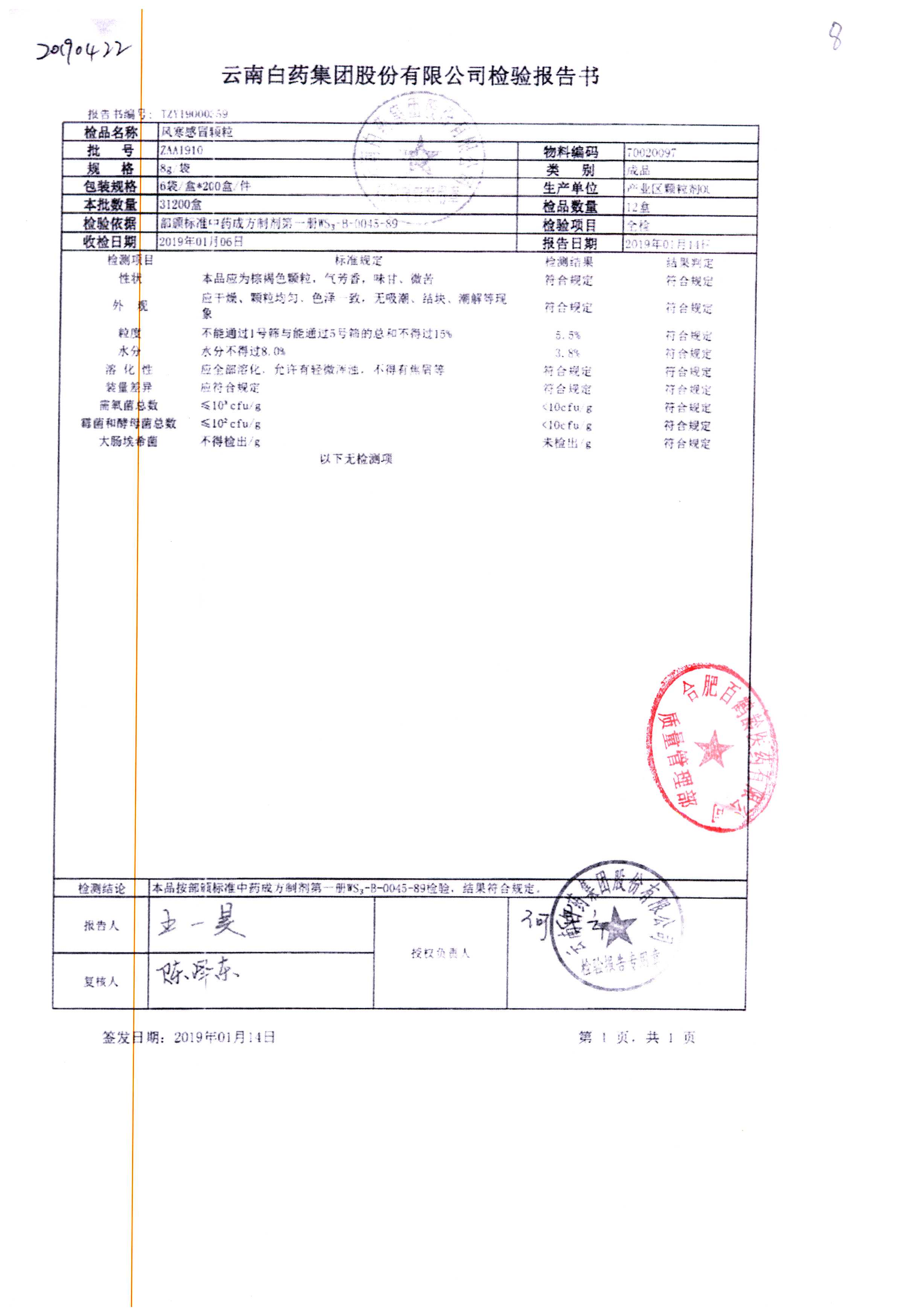 风寒感冒颗粒 | 8g*6袋 | ZAA1910 | 查看详情 |