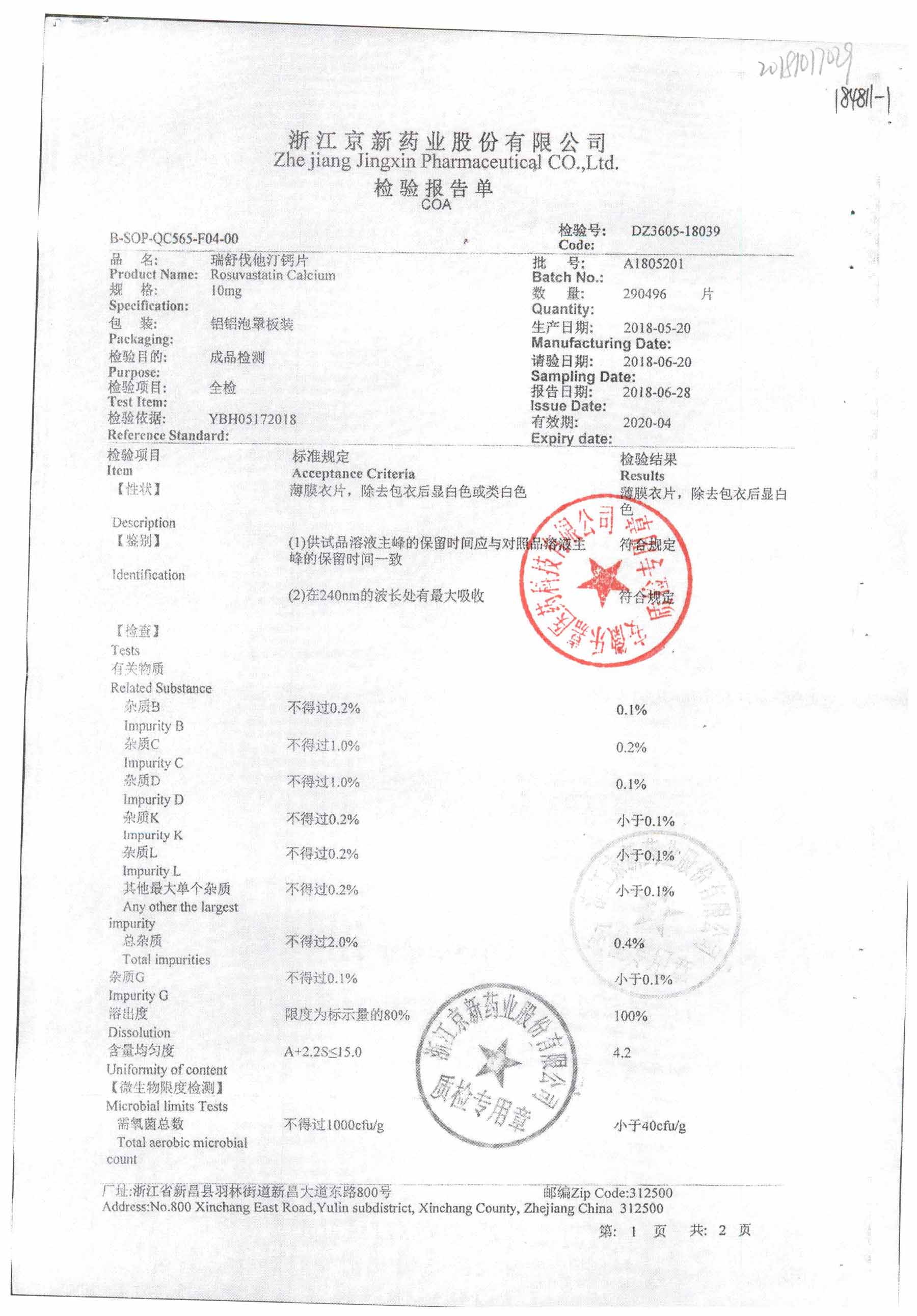 药检报告