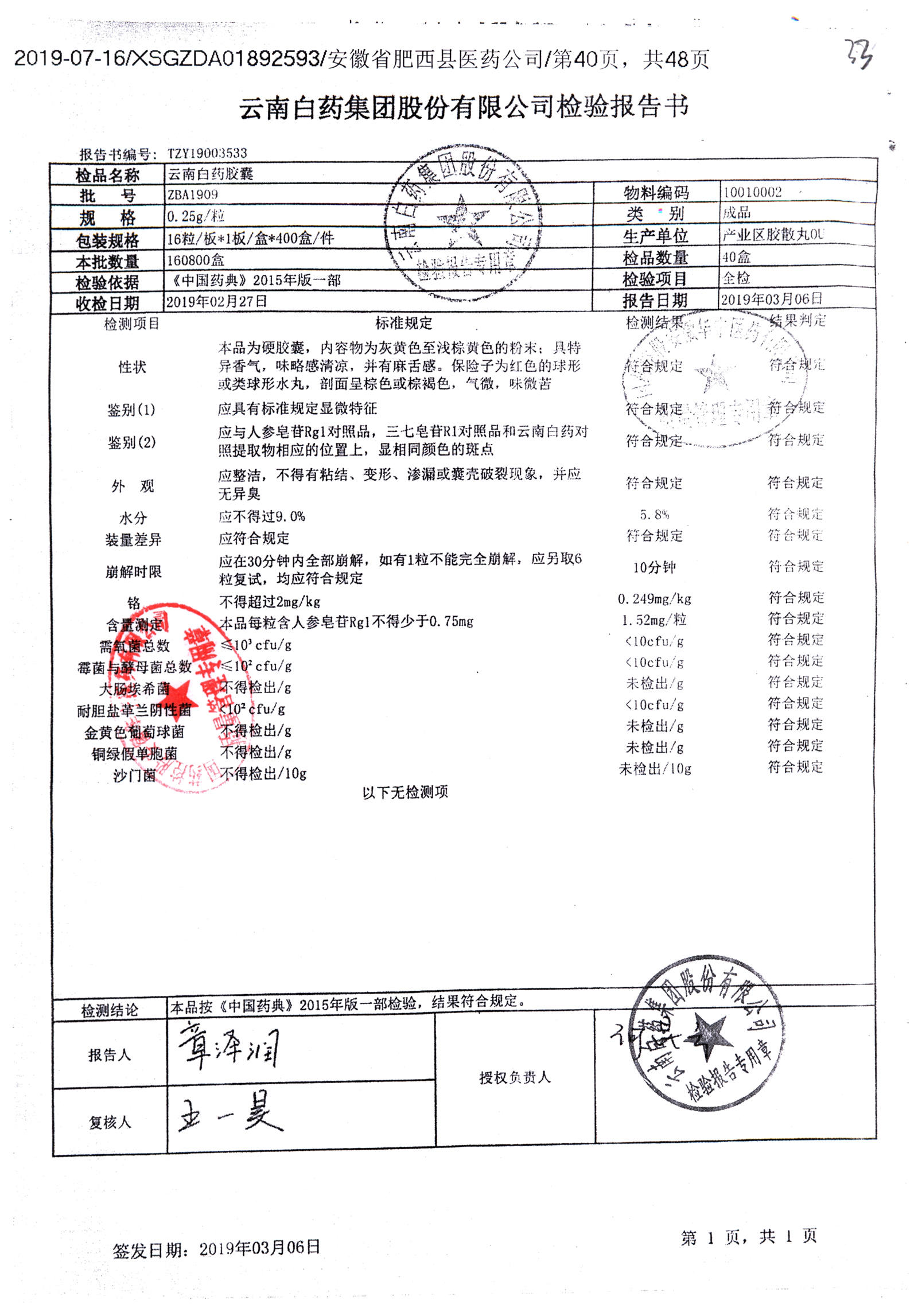 云南白药胶囊 | 0.25g*16粒 | ZCA2107(2/2) | 查看详情 |