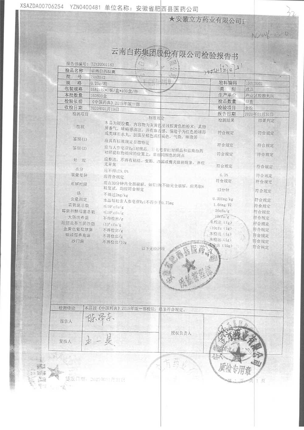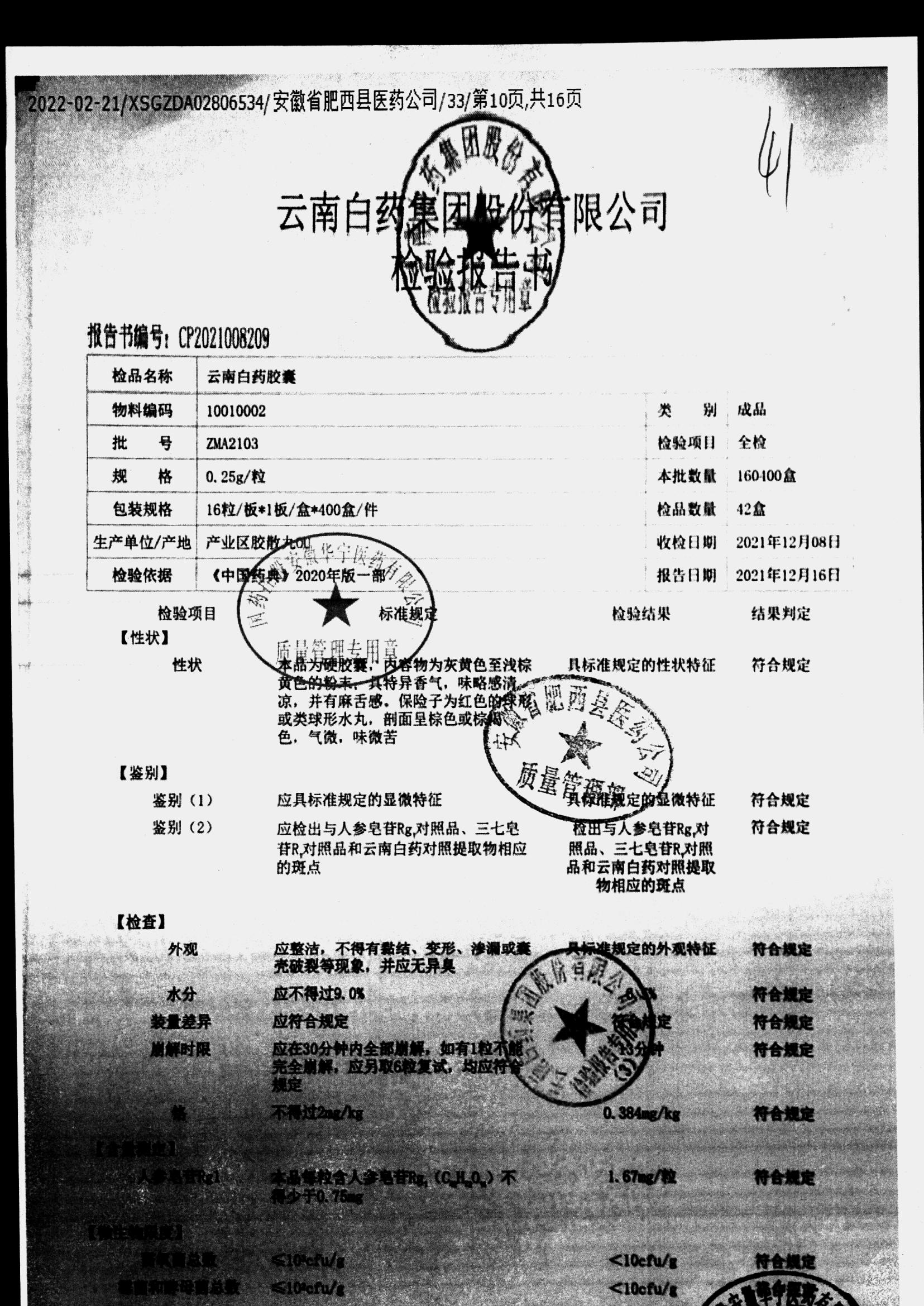 云南白药胶囊 | 0.25g*16粒 | ZAA2109(1/2) | 查看详情 |