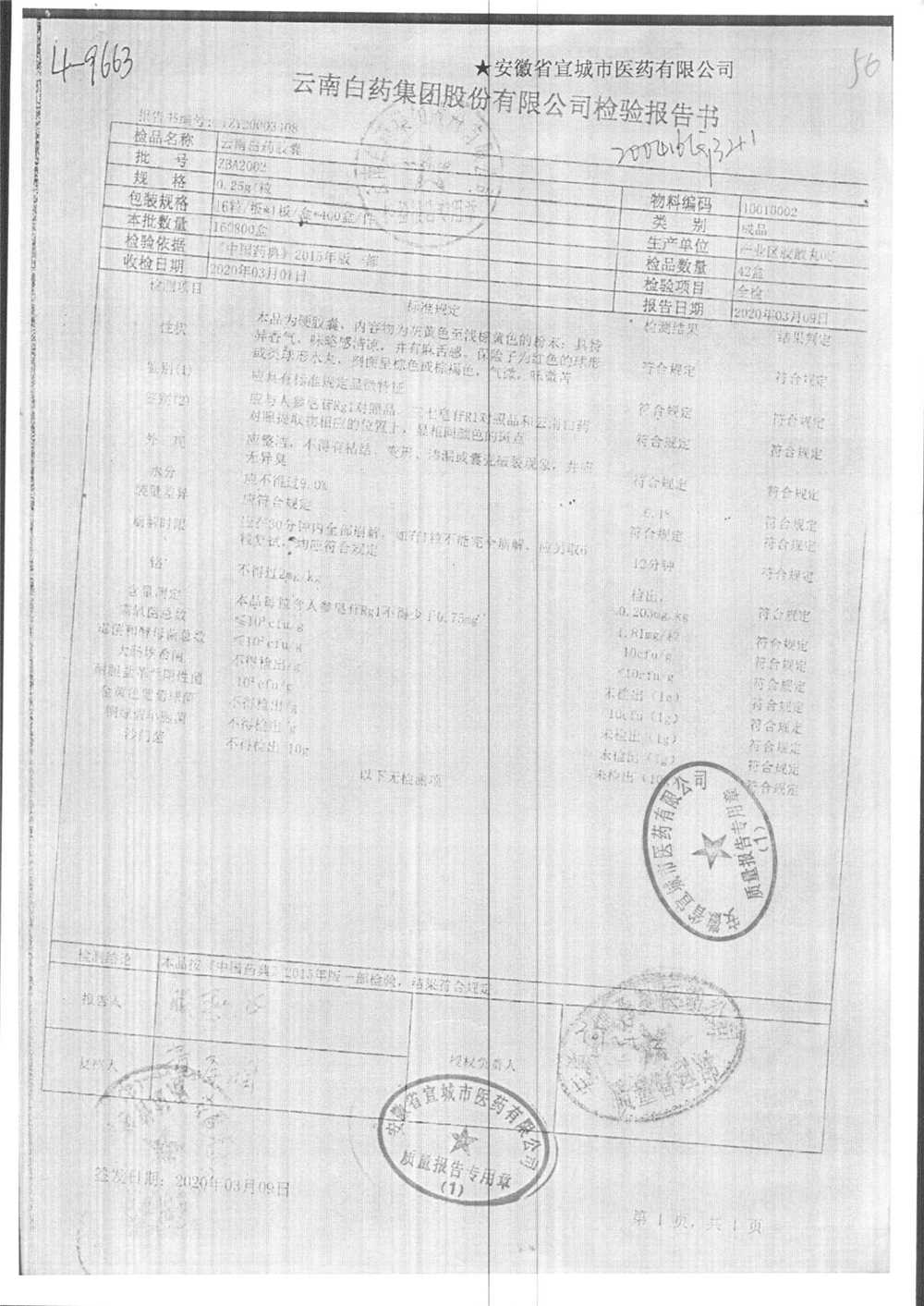 云南白药胶囊 | 0.25g*16粒 | ZLA2012(1/2) | 查看详情 |