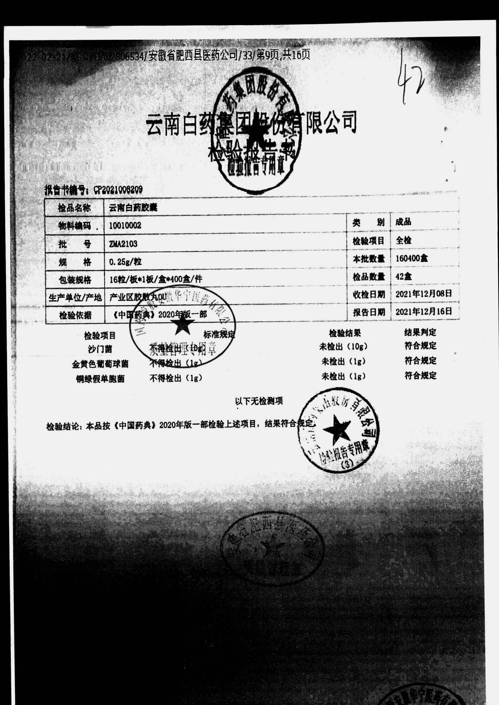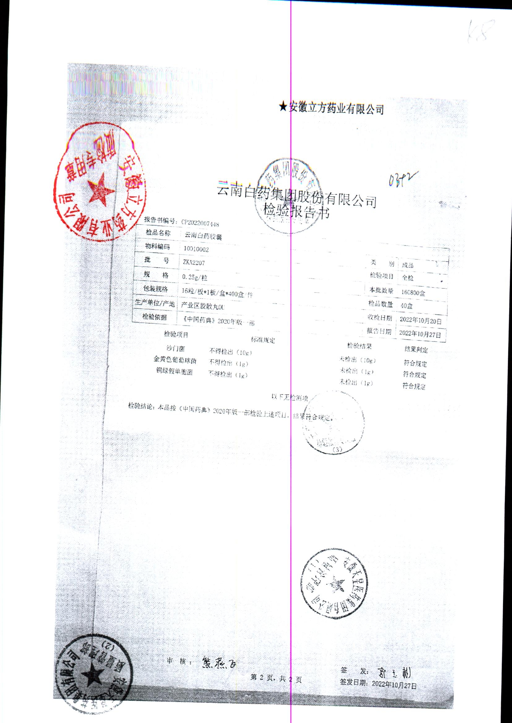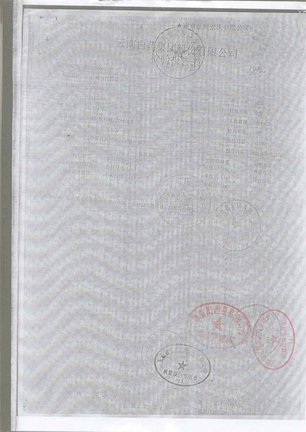 云南白药胶囊 | 0.25g*16粒 | ZAA2109(2/2) | 查看详情 |