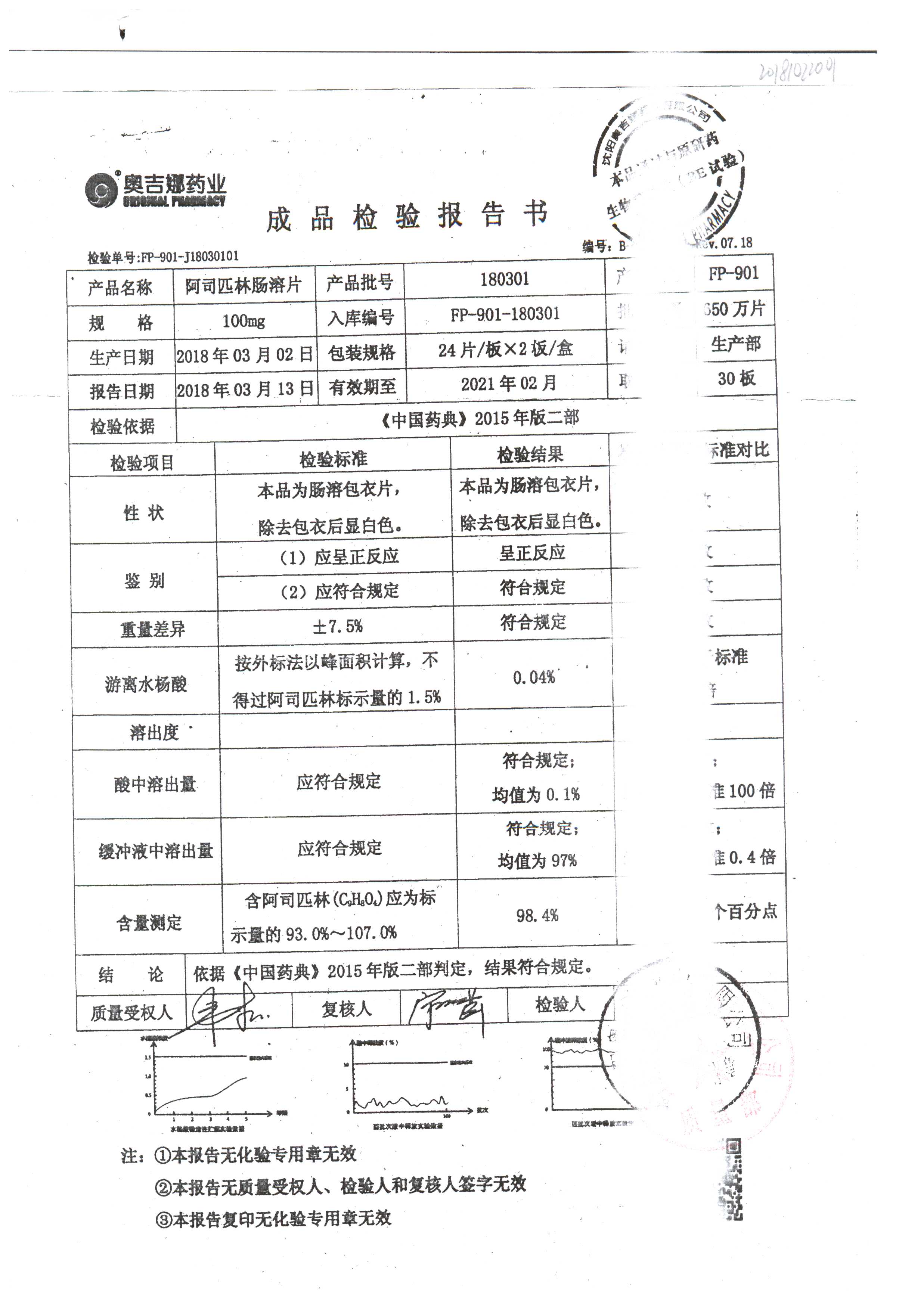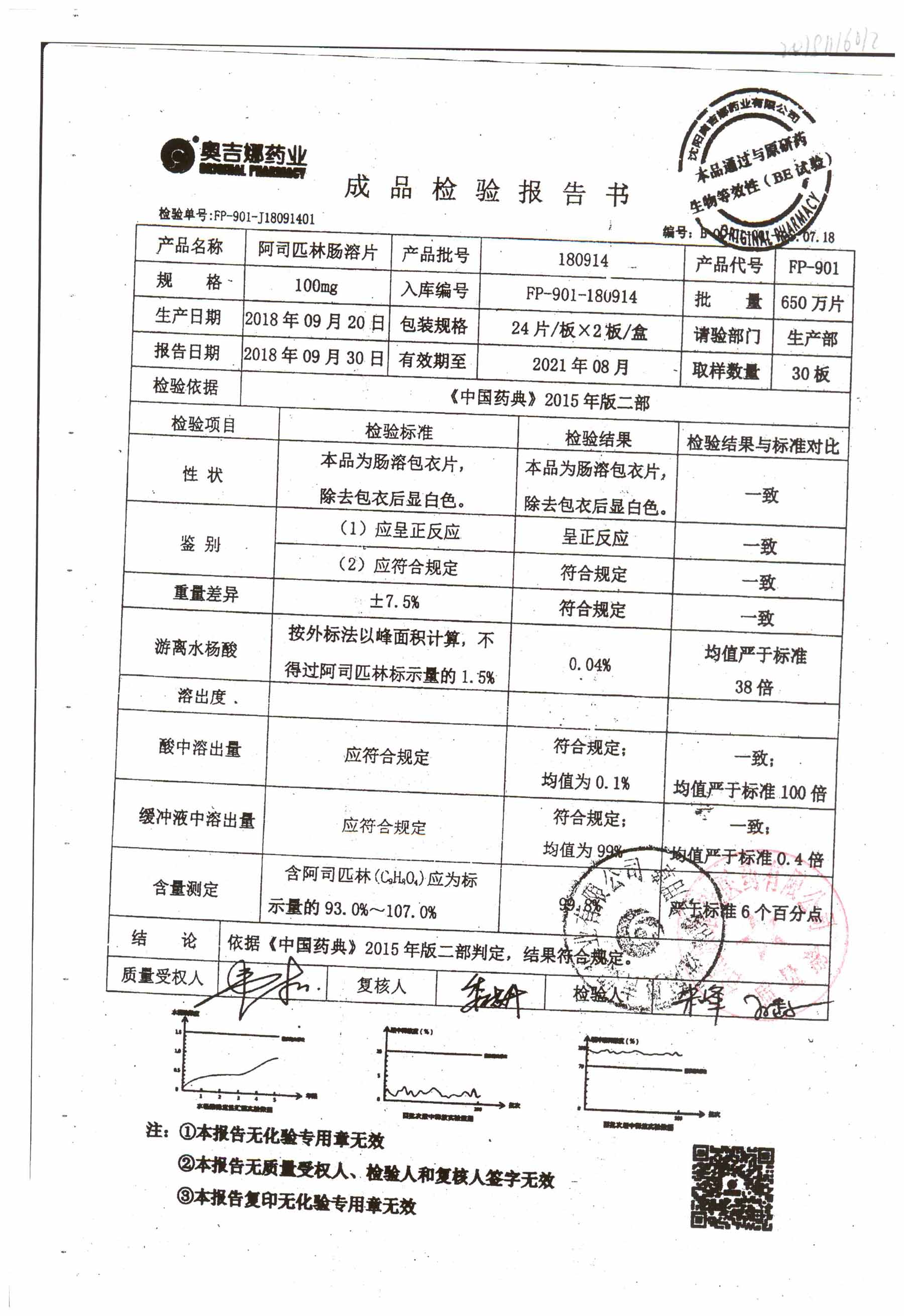 阿司匹林肠溶片 | 100mg*48片 | 180914 | 查看详情 |