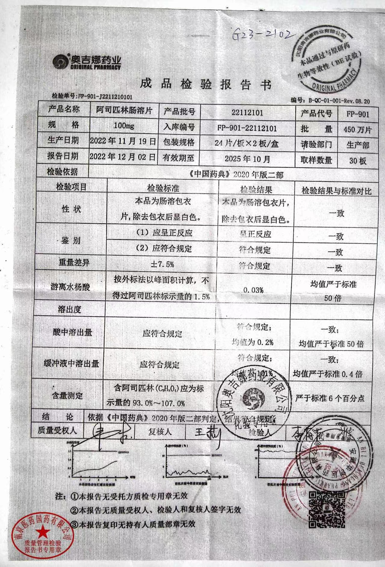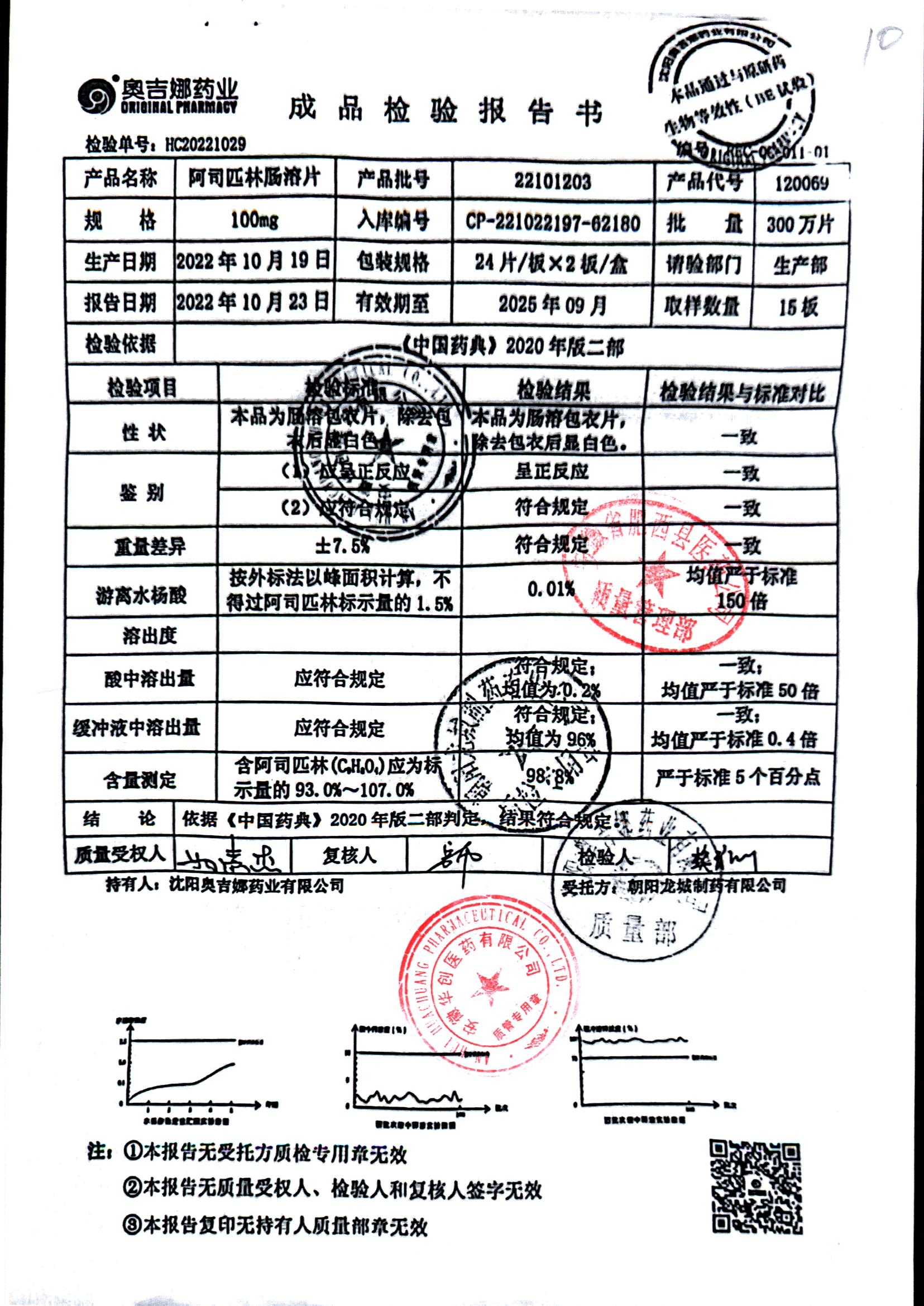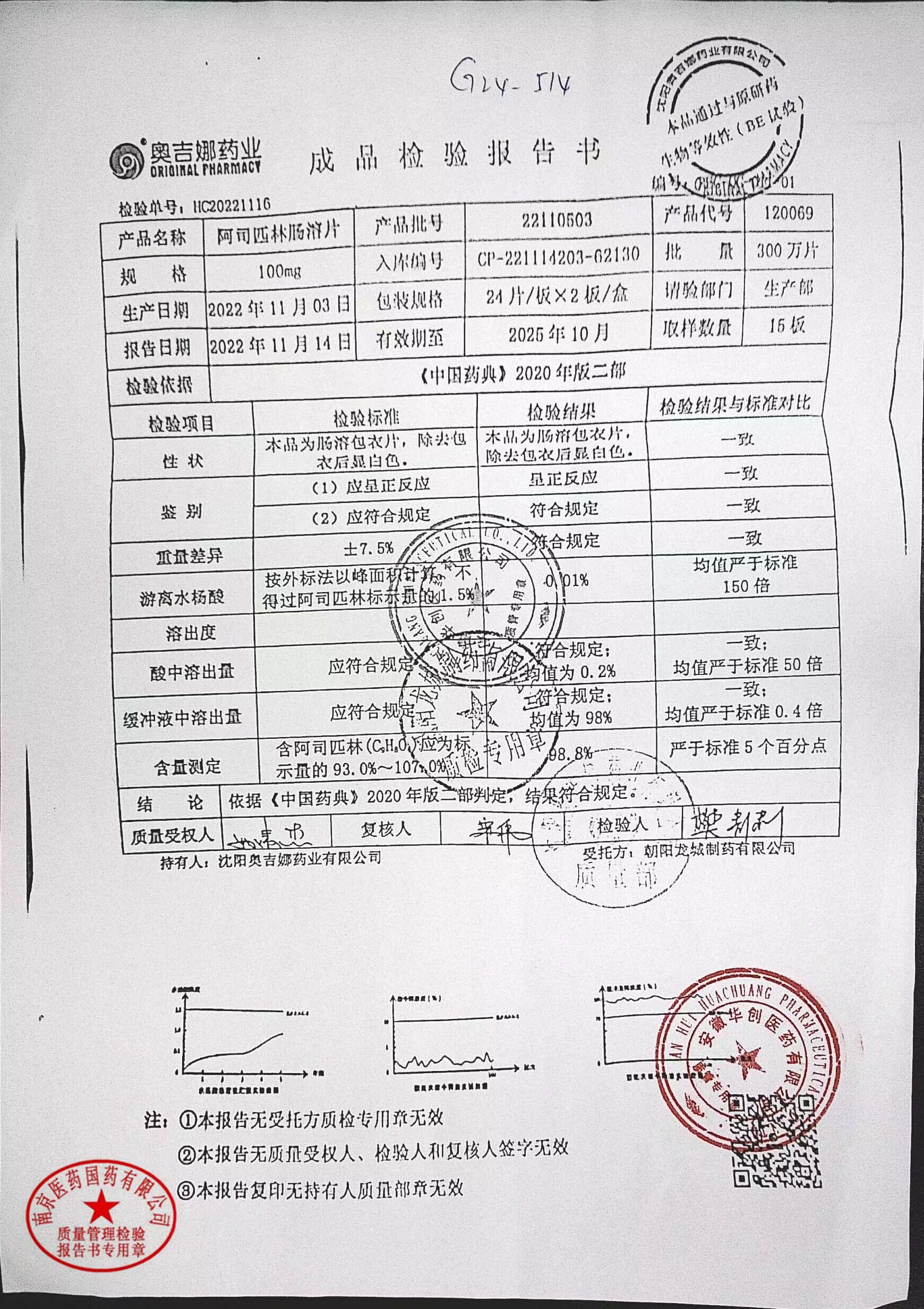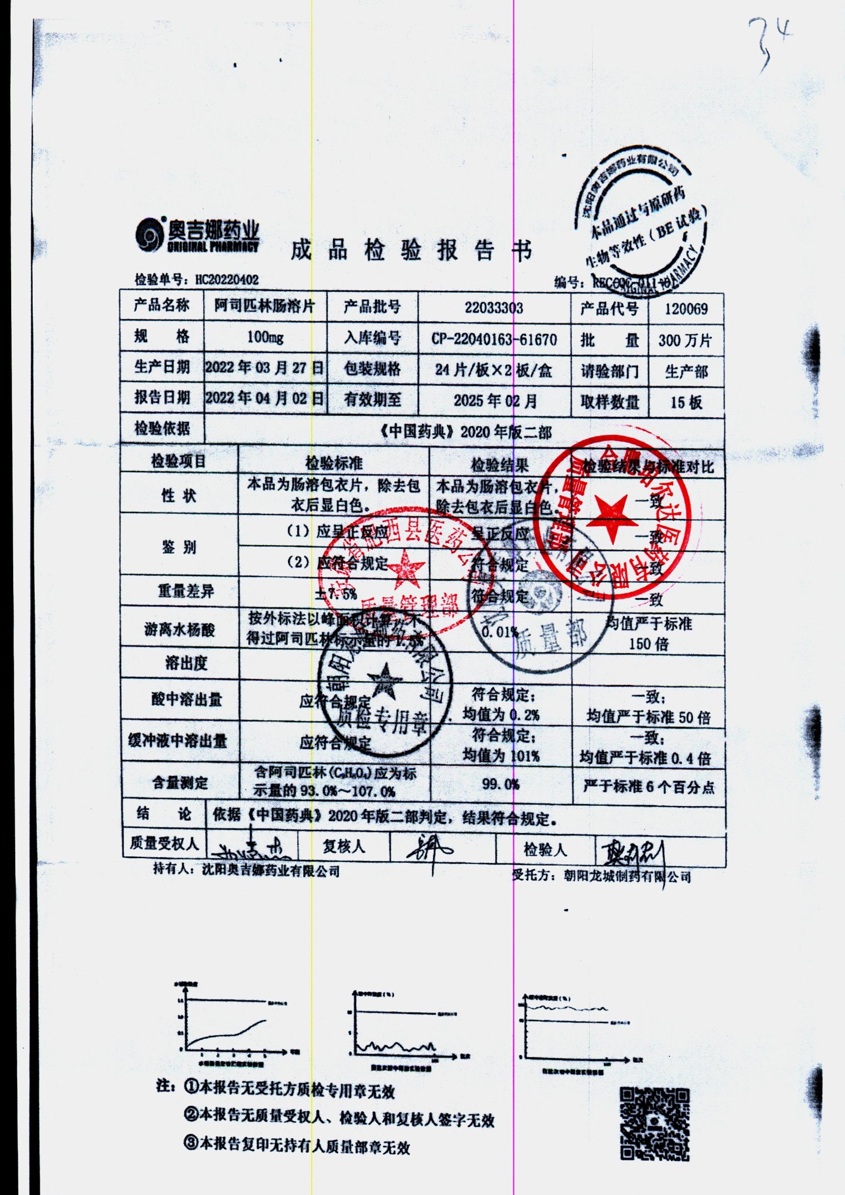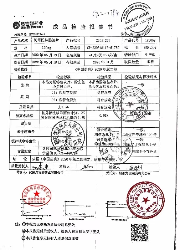 阿司匹林肠溶片 | 100mg*48片 | 22110503 | 查看详情 |