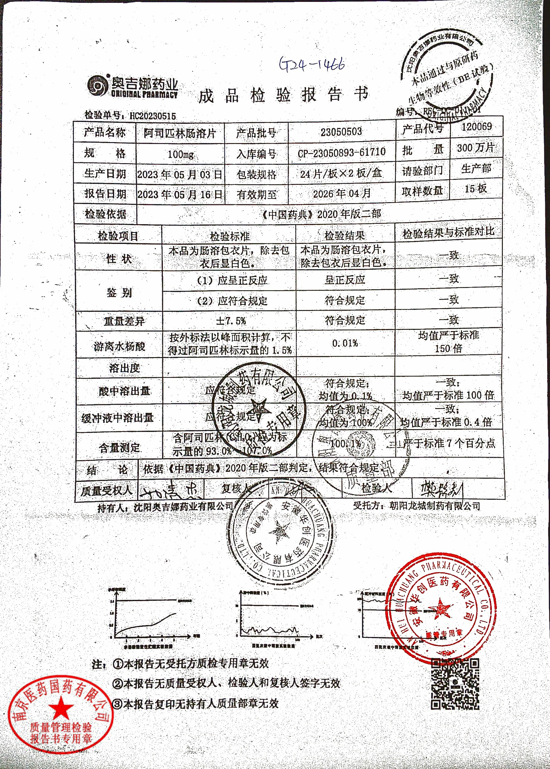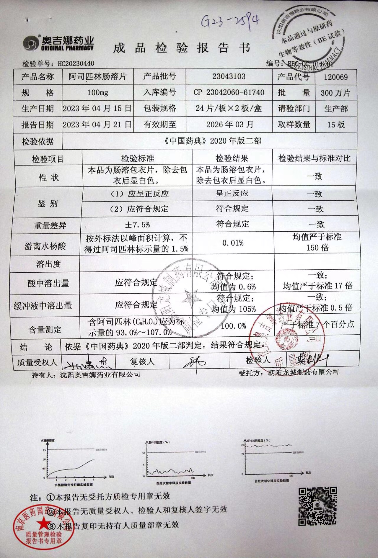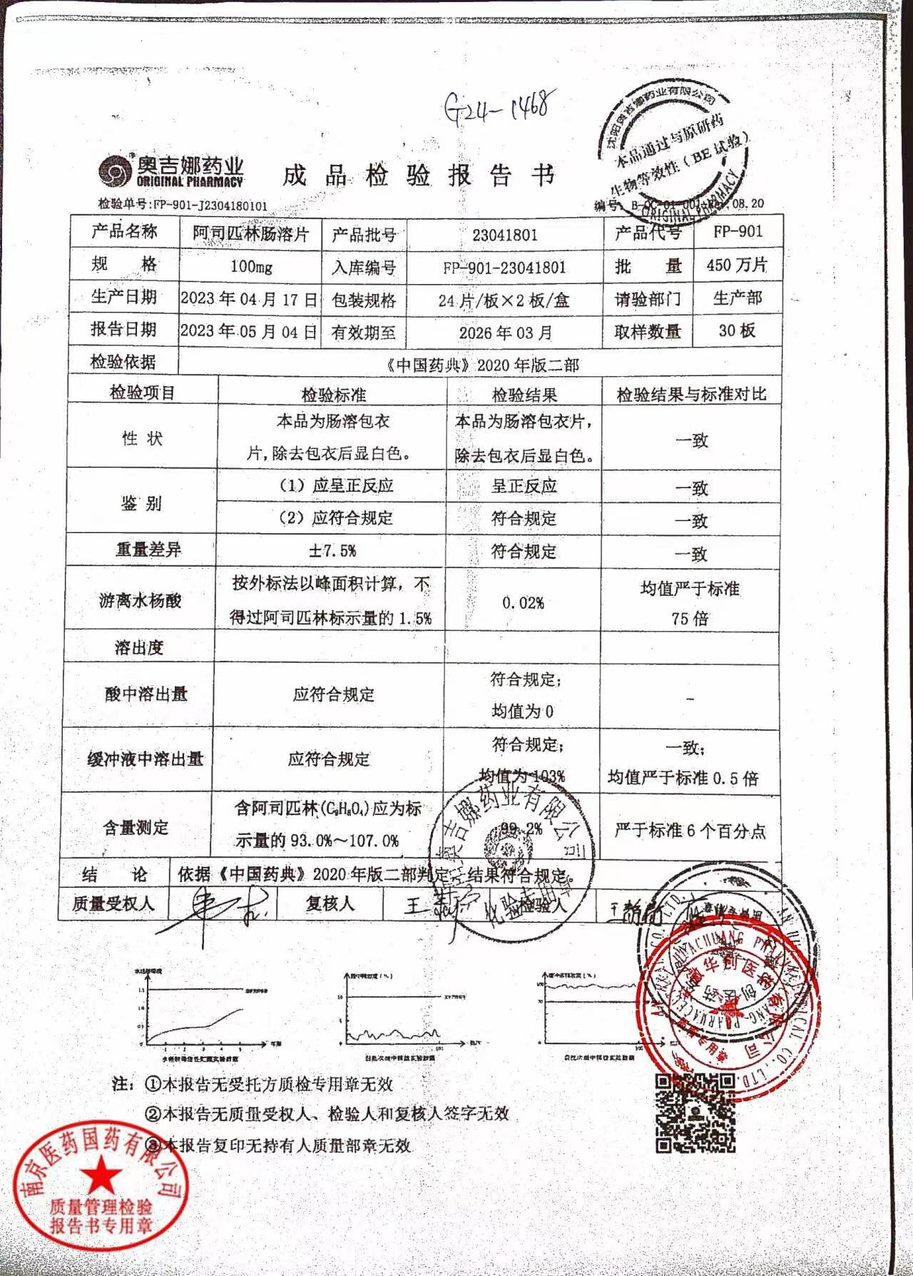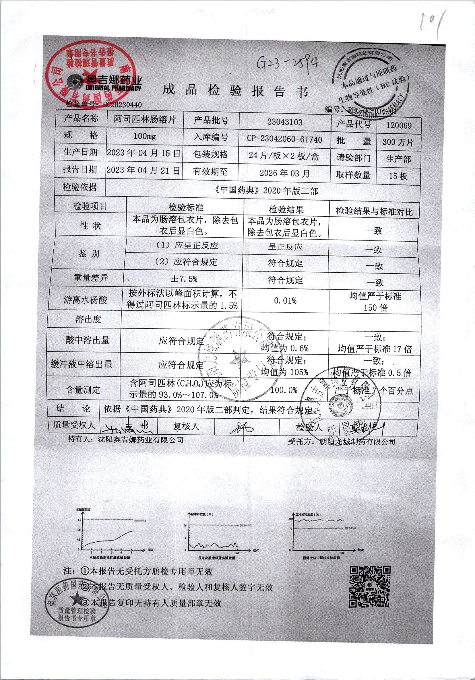 阿司匹林肠溶片 | 100mg*48片 | 23050601 | 查看详情 |