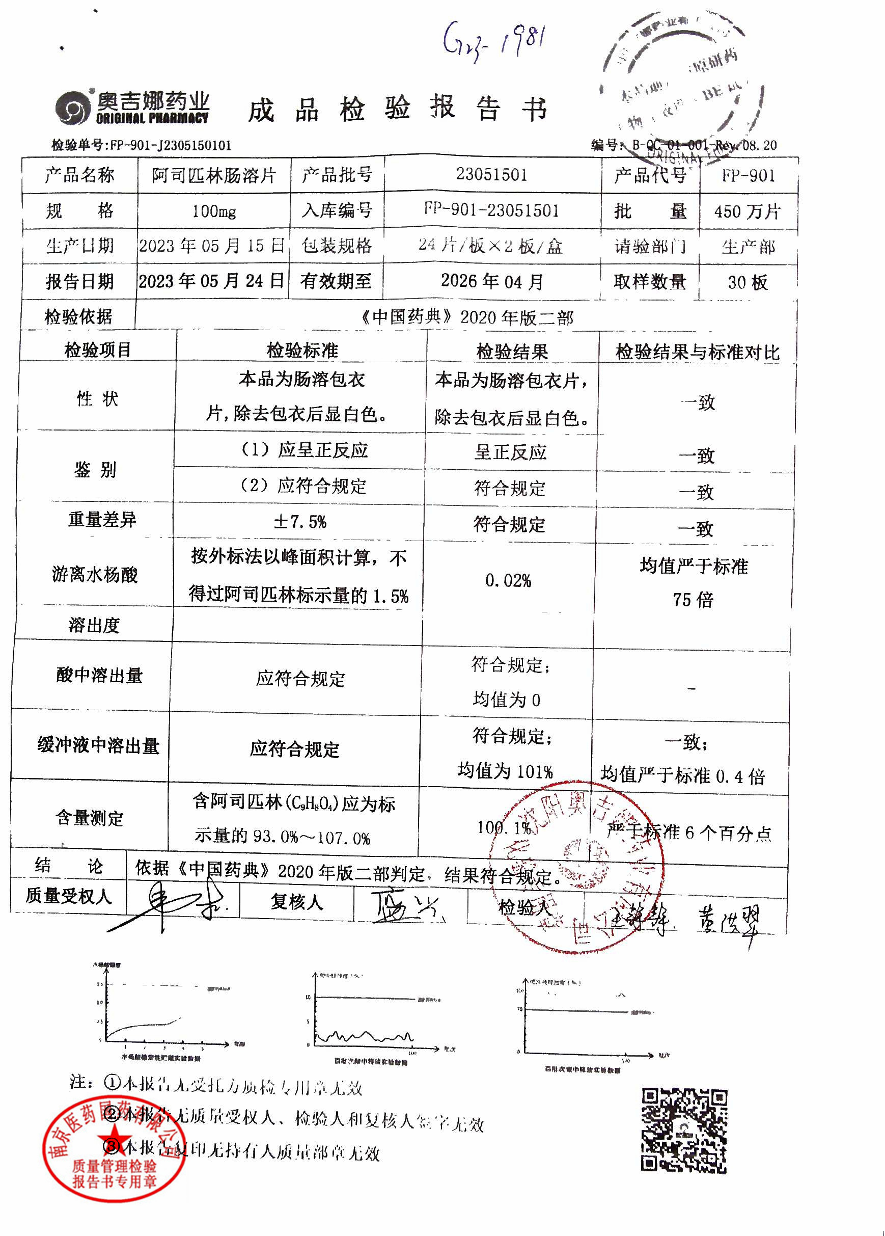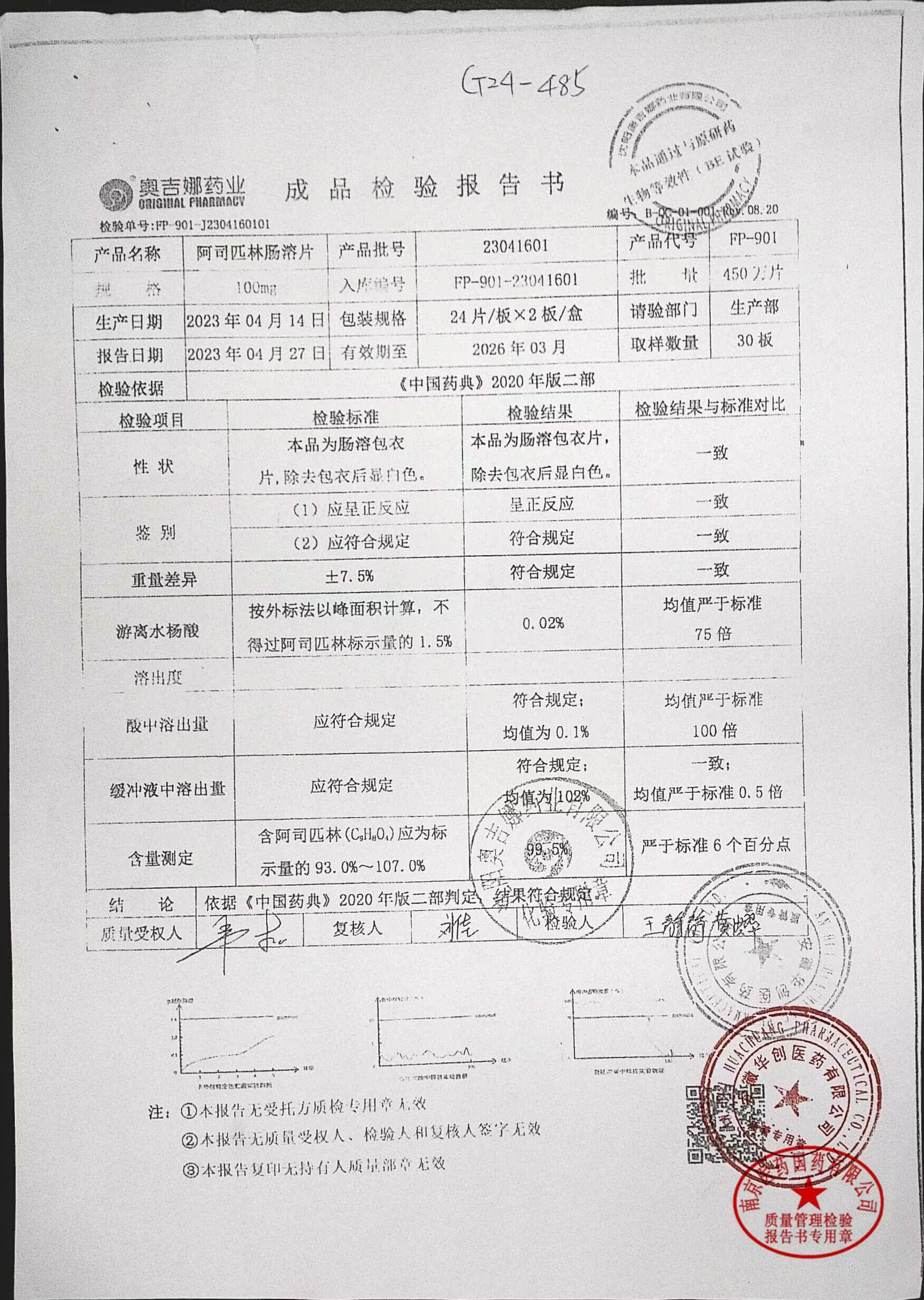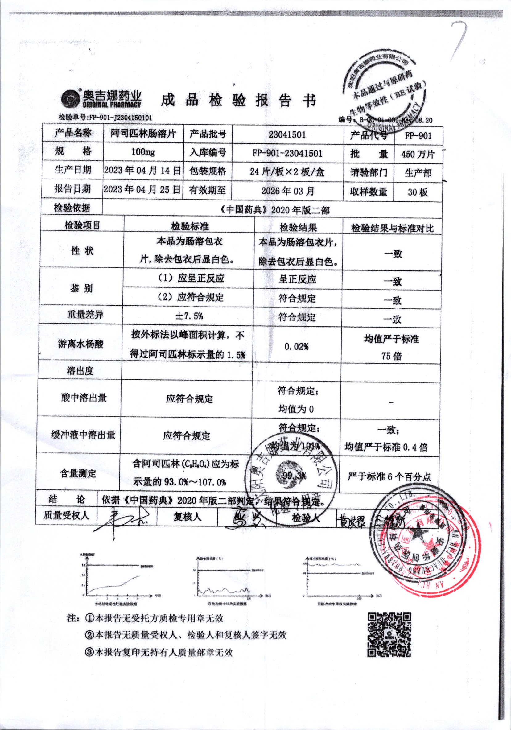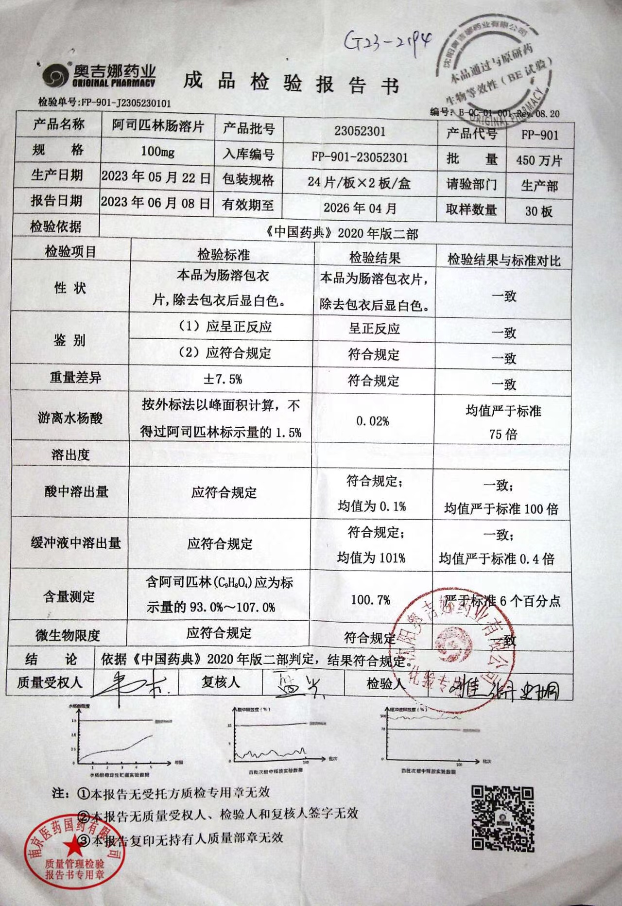 阿司匹林肠溶片 | 100mg*48片 | 23050601 | 查看详情 |