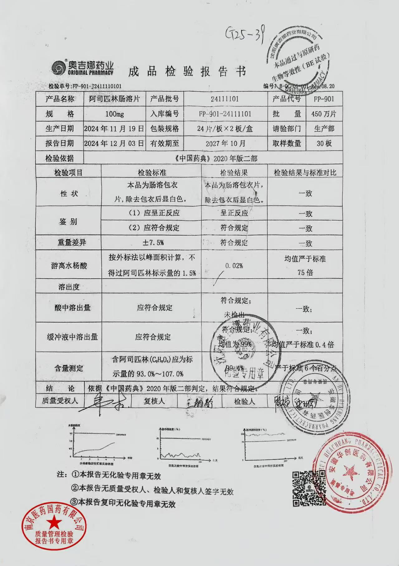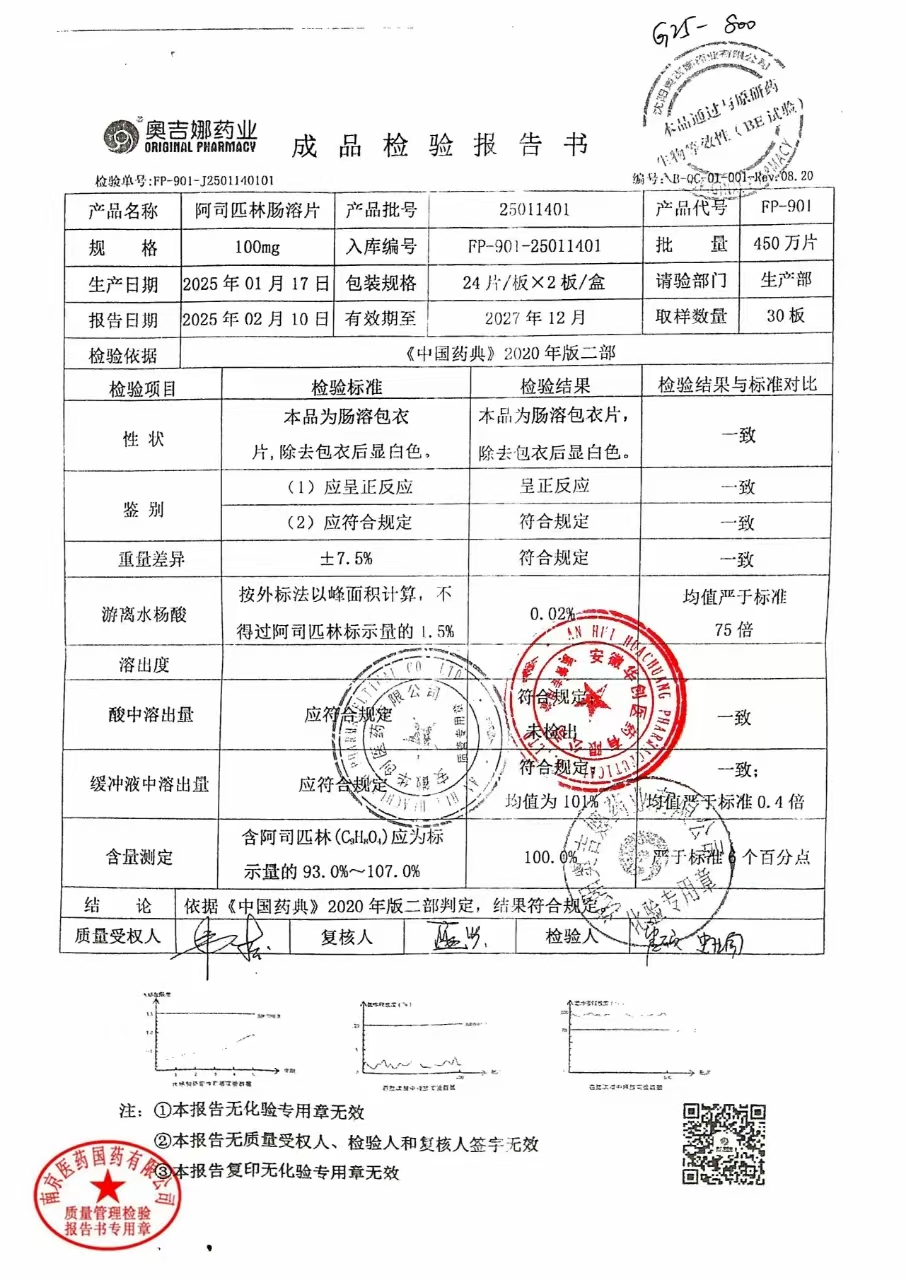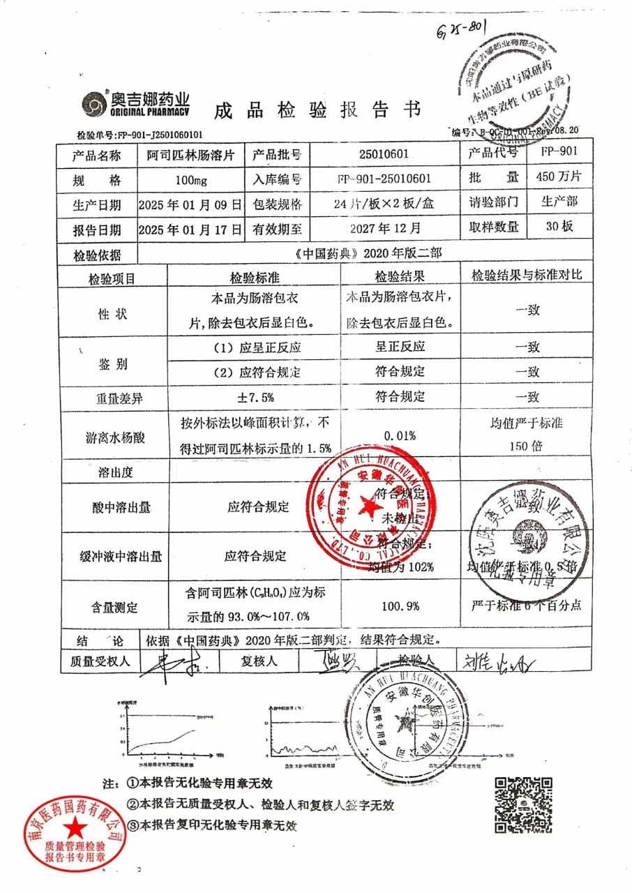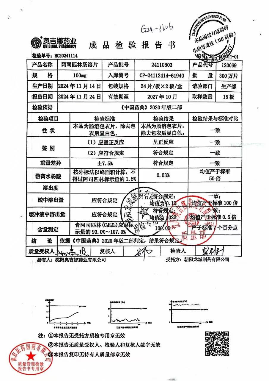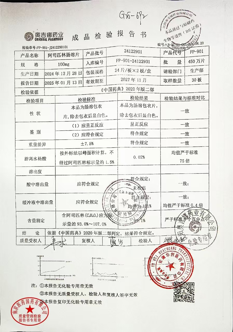 阿司匹林肠溶片 | 100mg*48片 | 24111101 | 查看详情 |