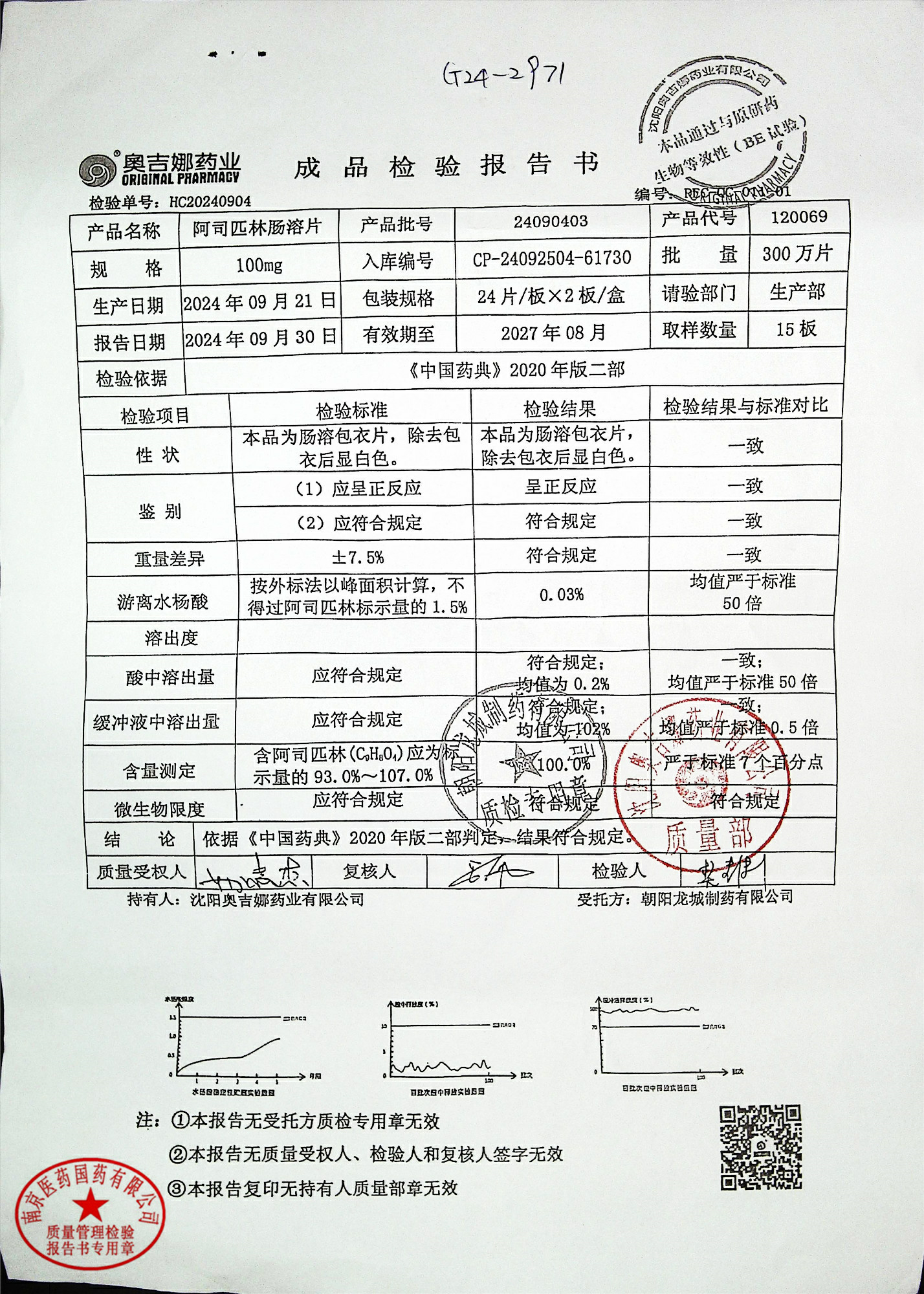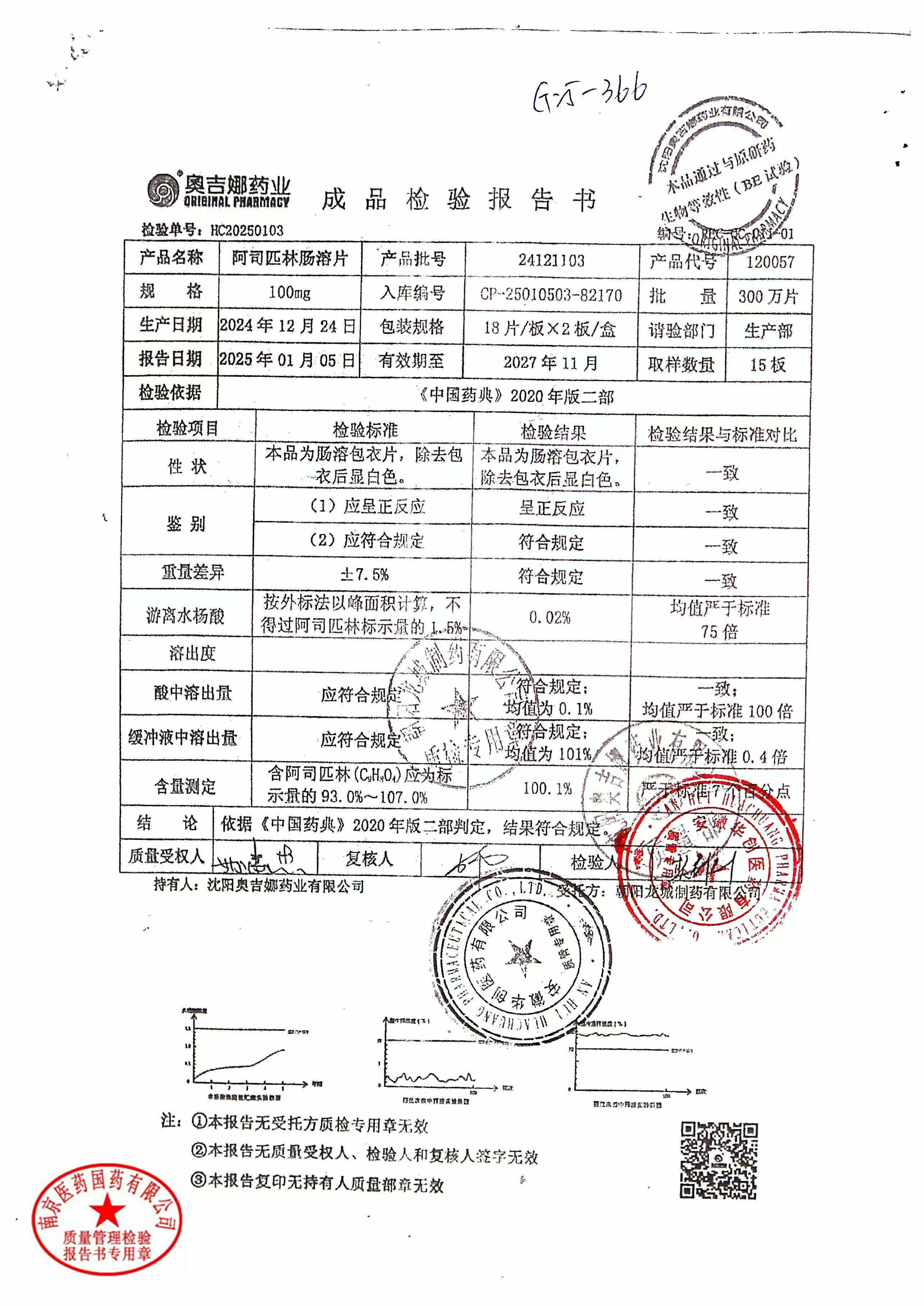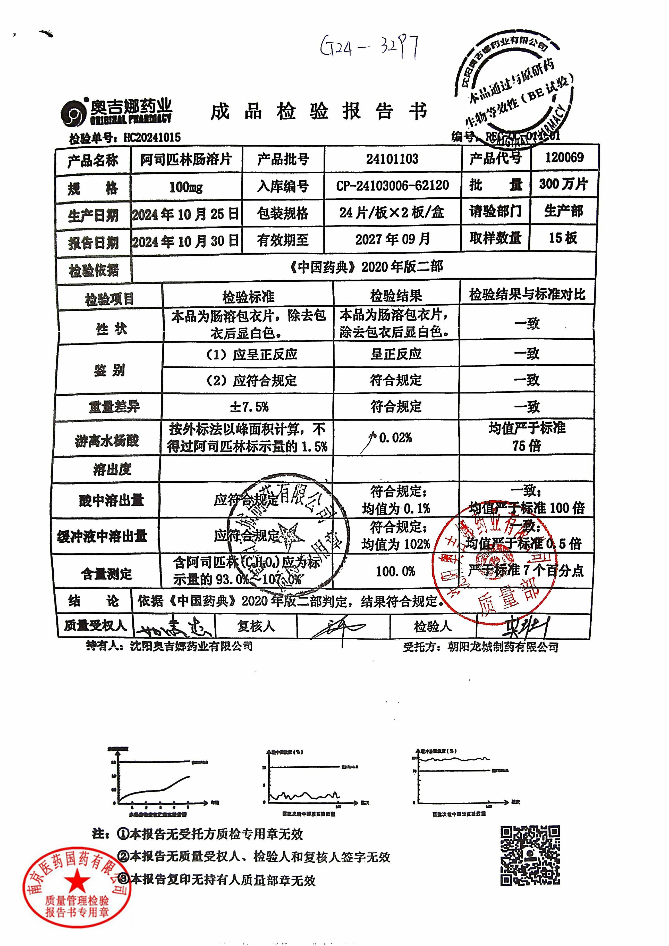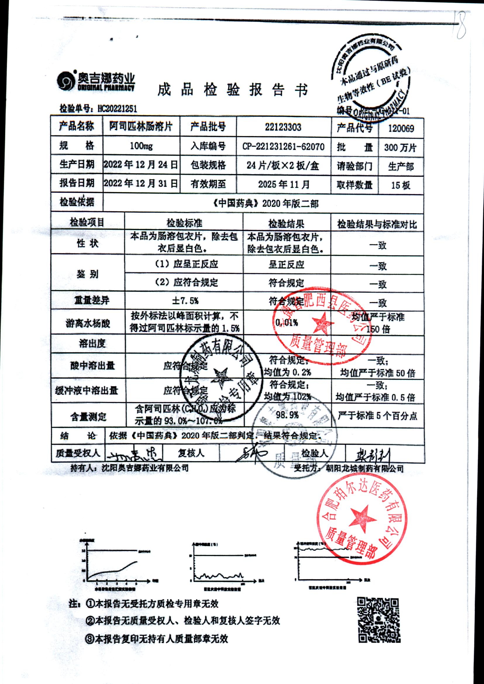 阿司匹林肠溶片 | 100mg*48片 | 24111101 | 查看详情 |