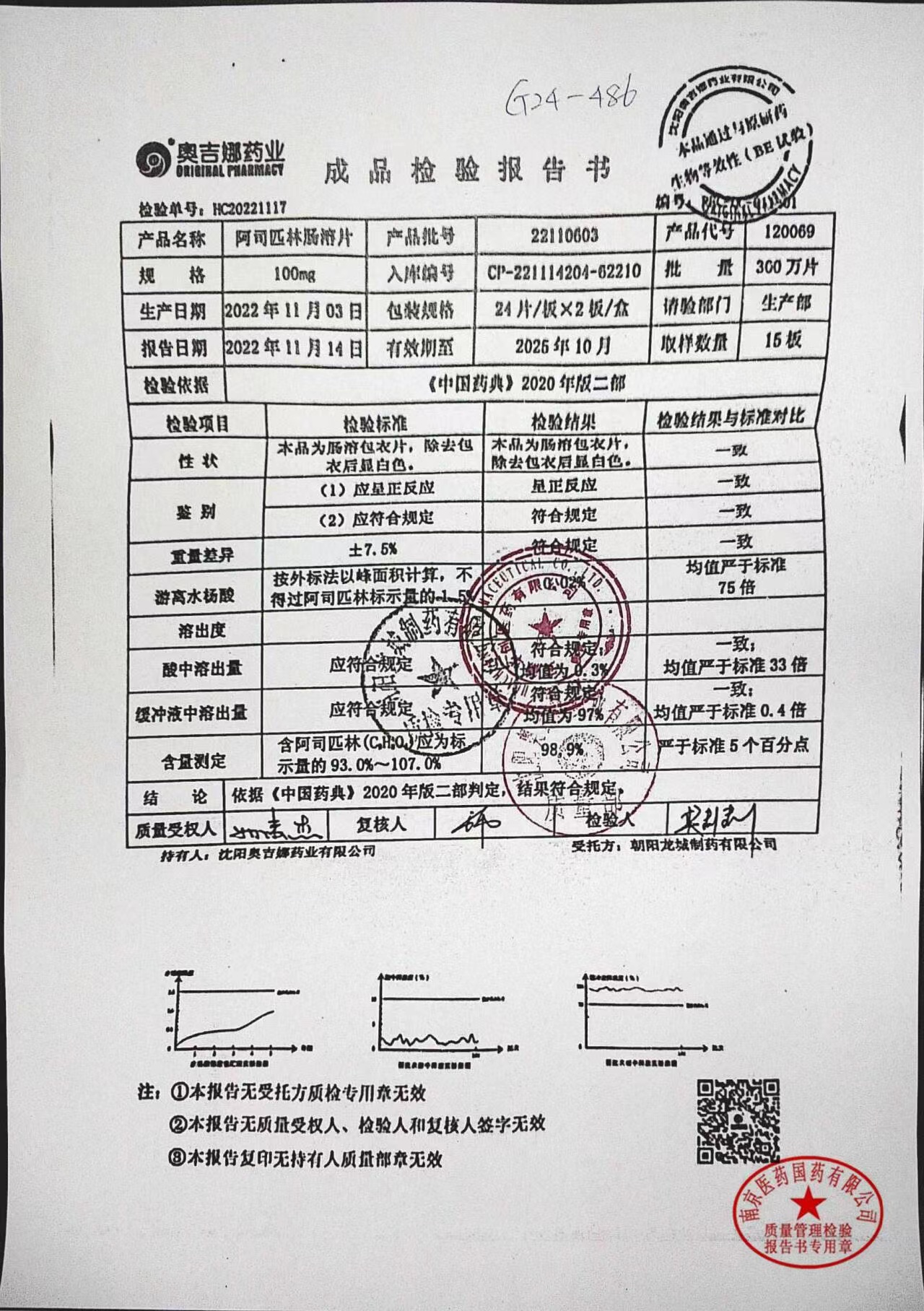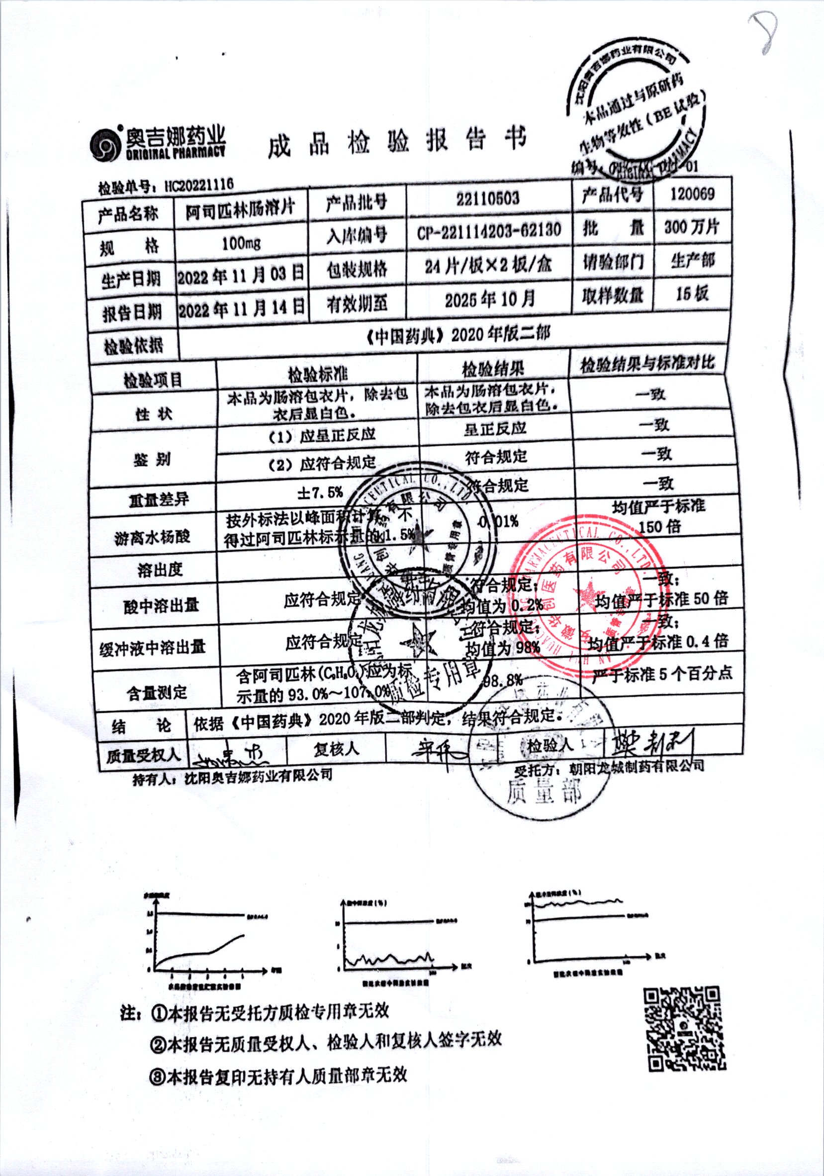 阿司匹林肠溶片 | 100mg*48片 | 22110603 | 查看详情 |