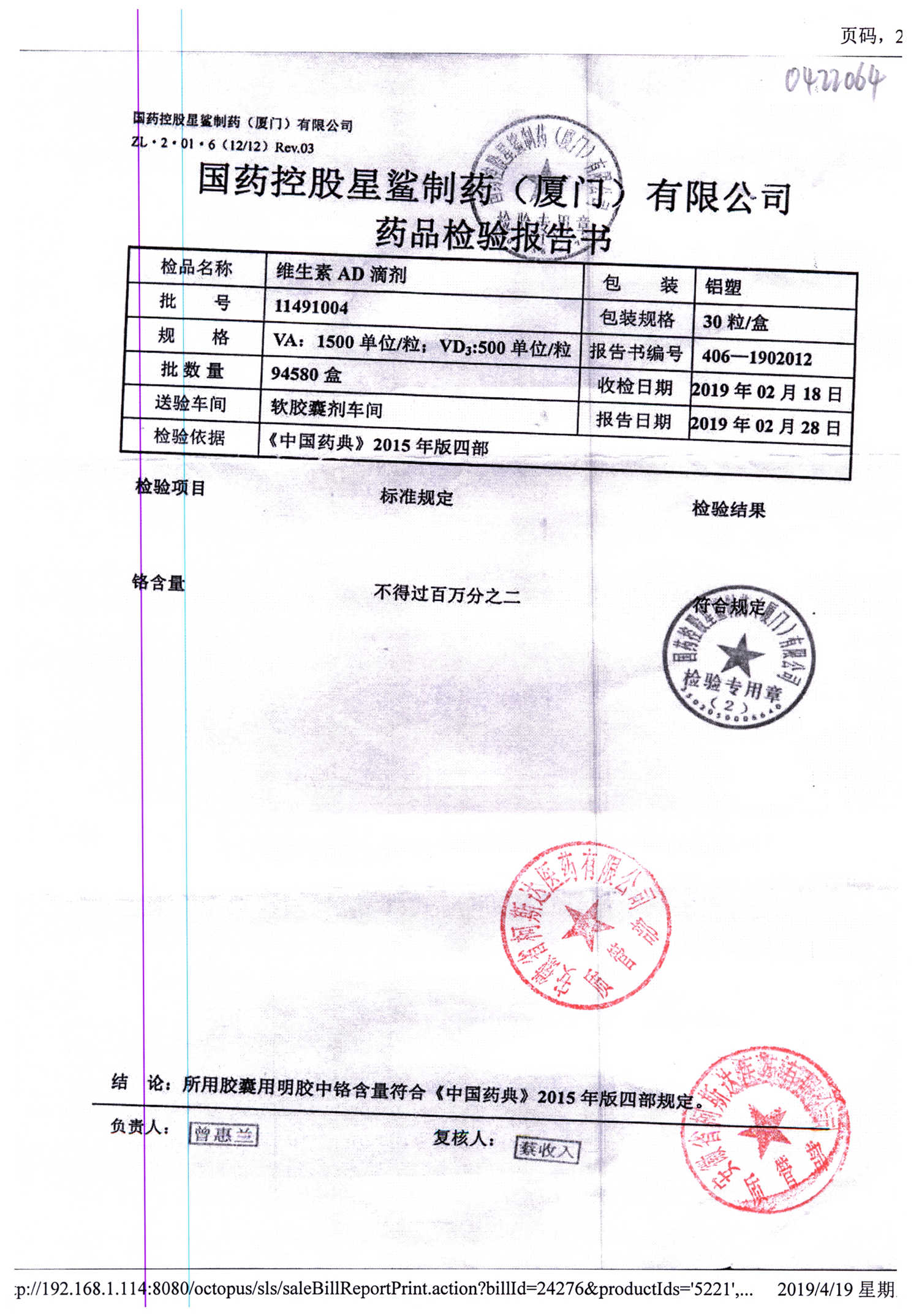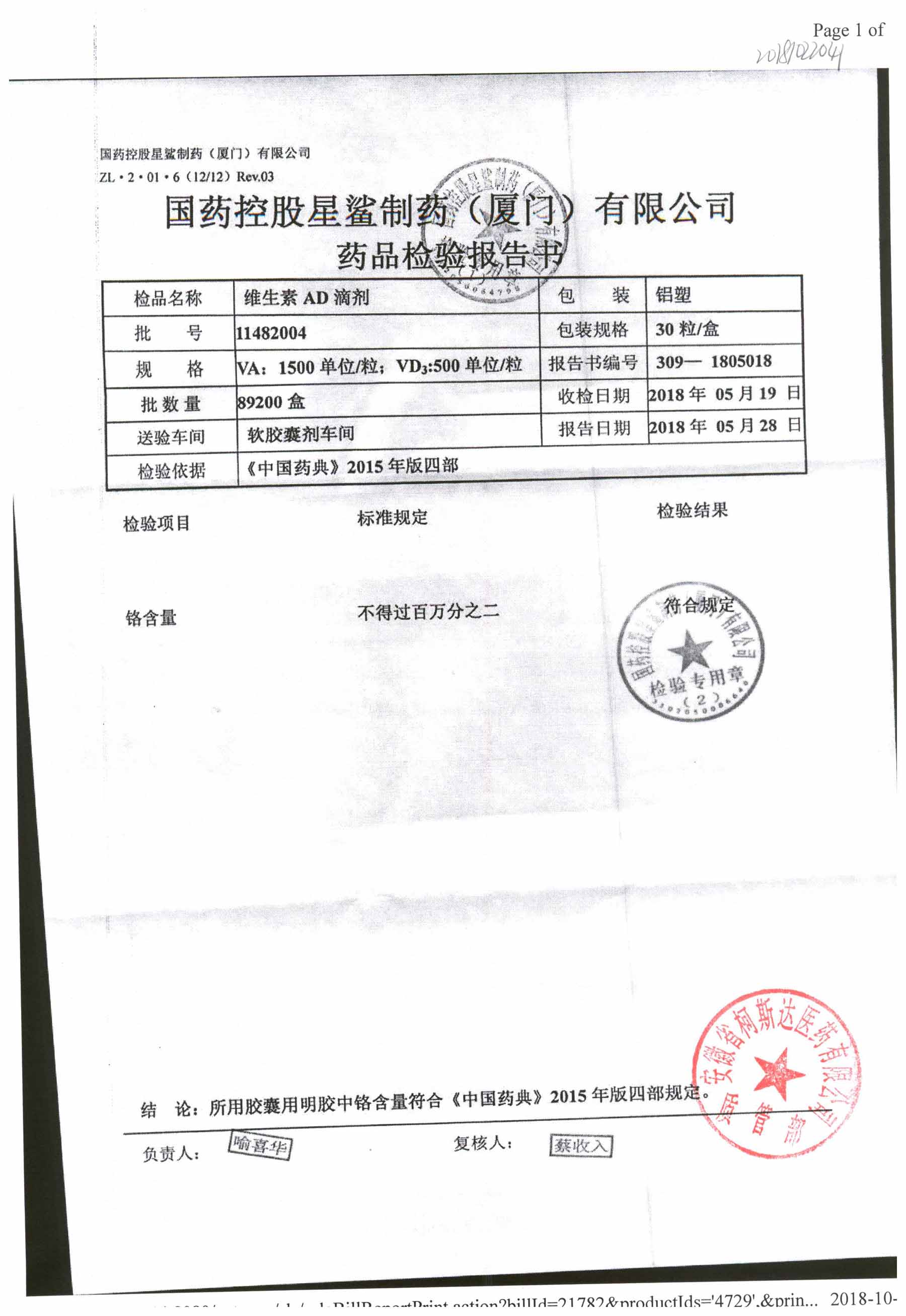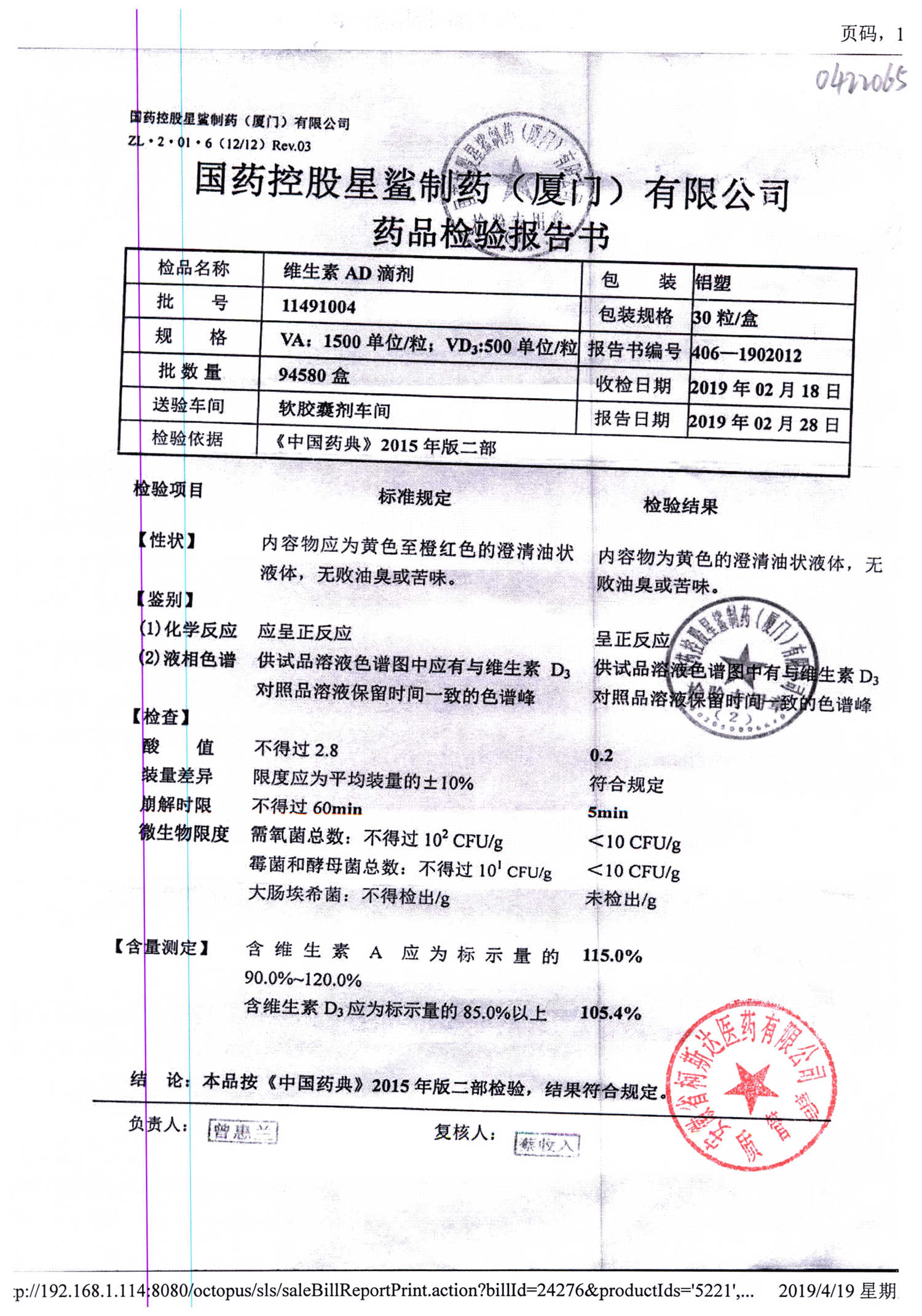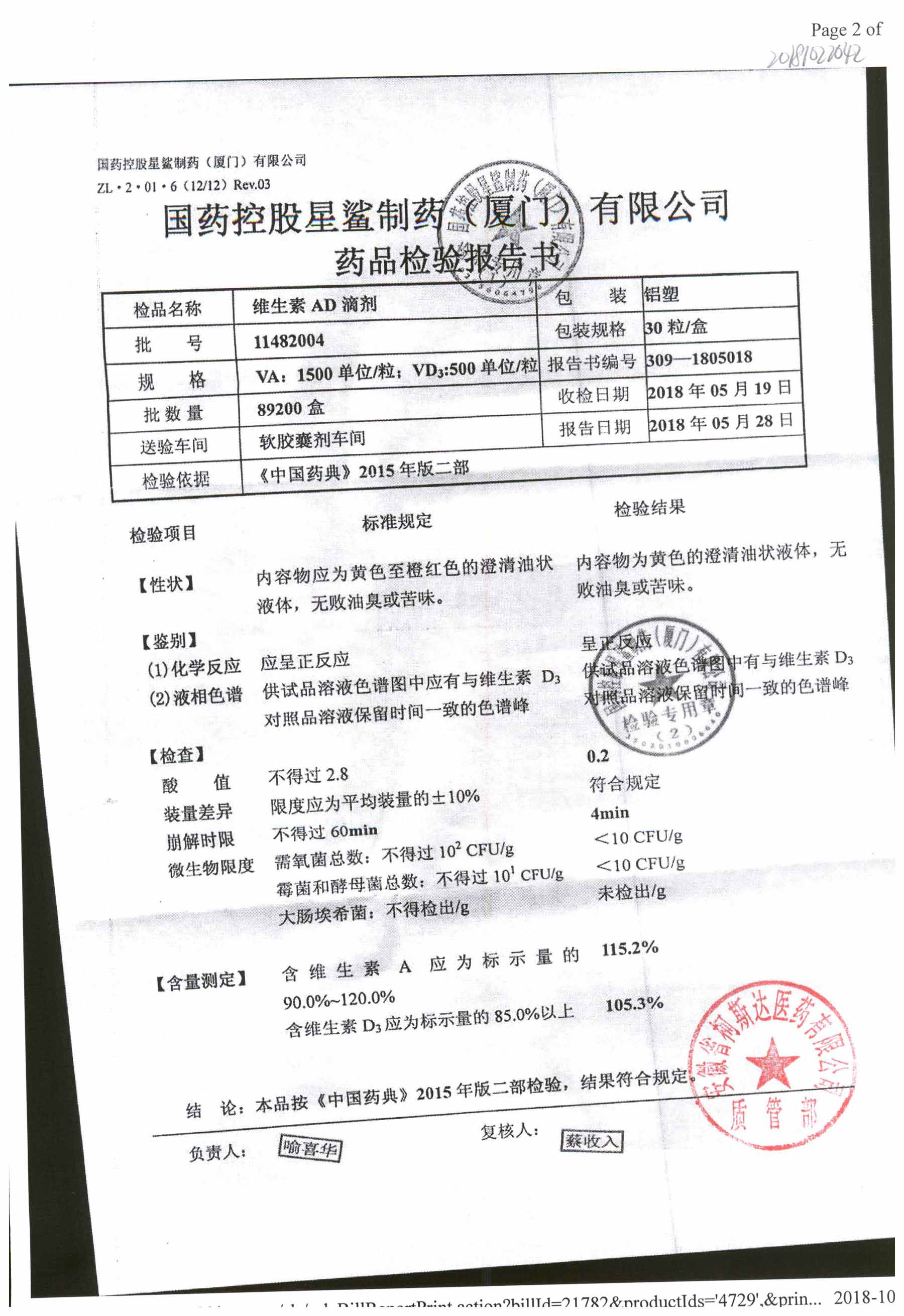 维生素AD滴剂 | VA:1500;VD3:500*30粒 | 11491004(2/2) | 查看详情 |