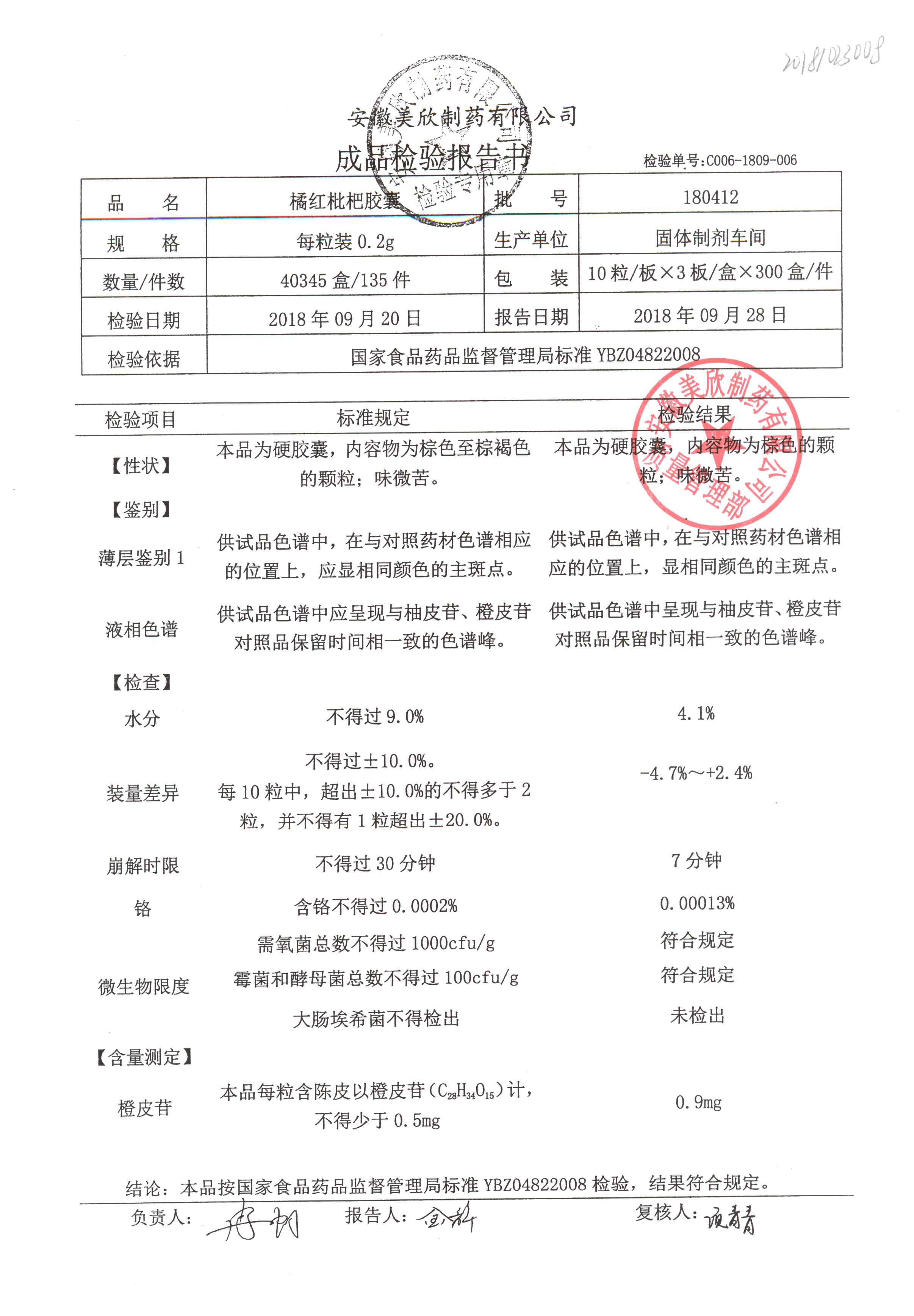 橘红枇杷胶囊 | 0.2g*30粒 | 180412 | 查看详情 |