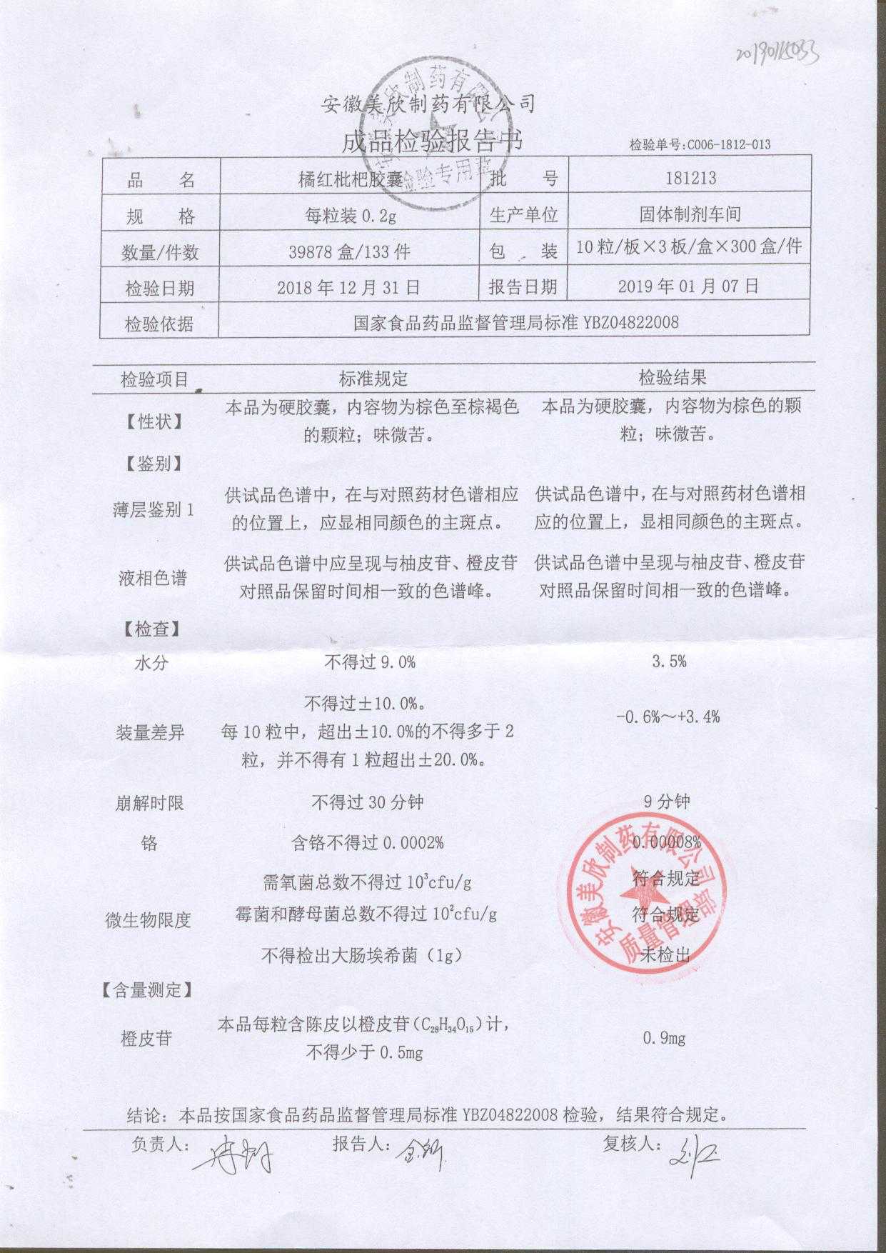 橘红枇杷胶囊 | 0.2g*30粒 | 181213 | 查看详情 |