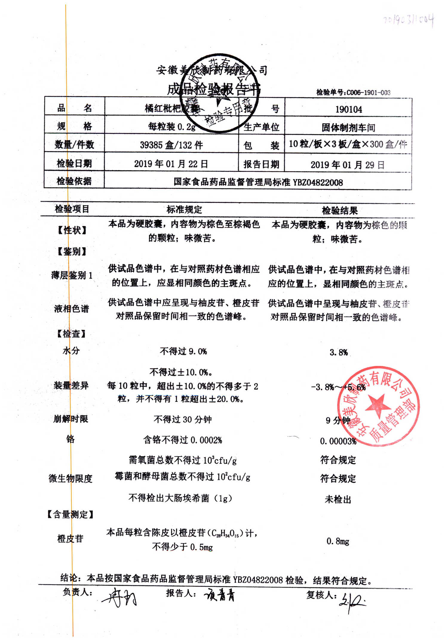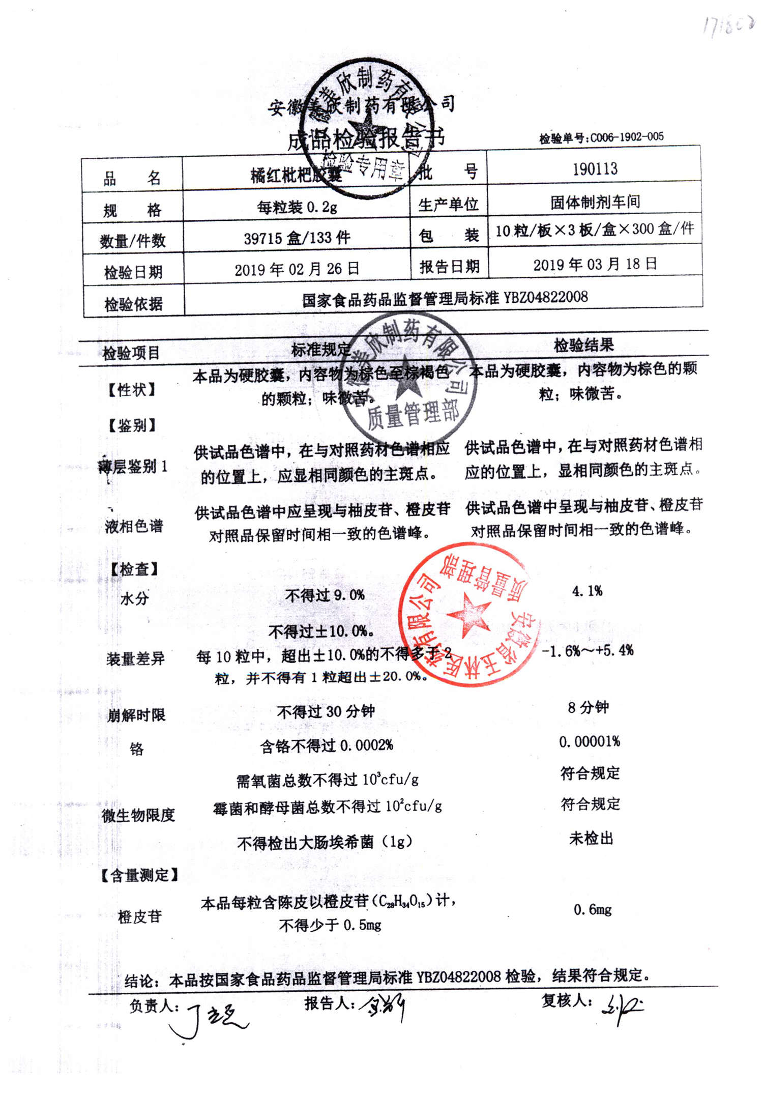 橘红枇杷胶囊 | 0.2g*30粒 | 190113 | 查看详情 |