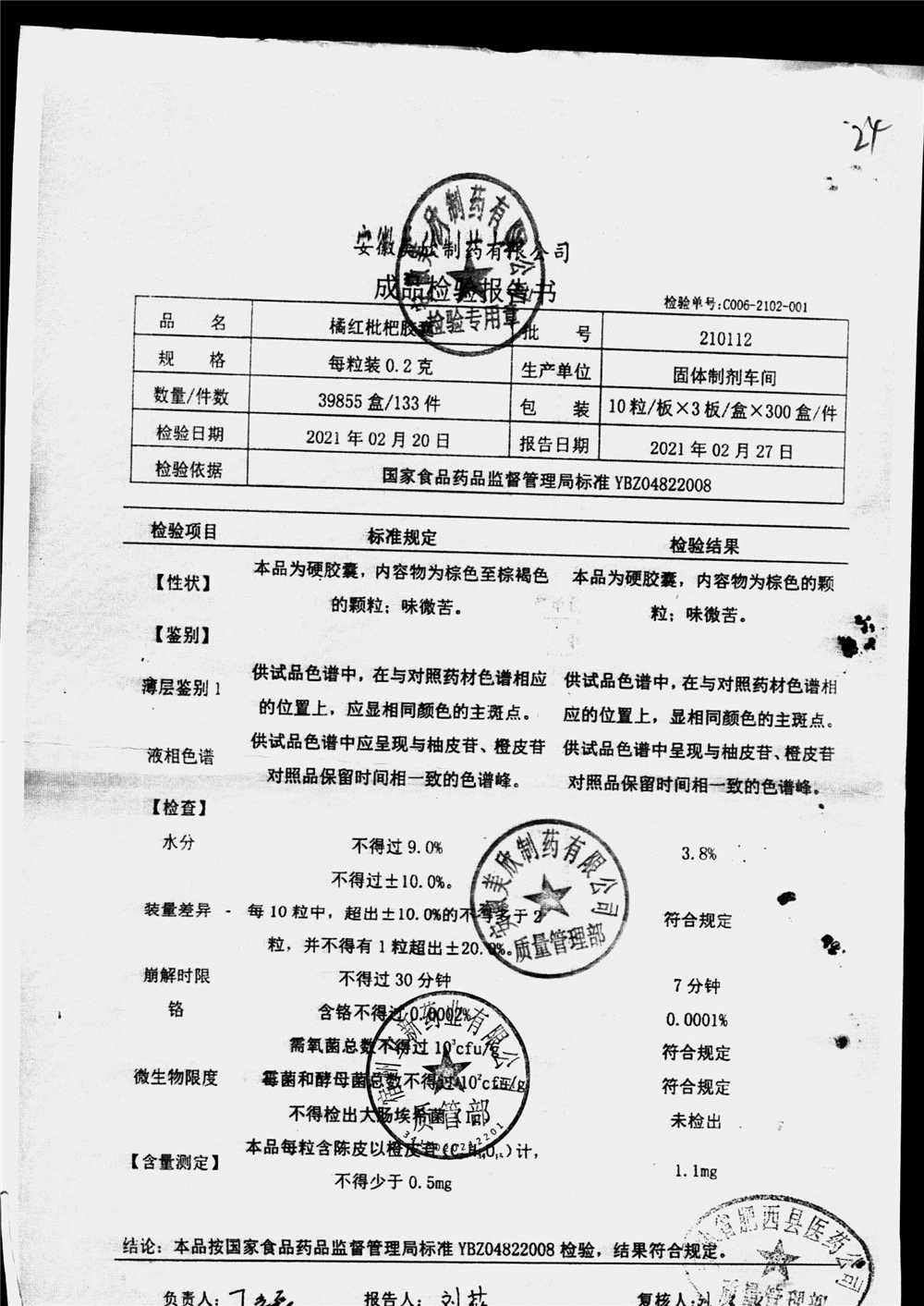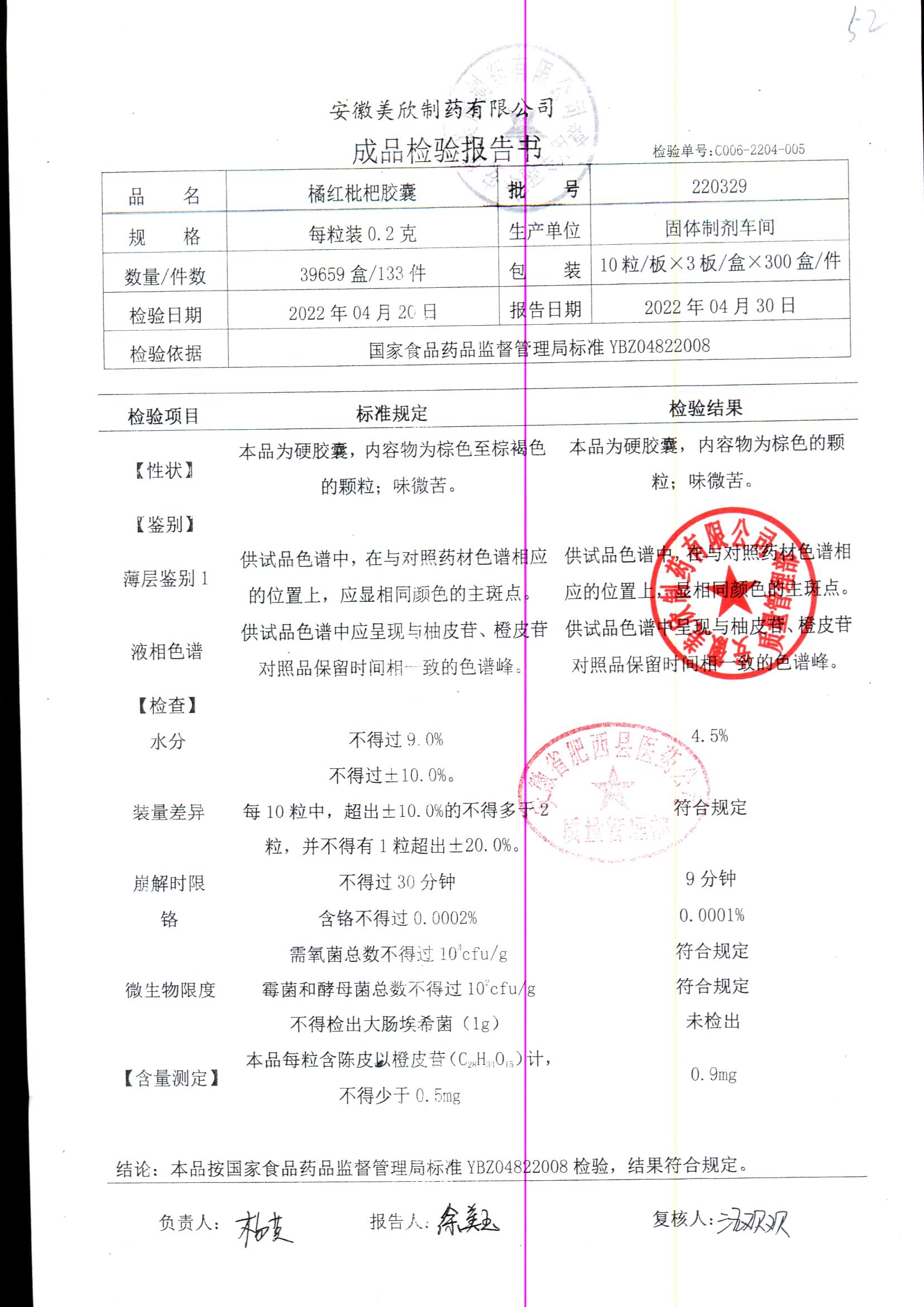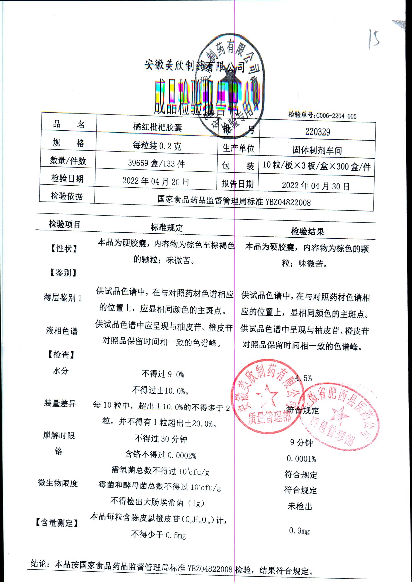 橘红枇杷胶囊 | 0.2g*30粒 | 220329 | 查看详情 |