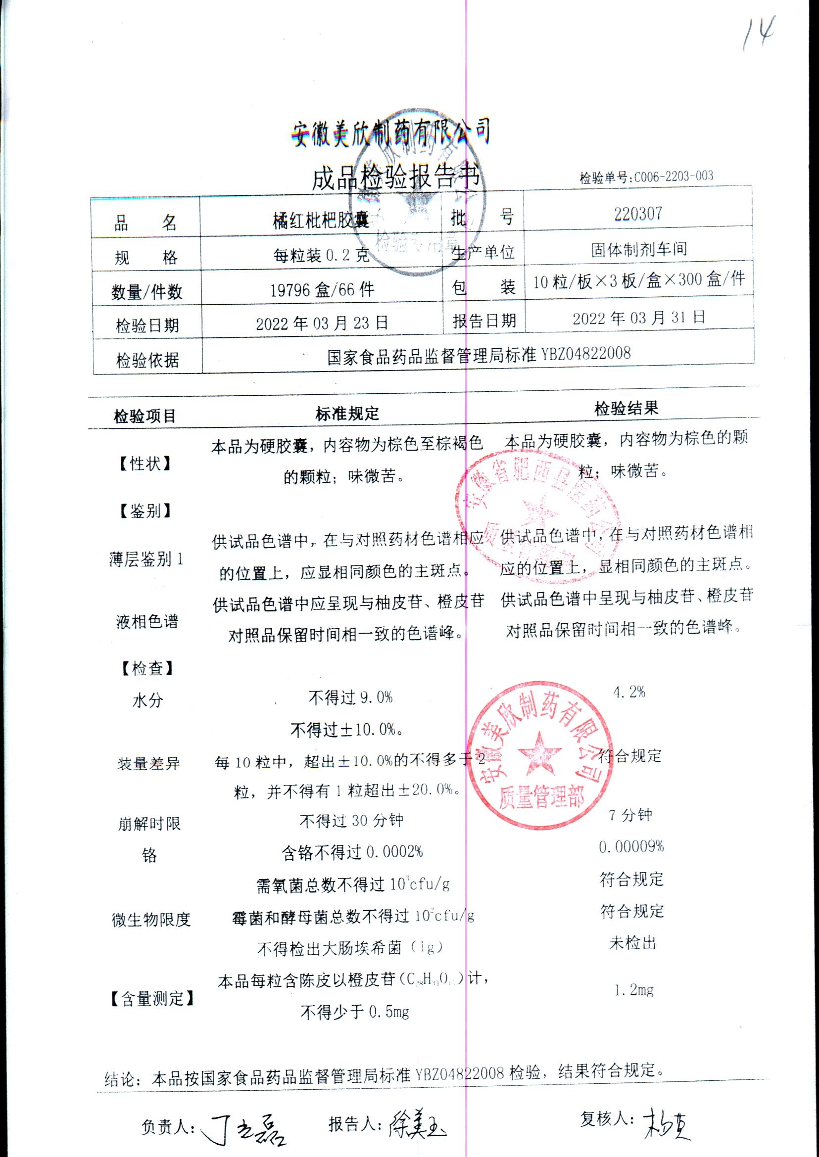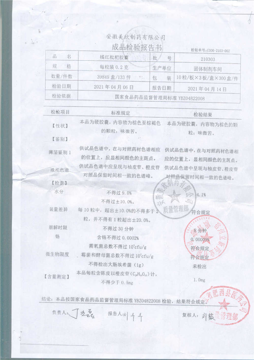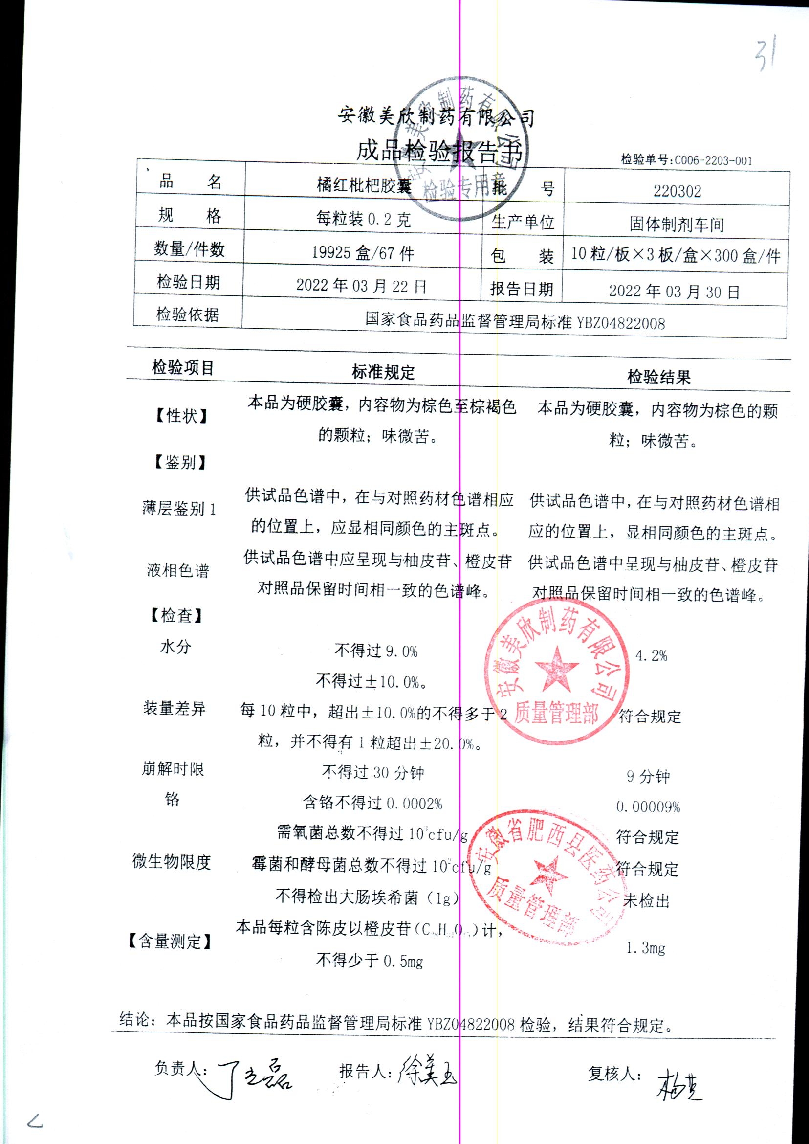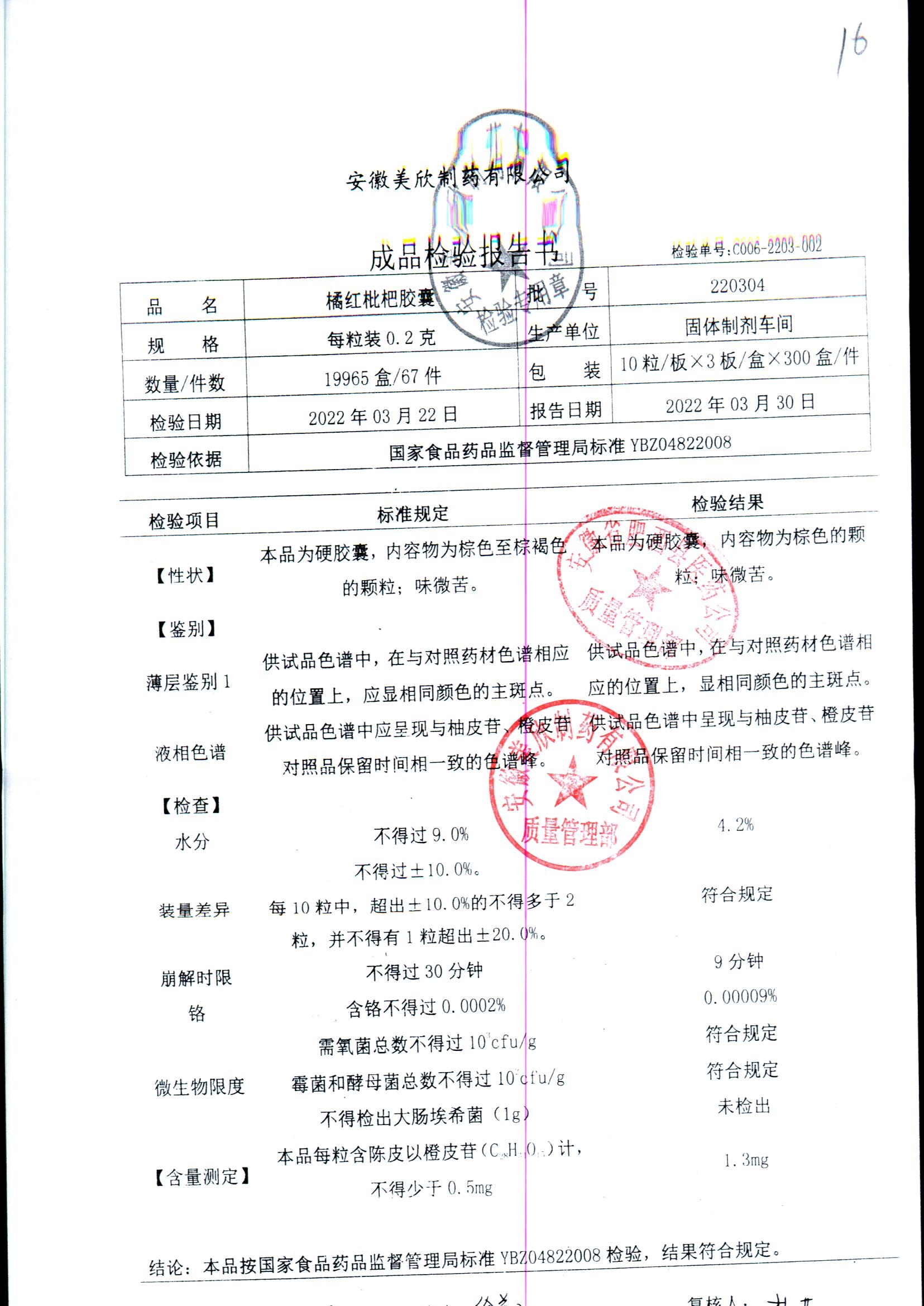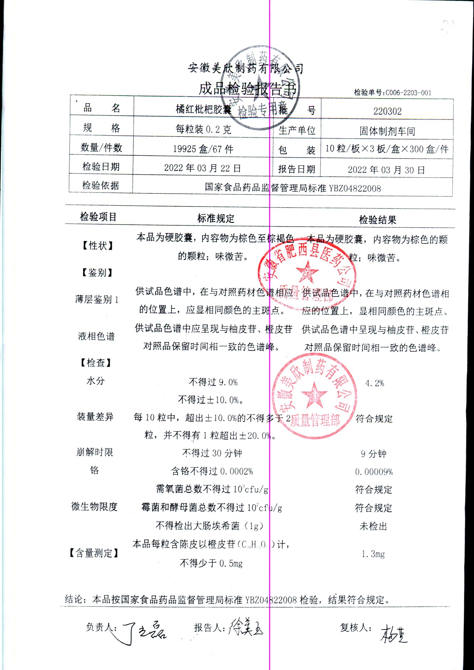 橘红枇杷胶囊 | 0.2g*30粒 | 220302 | 查看详情 |