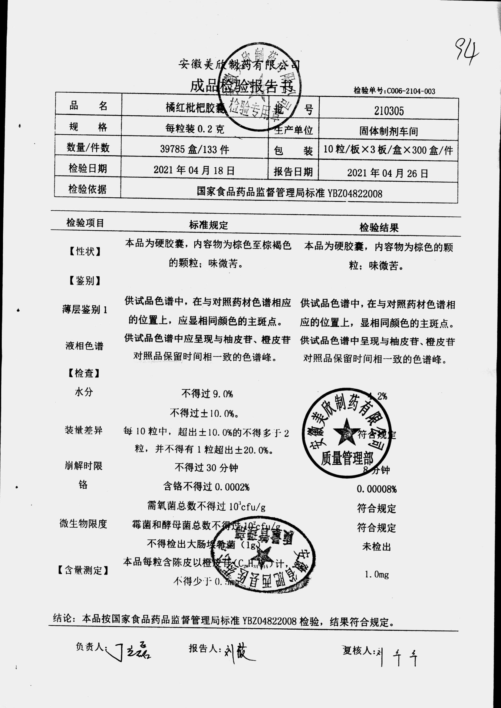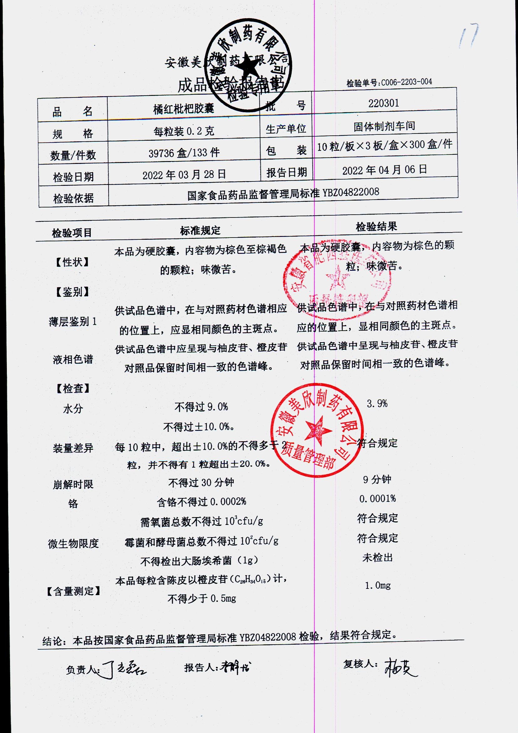 橘红枇杷胶囊 | 0.2g*30粒 | 220304 | 查看详情 |