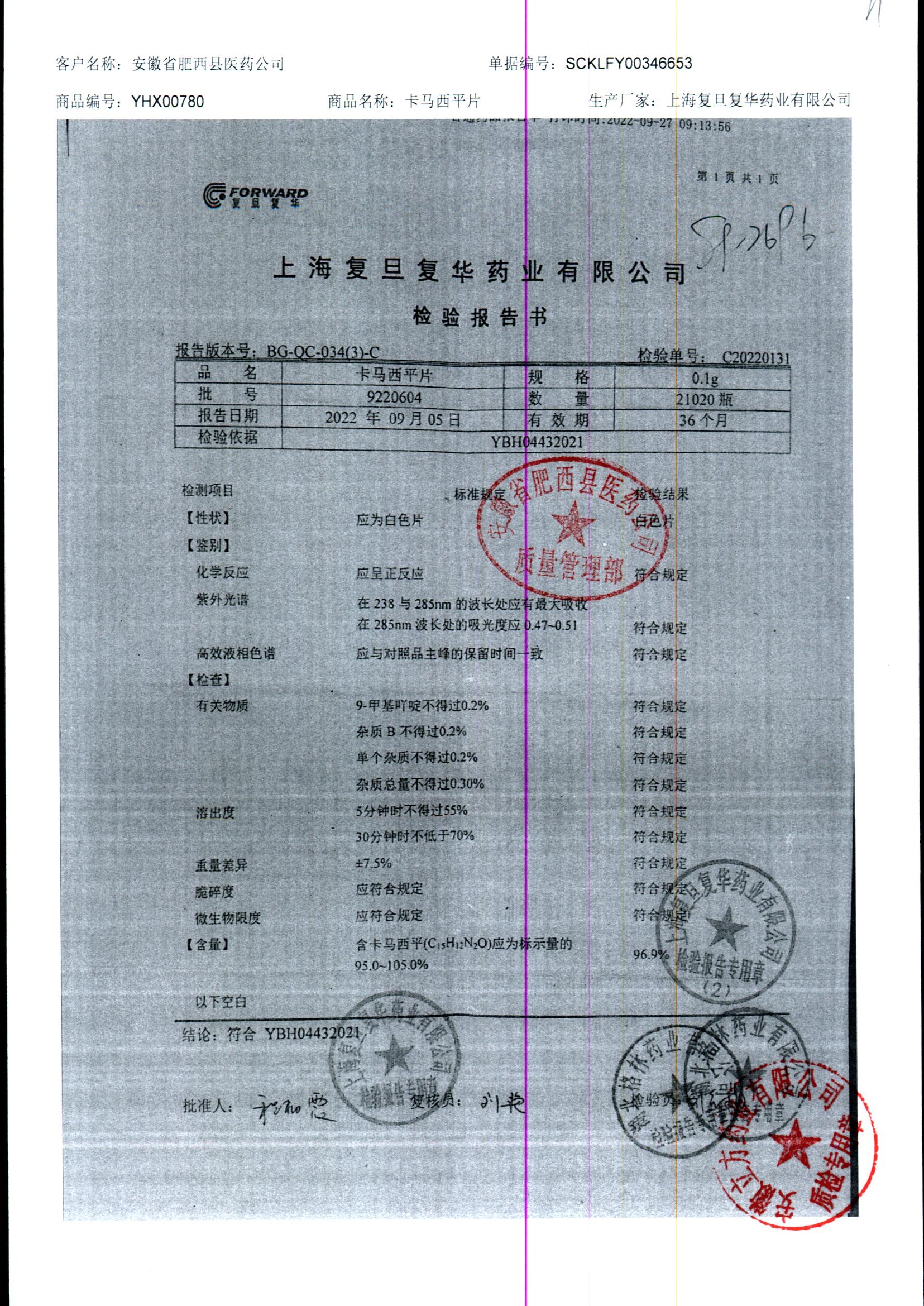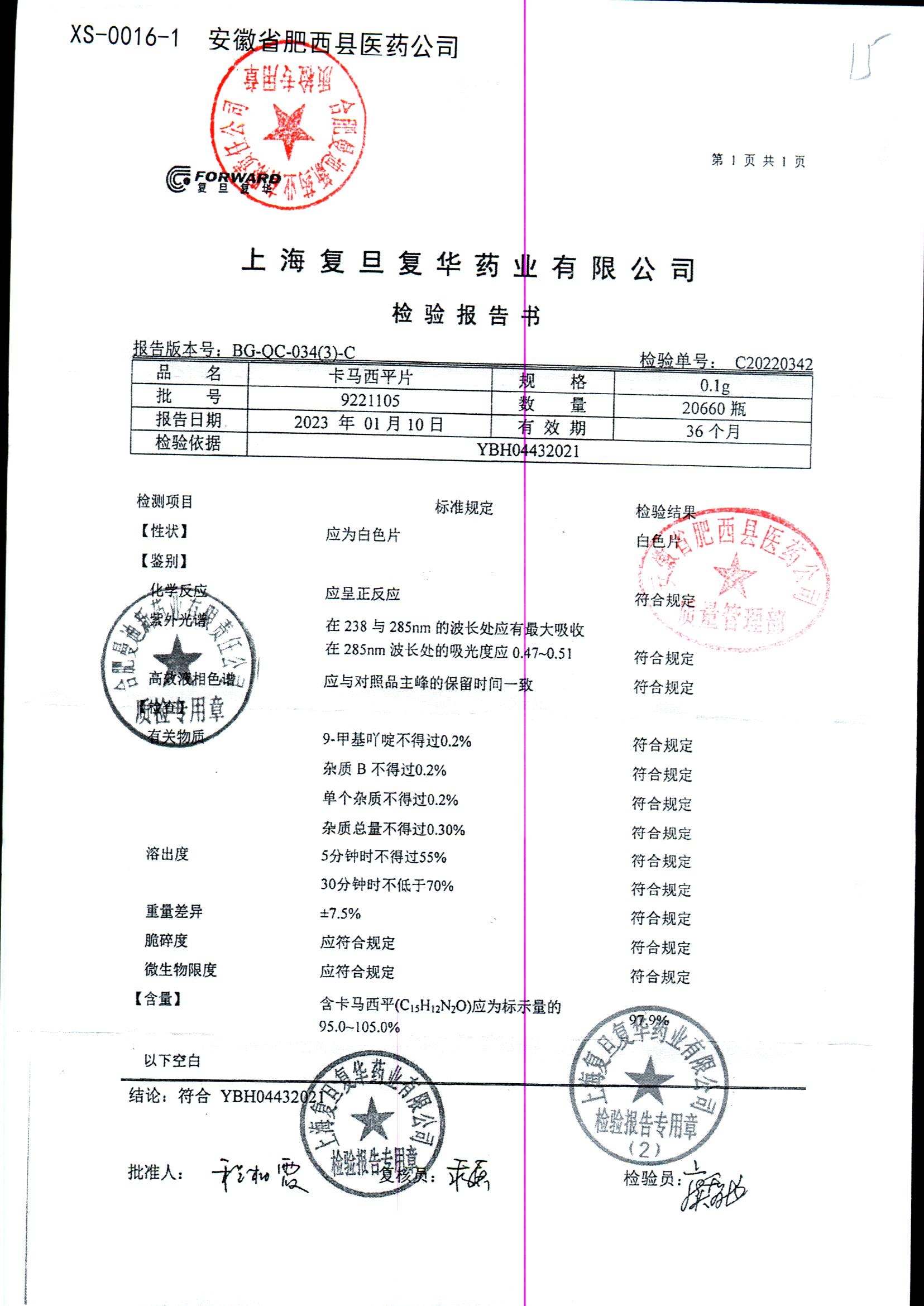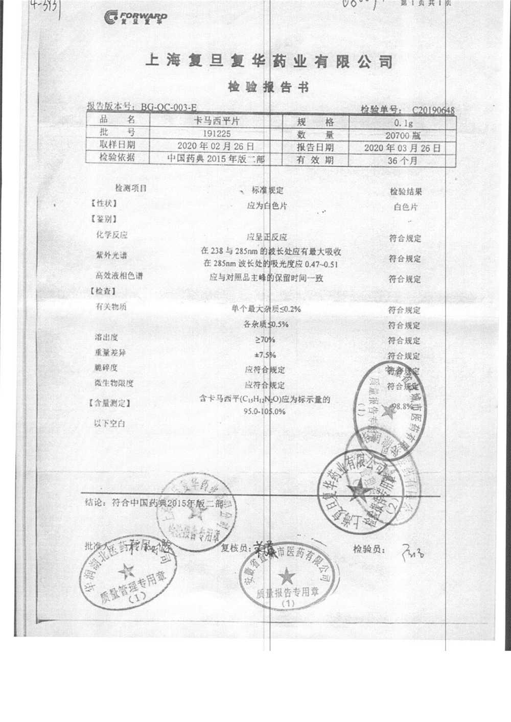 卡马西平片 | 0.1g | 190422 | 查看详情 |