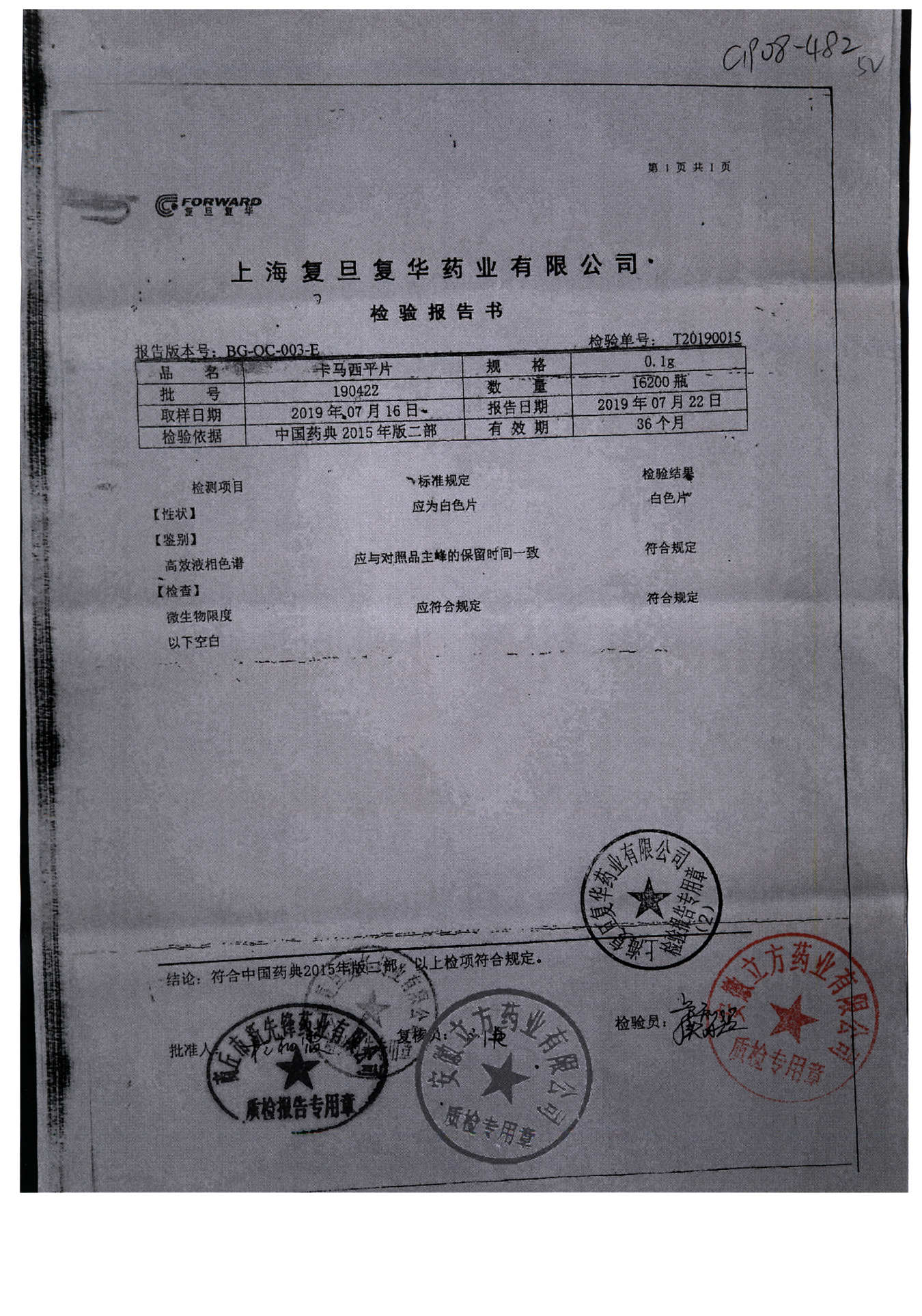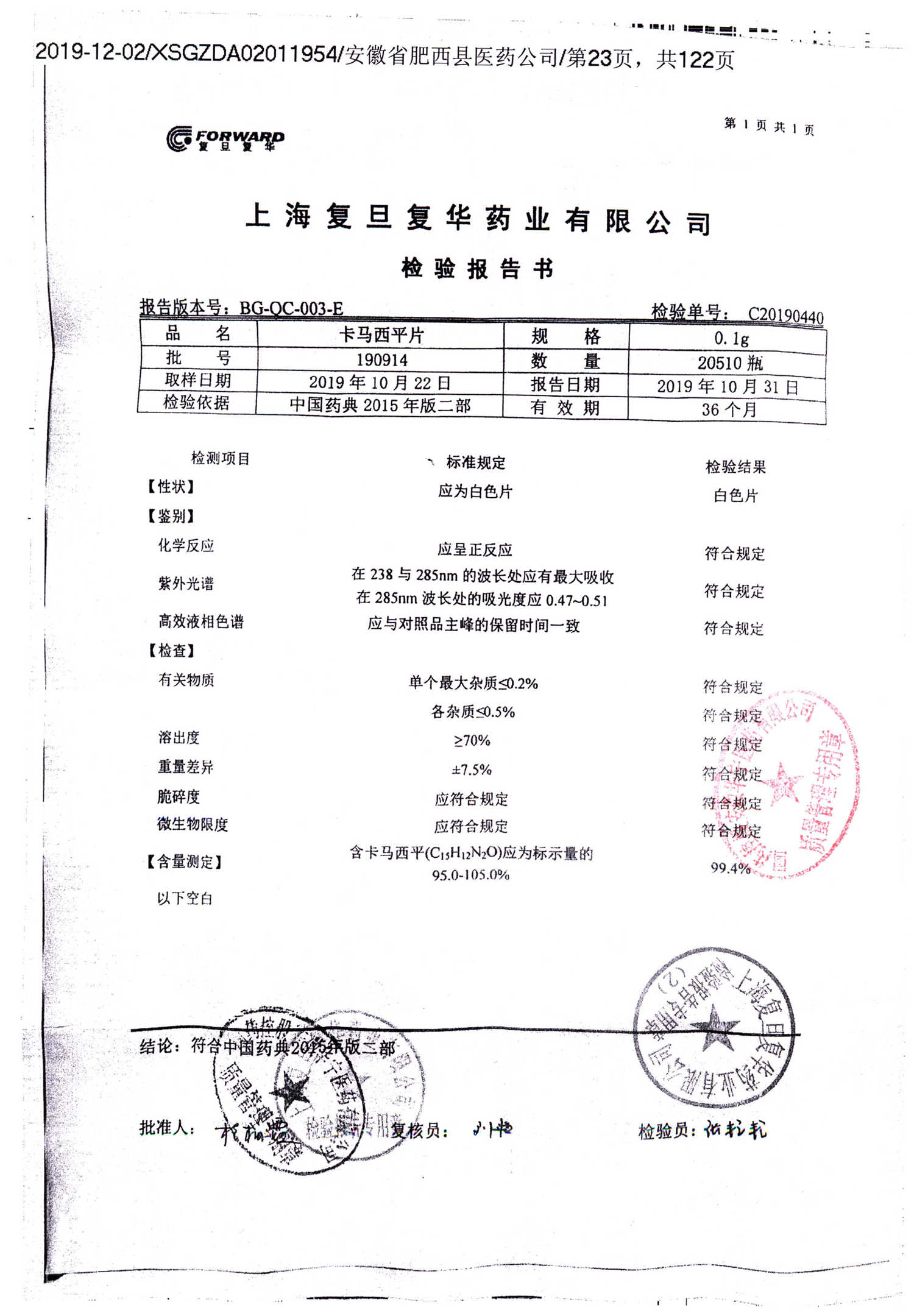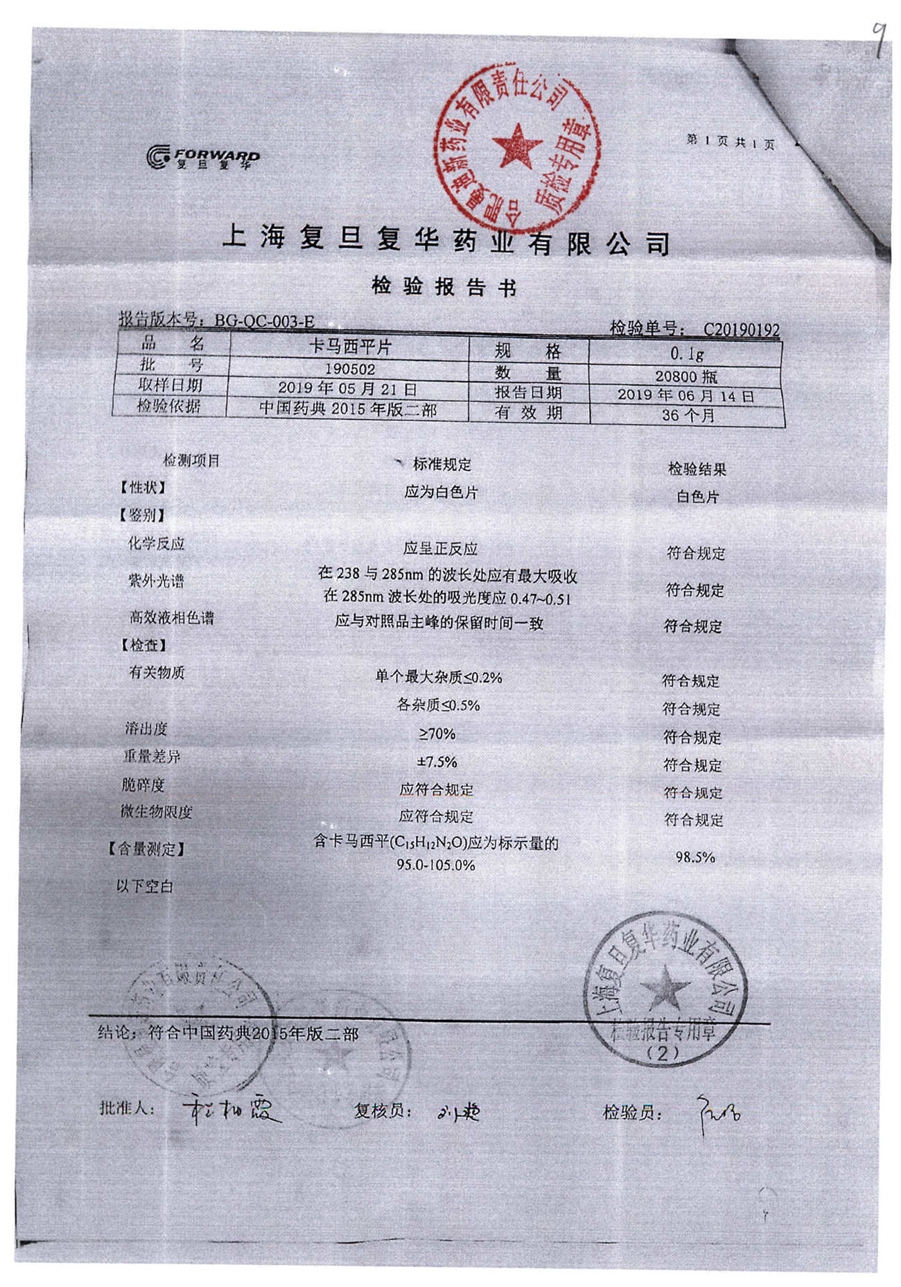 卡马西平片 | 0.1g | 190422 | 查看详情 |