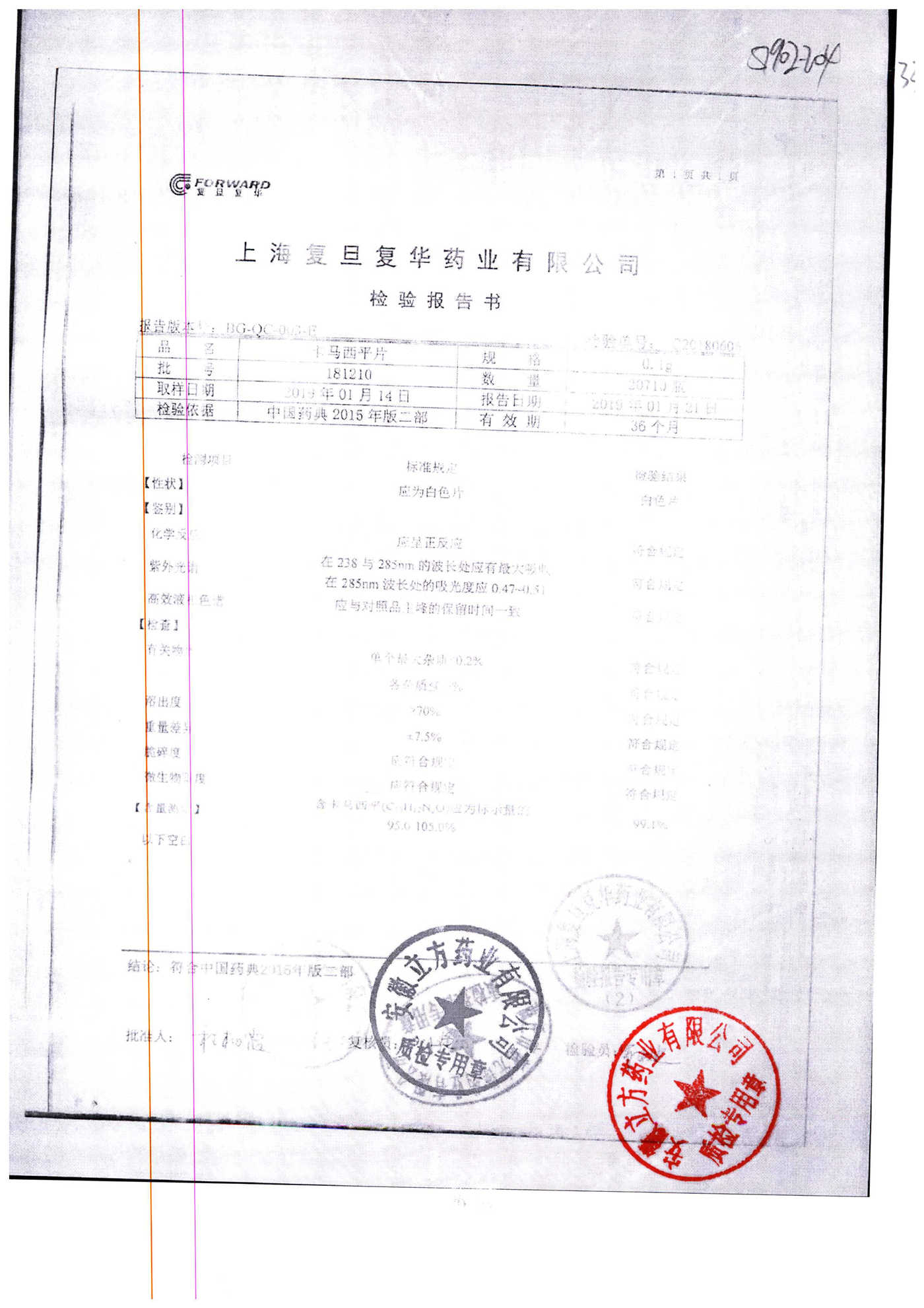 名称 | 规格 | 批号 | 药检报告 |