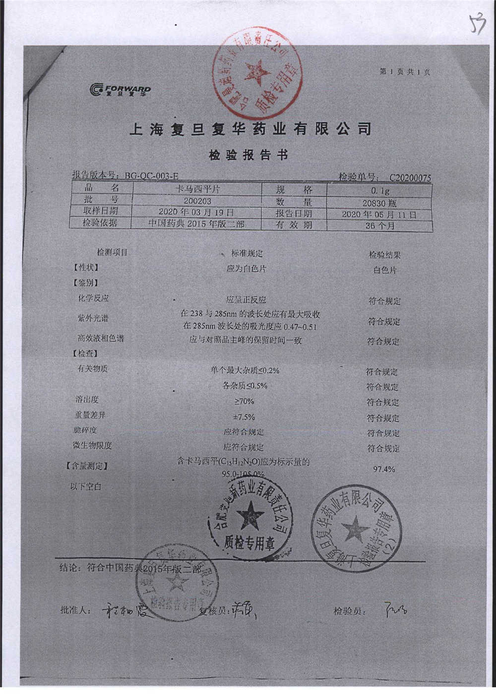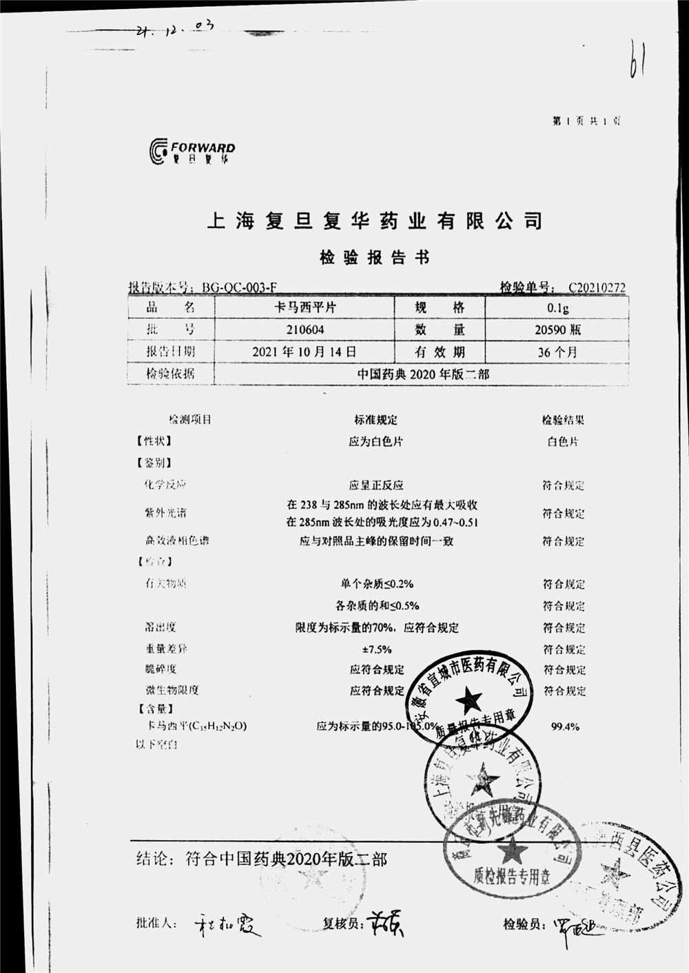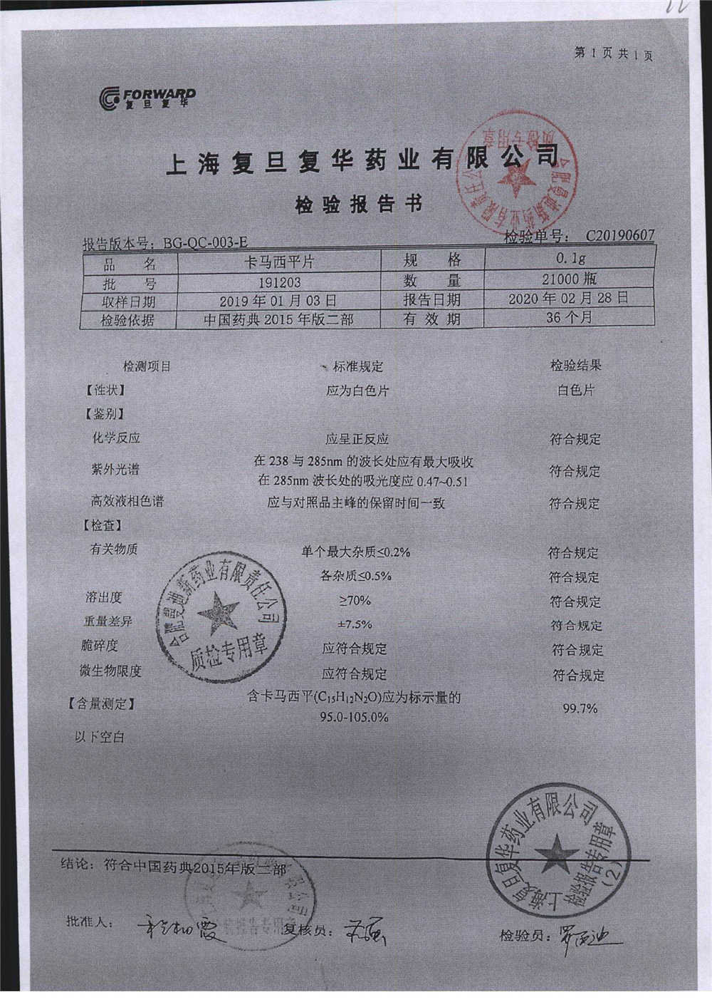 卡马西平片 | 0.1g | 191203 | 查看详情 |
