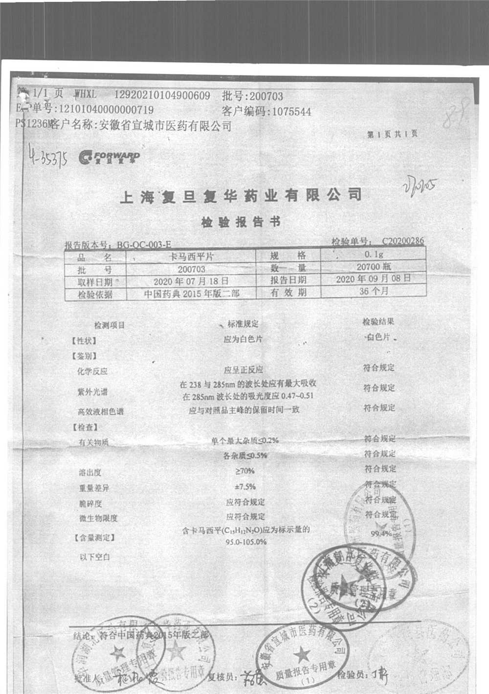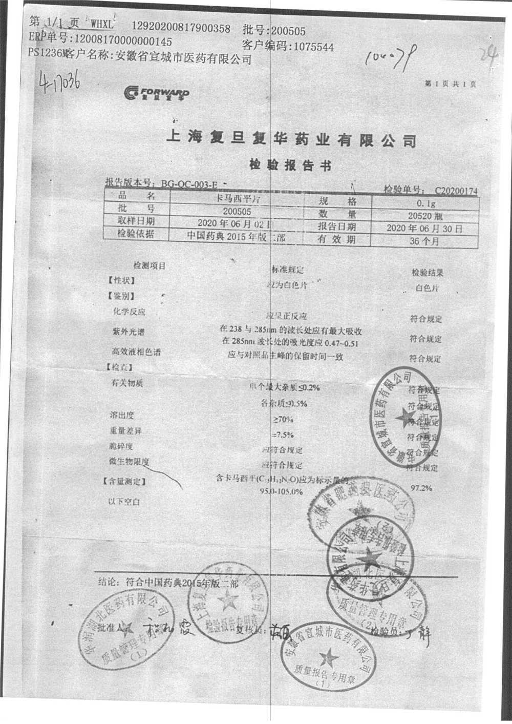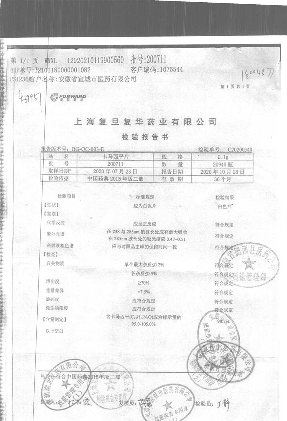 卡马西平片 | 0.1g | 200711 | 查看详情 |