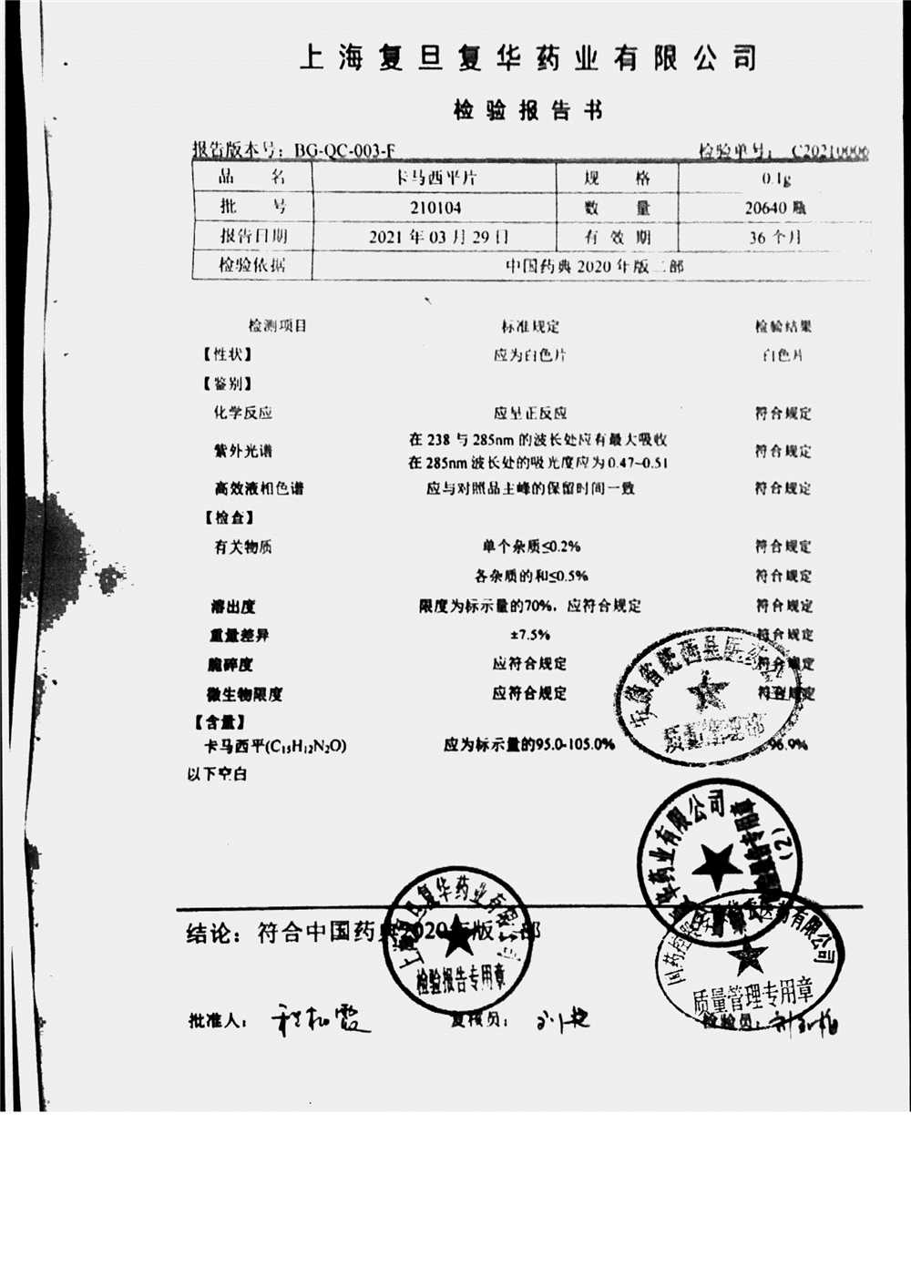 卡马西平片 | 0.1g | 210317 | 查看详情 |