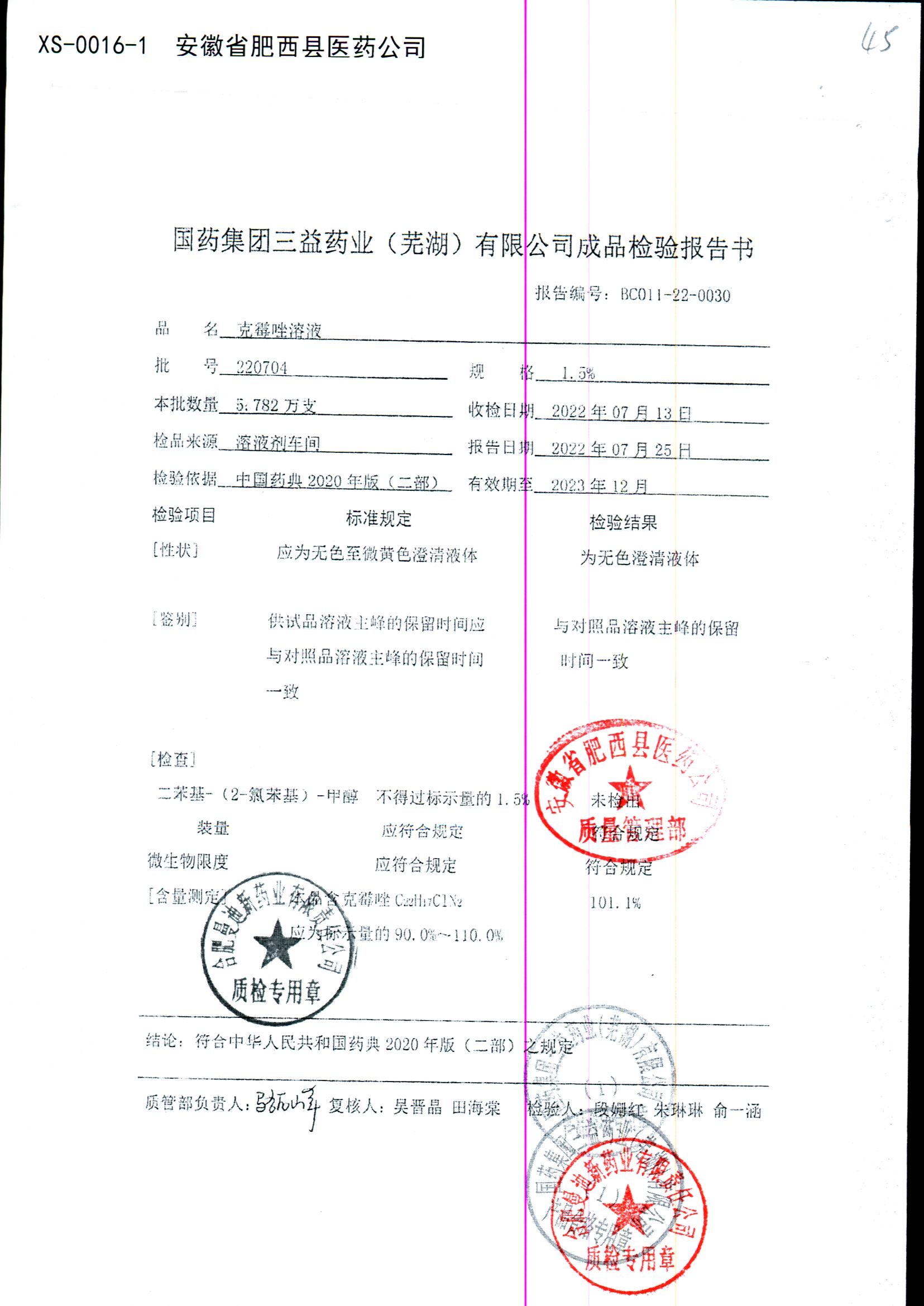 克霉唑溶液 | 1.5% | 220704 | 查看详情 |