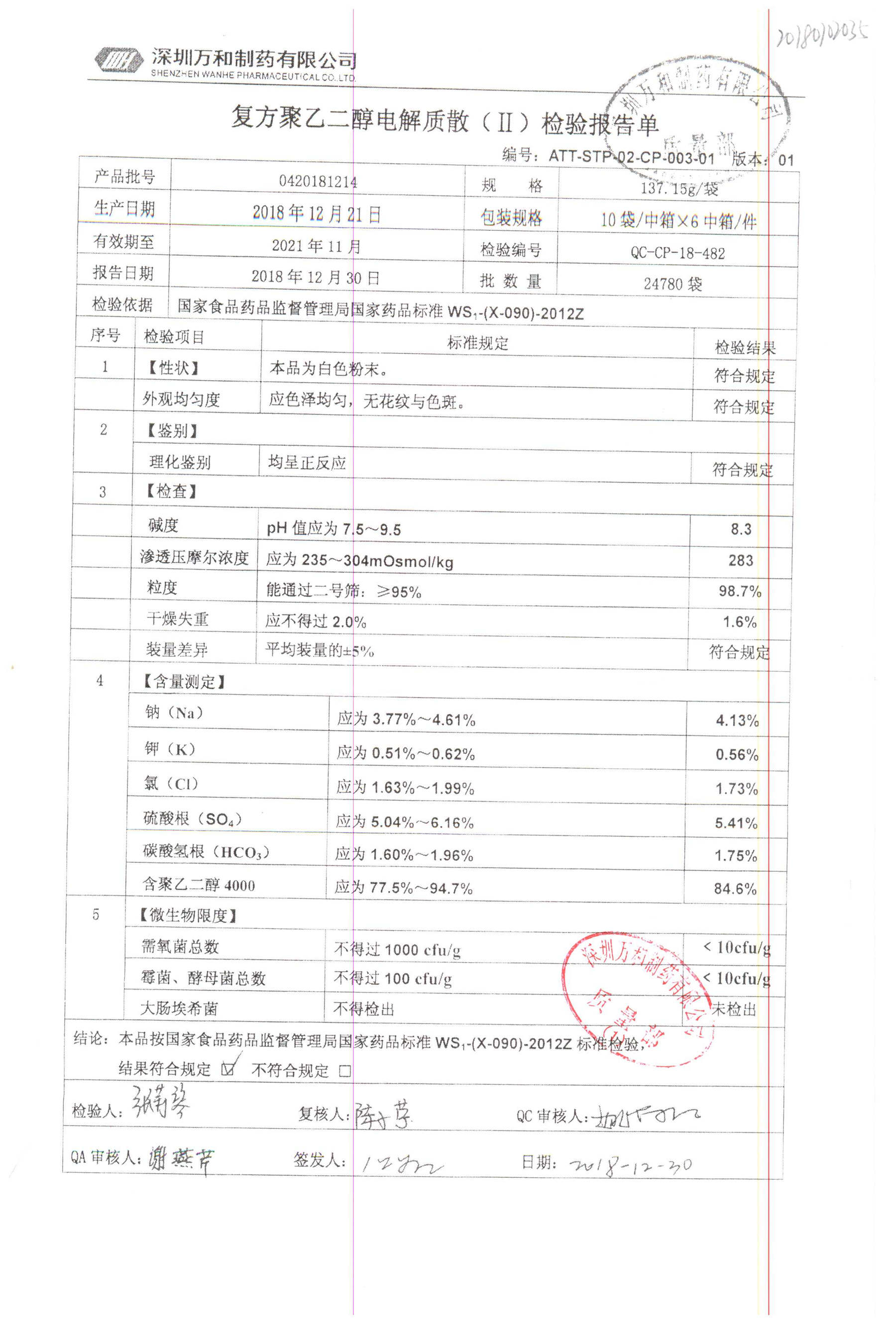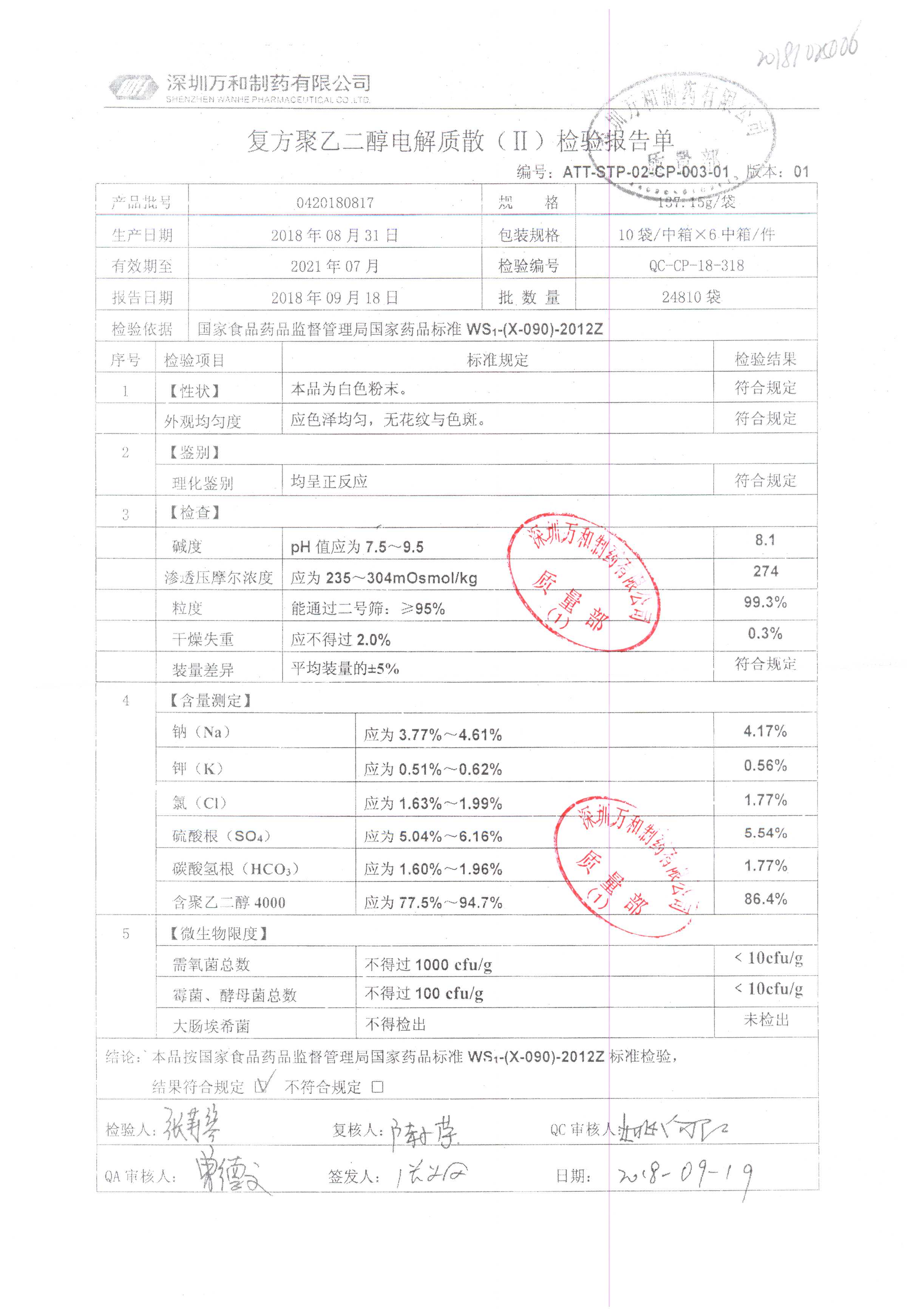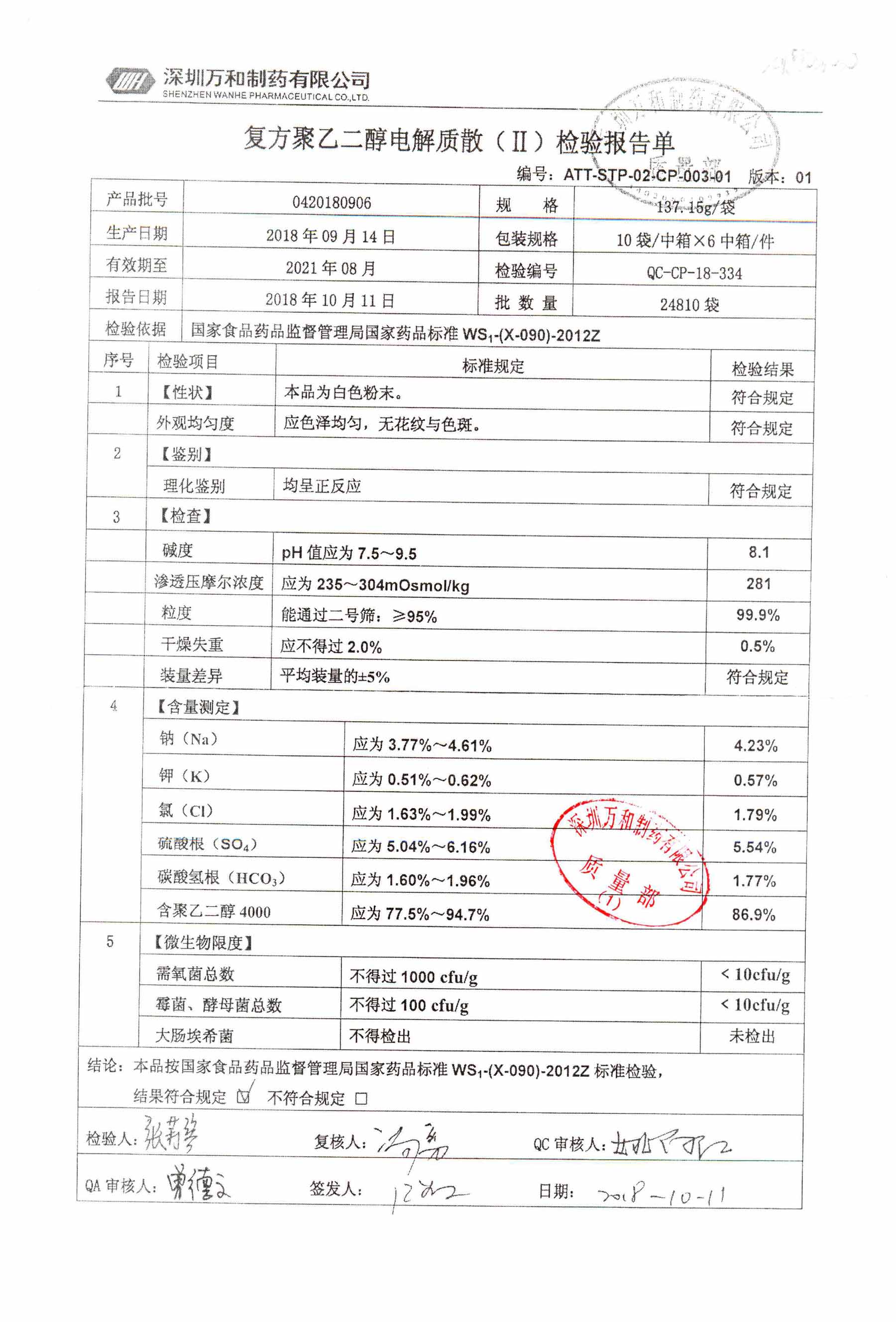 复方聚乙二醇电解质散(II) | 137.15g*10袋 | 0420180817 | 查看详情 |