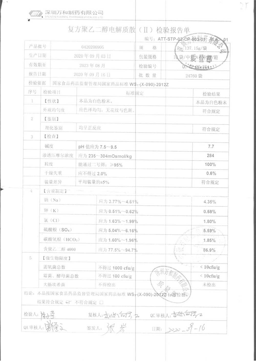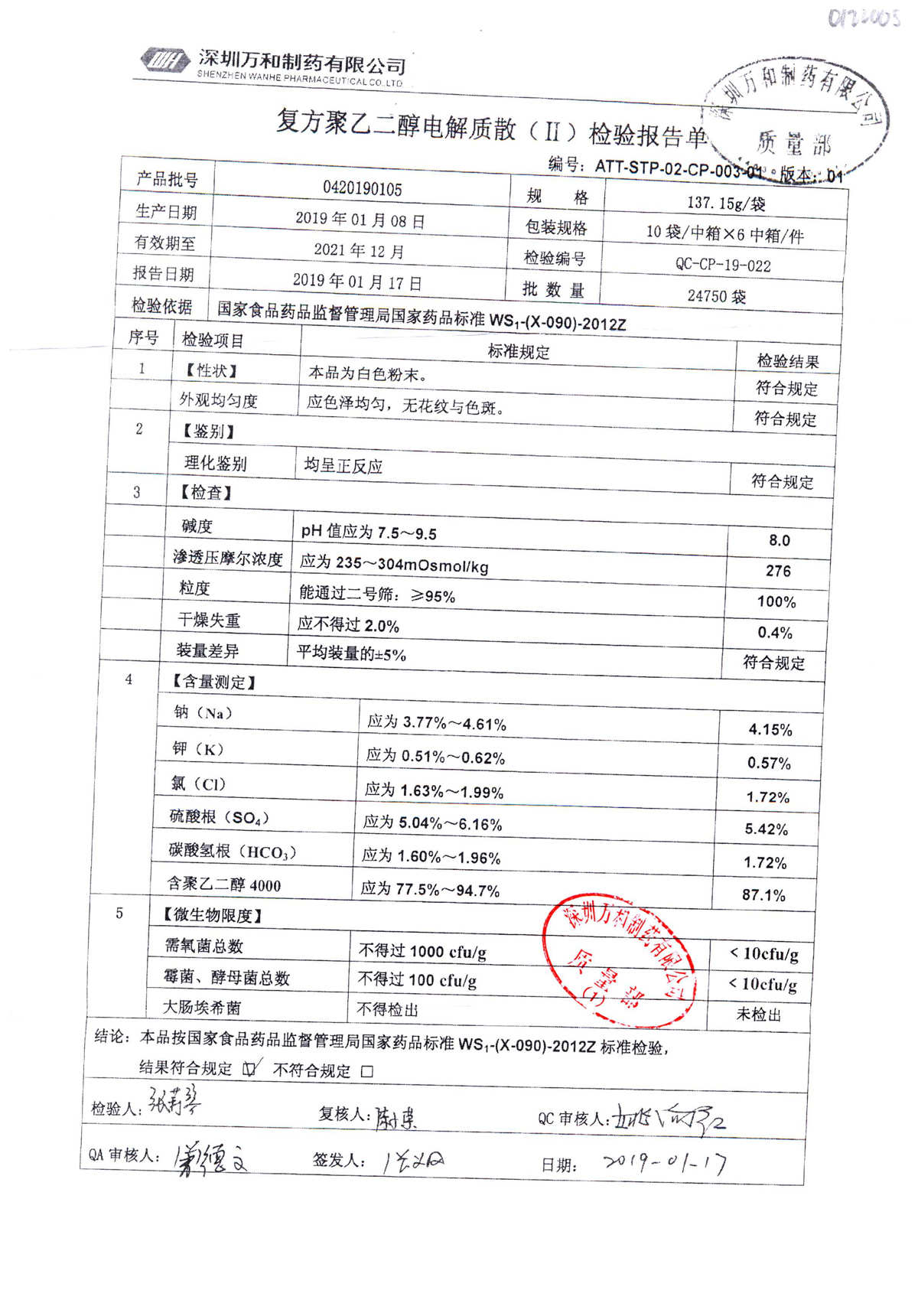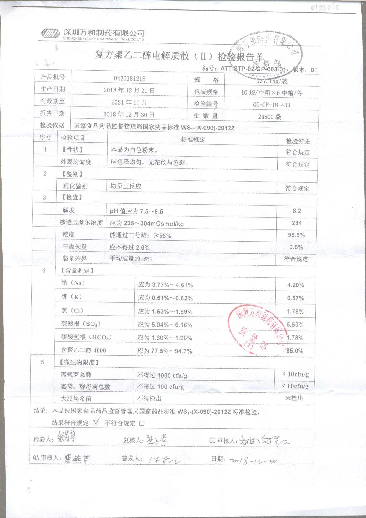 复方聚乙二醇电解质散(II) | 137.15g*10袋 | 0420180817 | 查看详情 |