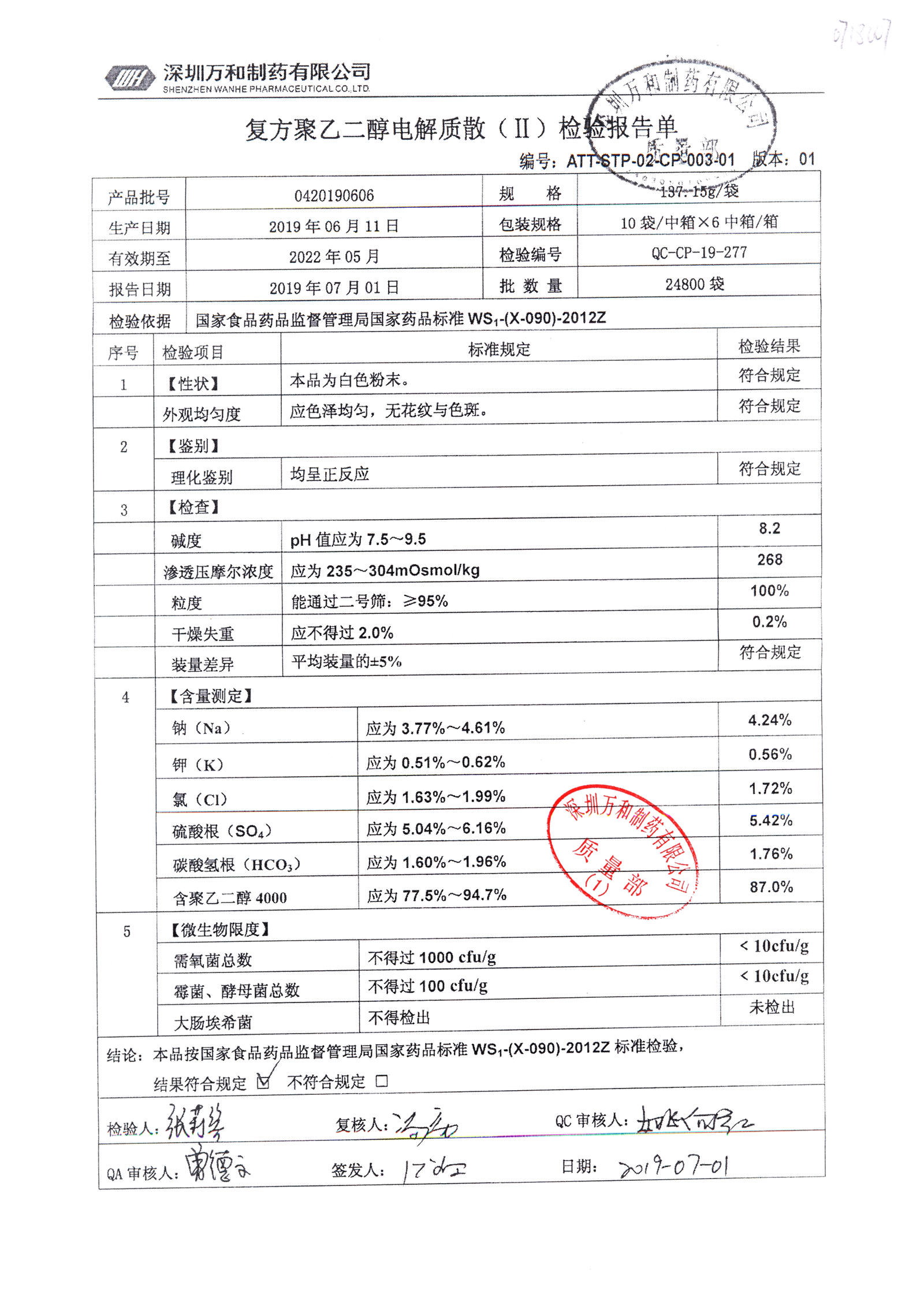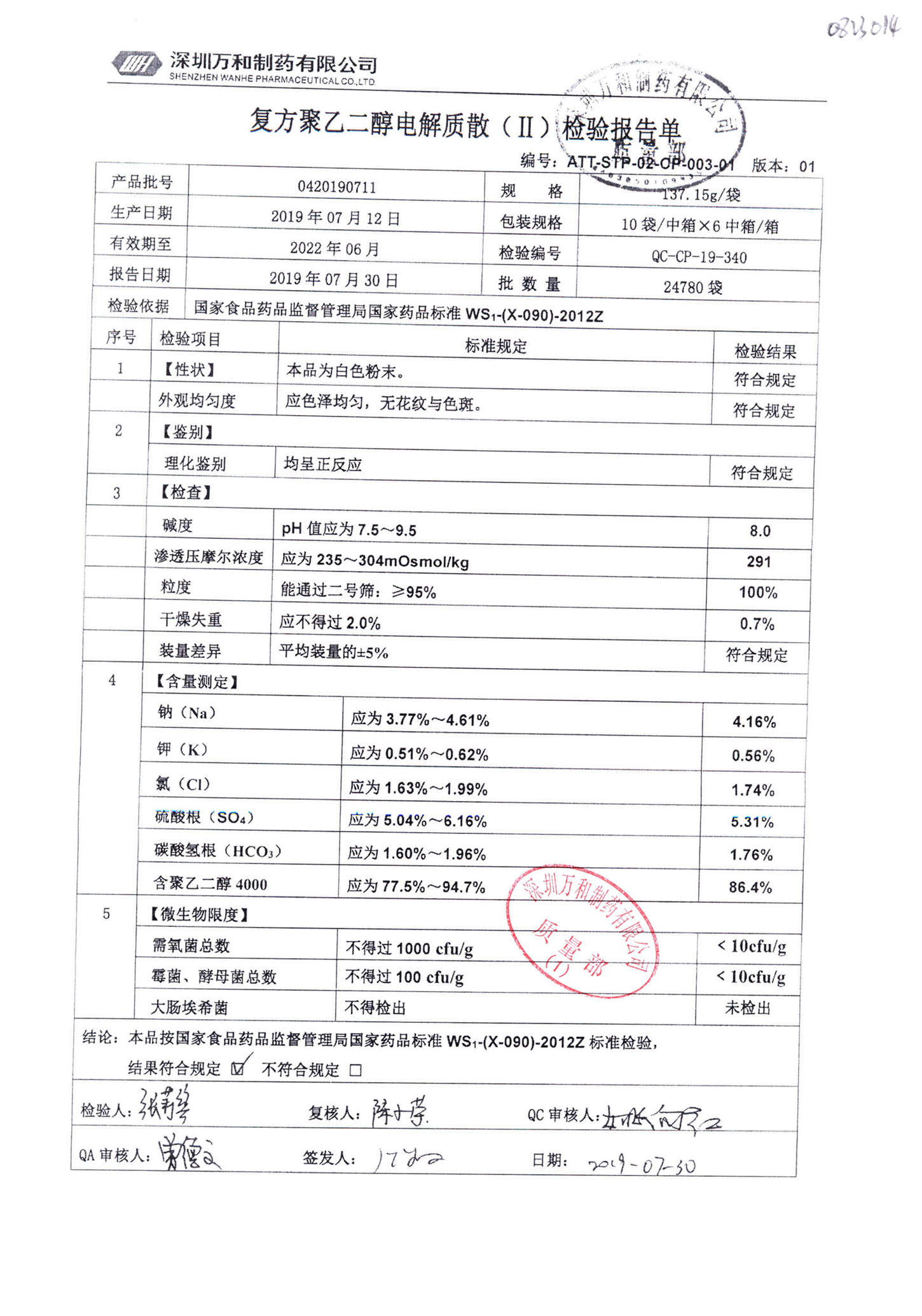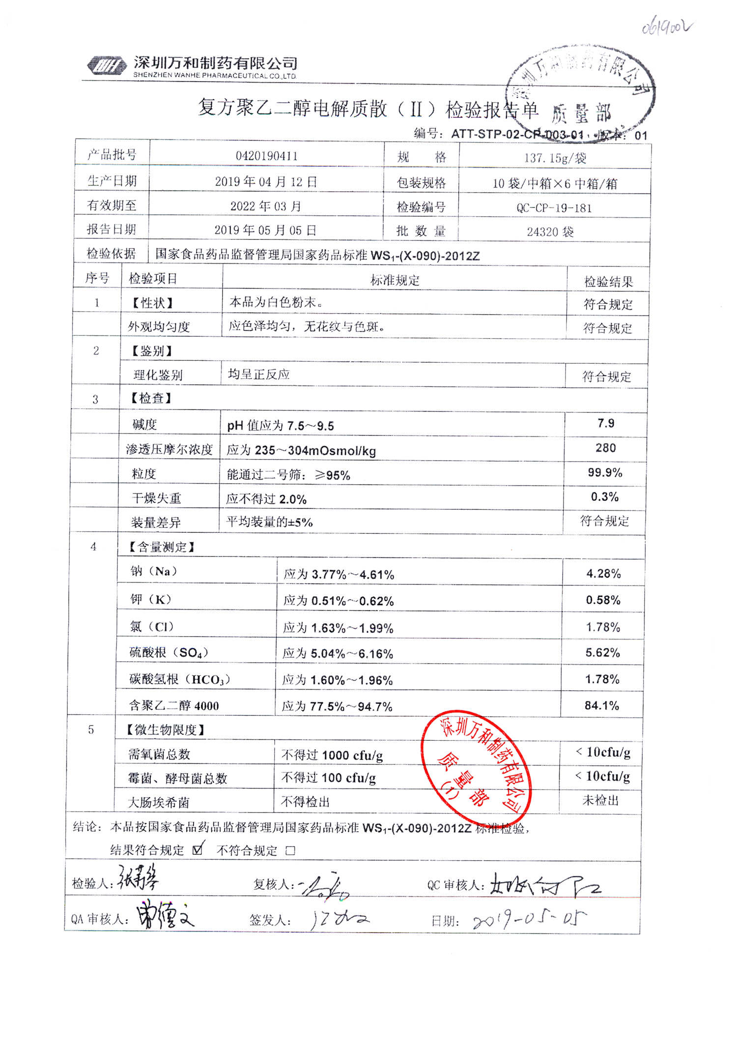 复方聚乙二醇电解质散(II) | 137.15g*10袋 | 0420190711 | 查看详情 |