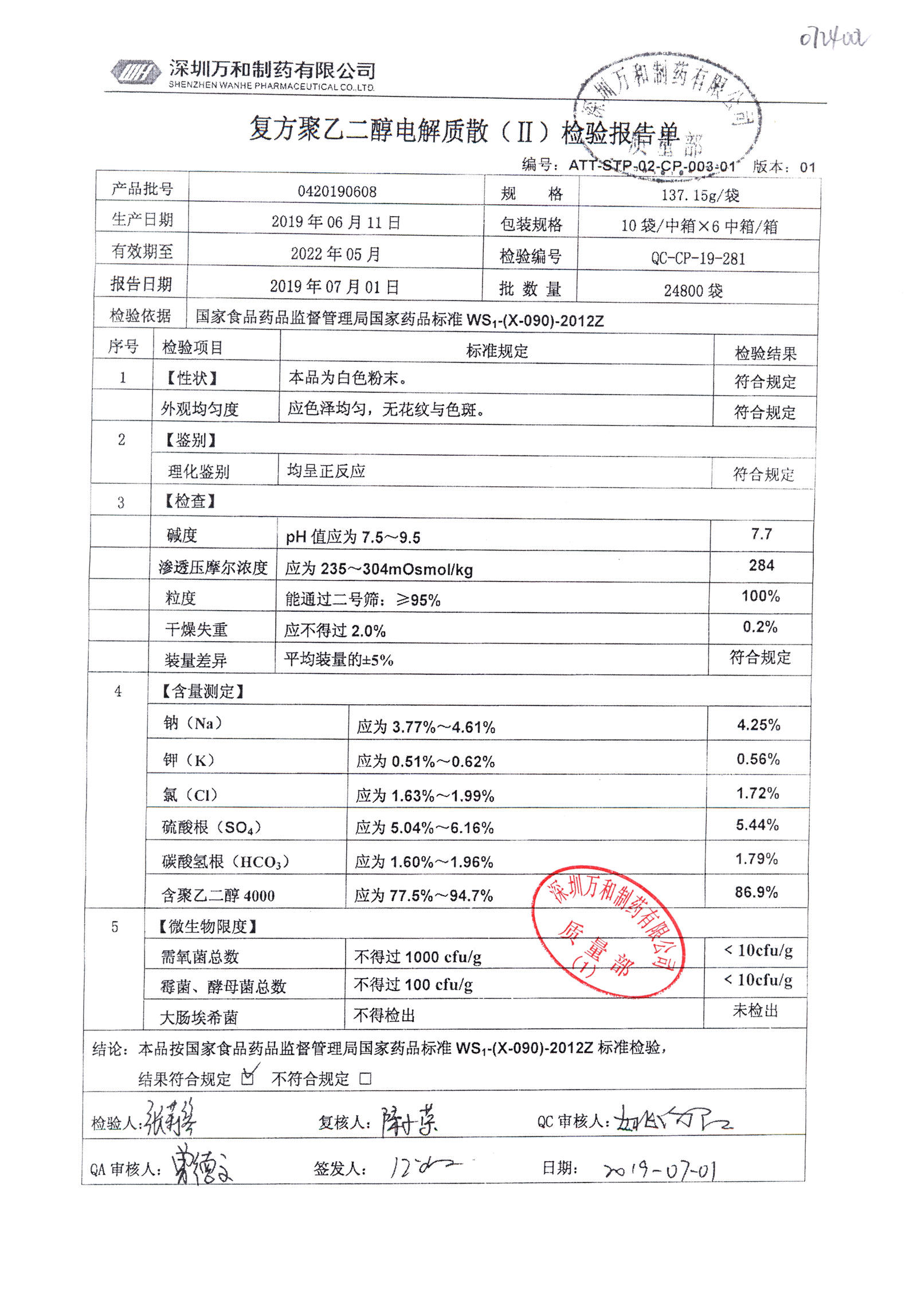 复方聚乙二醇电解质散(II) | 137.15g*10袋 | 0420190608 | 查看详情 |