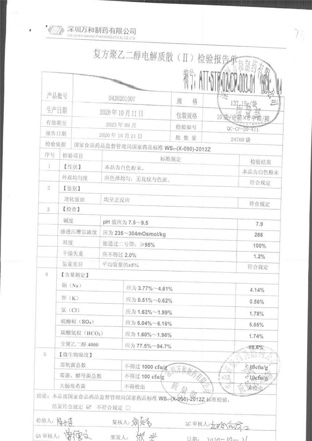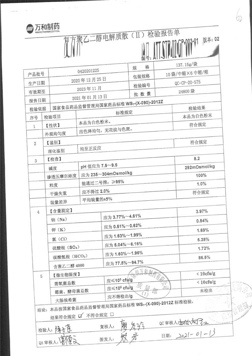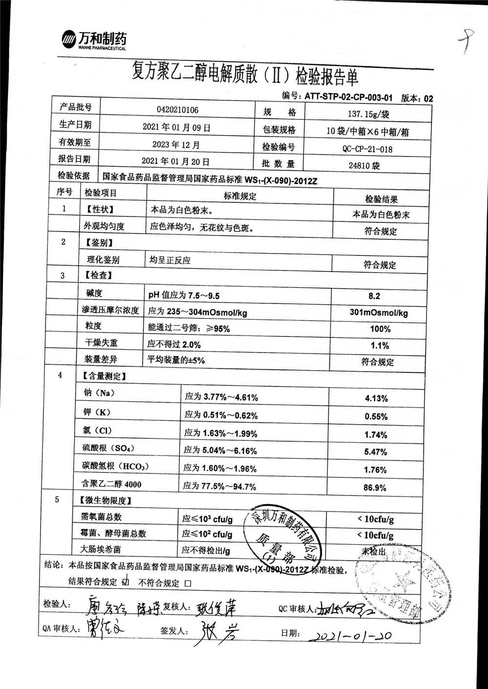 复方聚乙二醇电解质散(II) | 137.15g*10袋 | 0420201225 | 查看详情 |