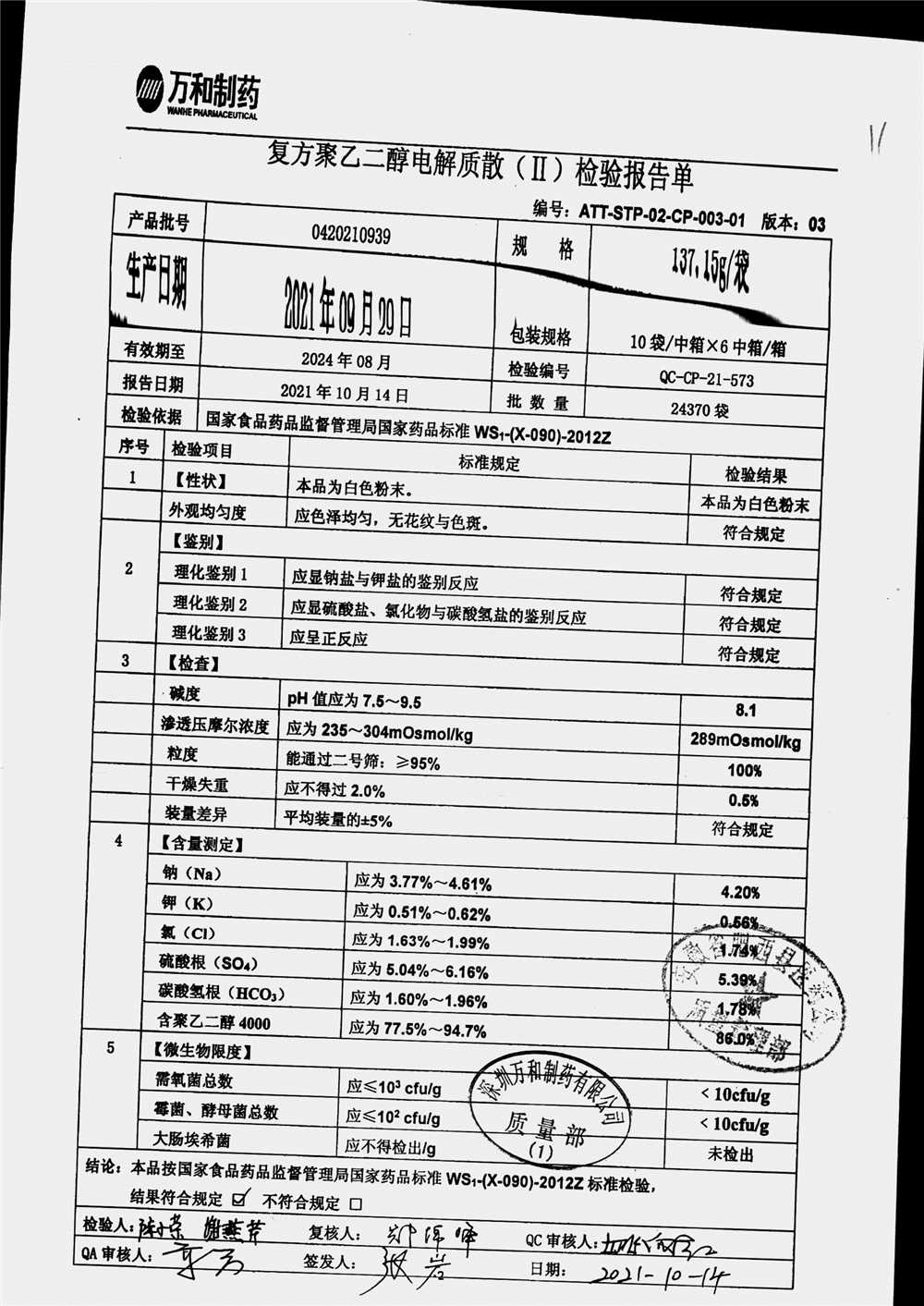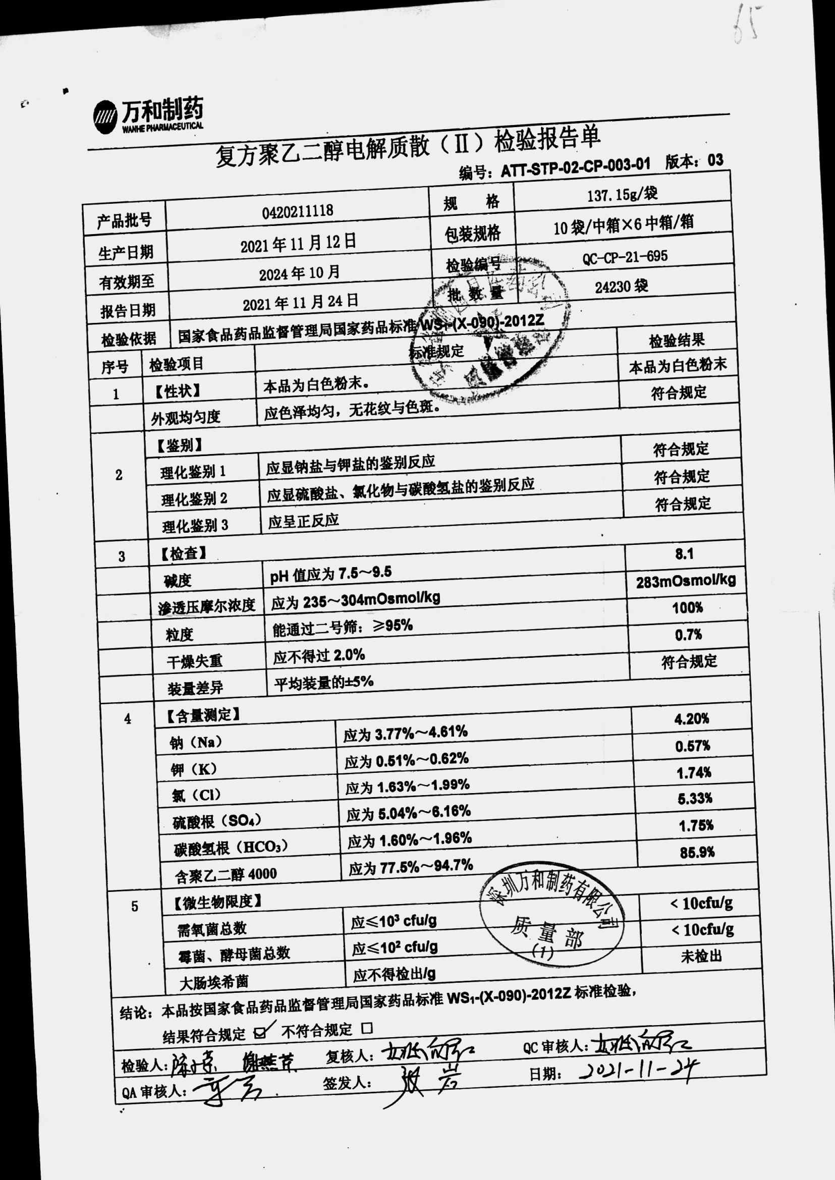 复方聚乙二醇电解质散(II) | 137.15g*10袋 | 0420211118 | 查看详情 |
