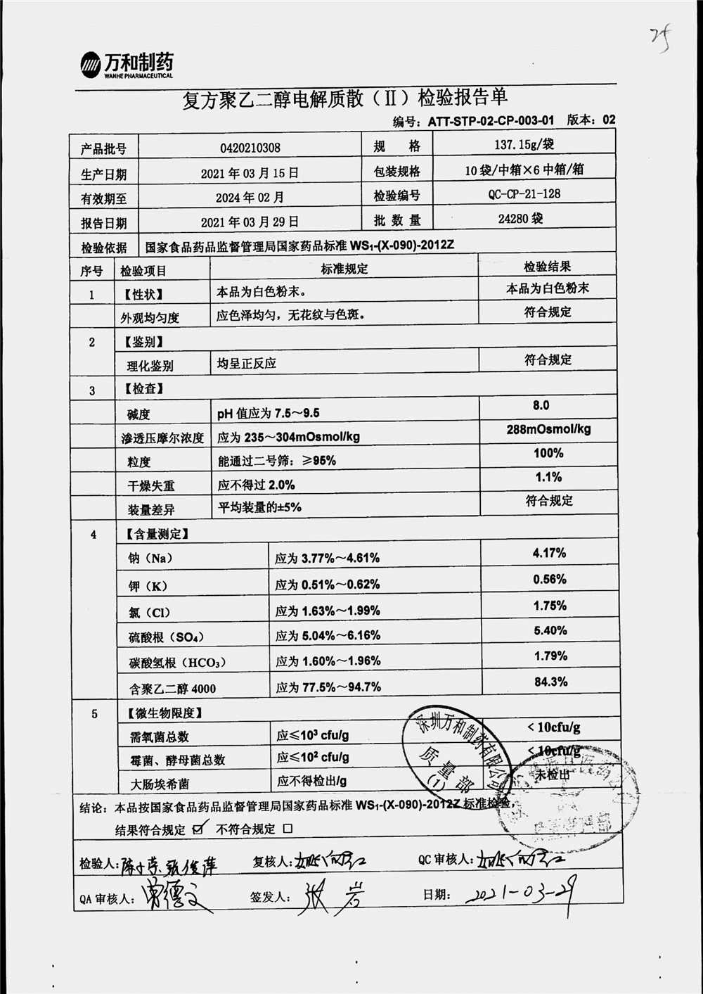 复方聚乙二醇电解质散(II) | 137.15g*10袋 | 0420210308 | 查看详情 |