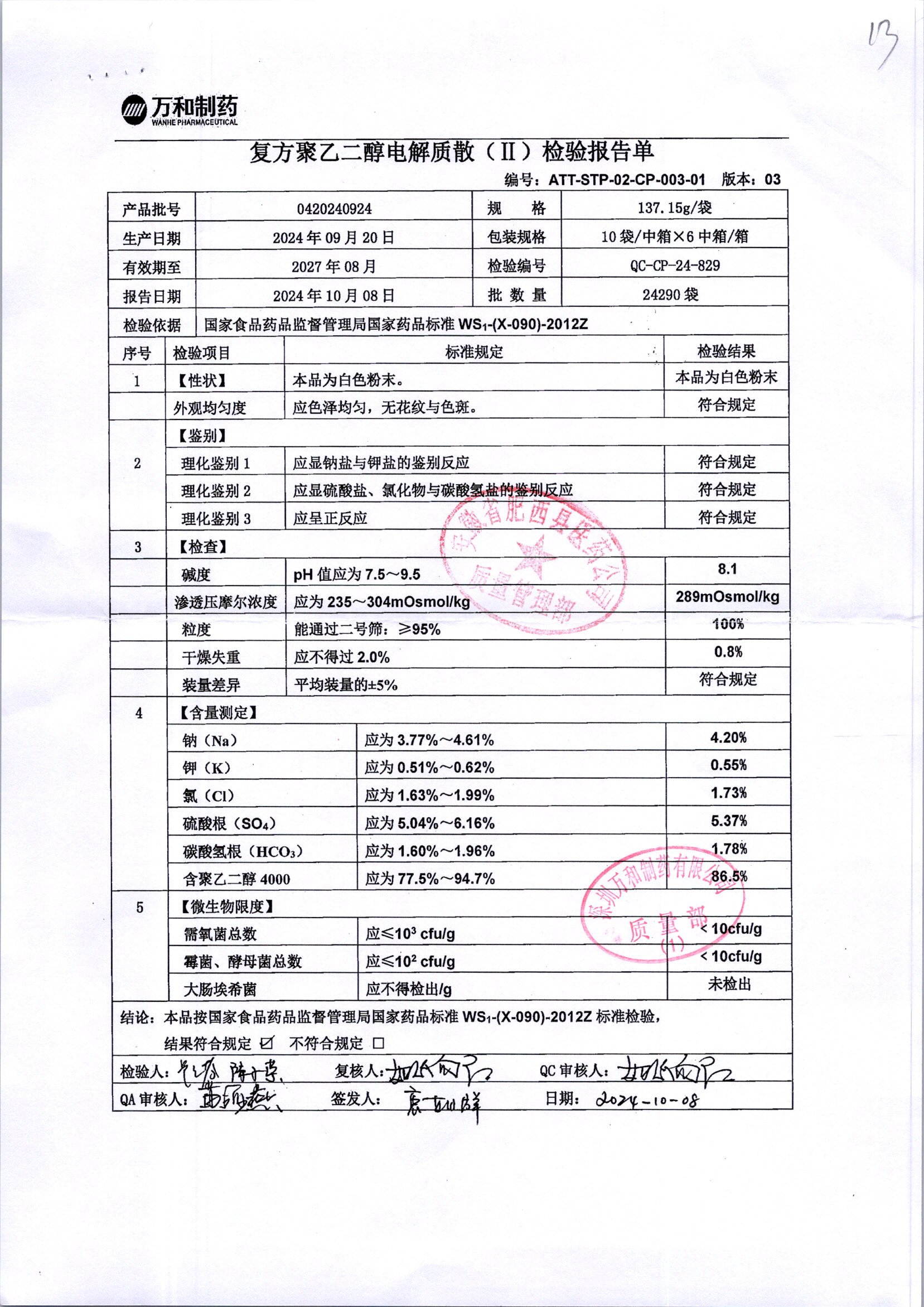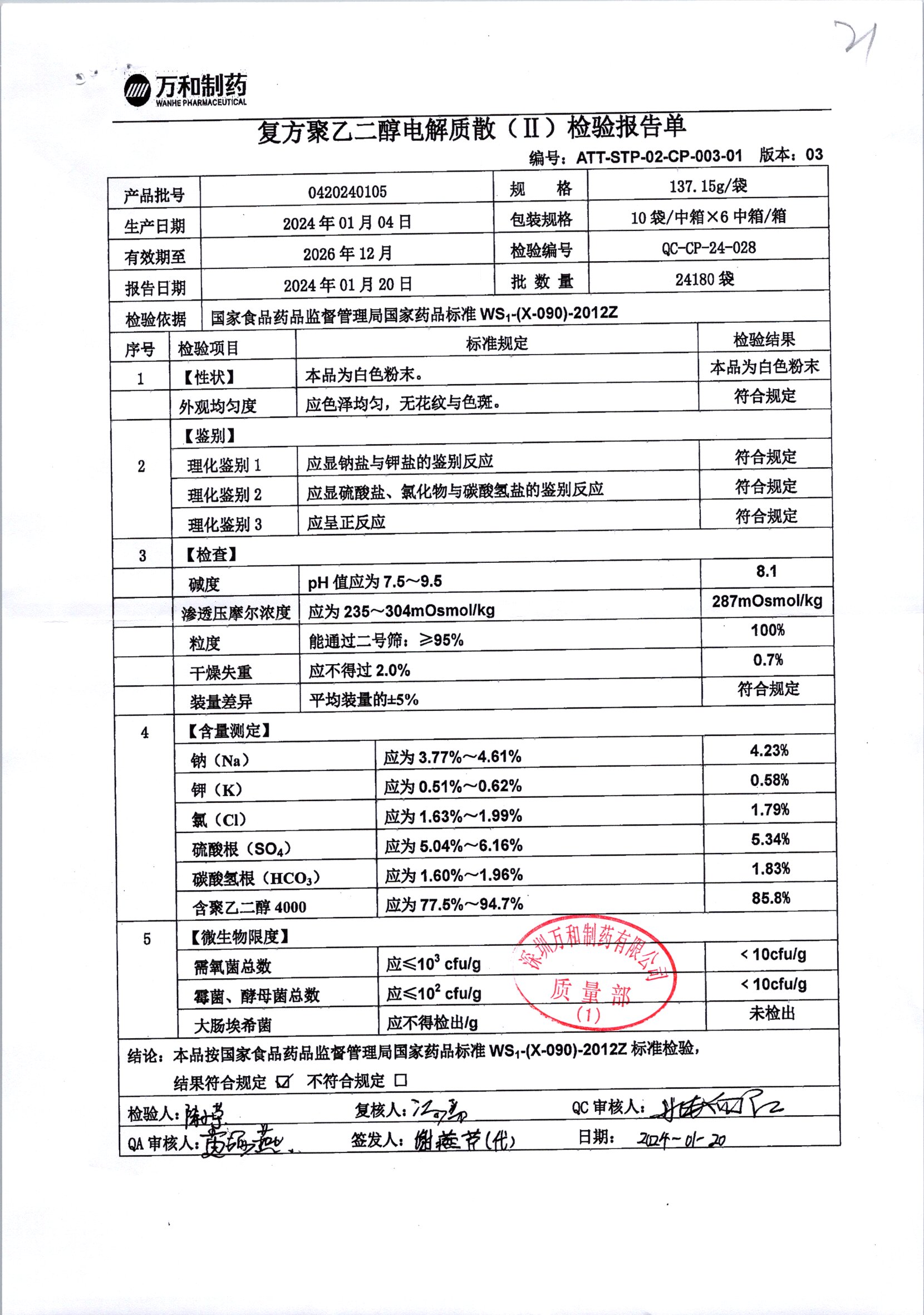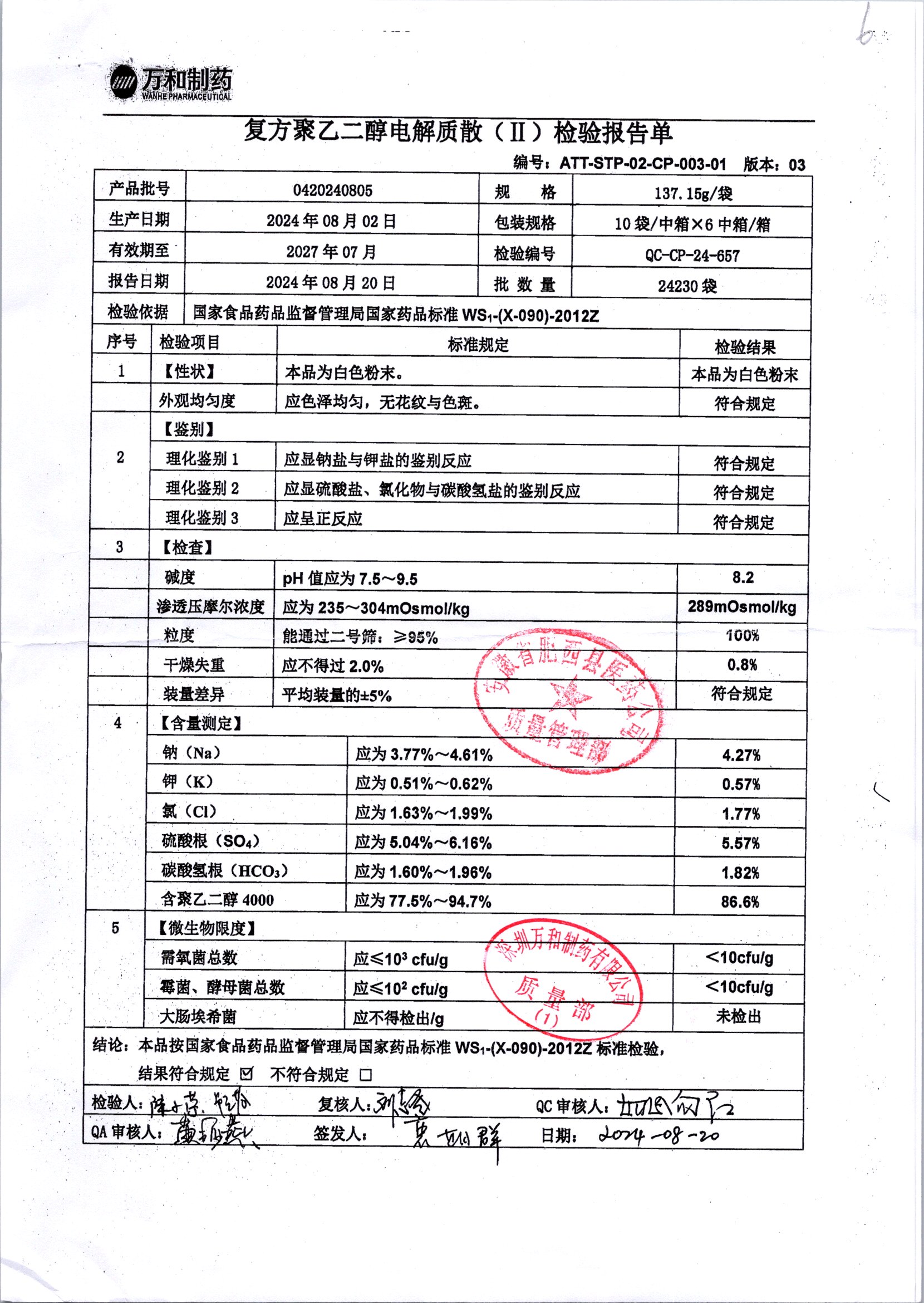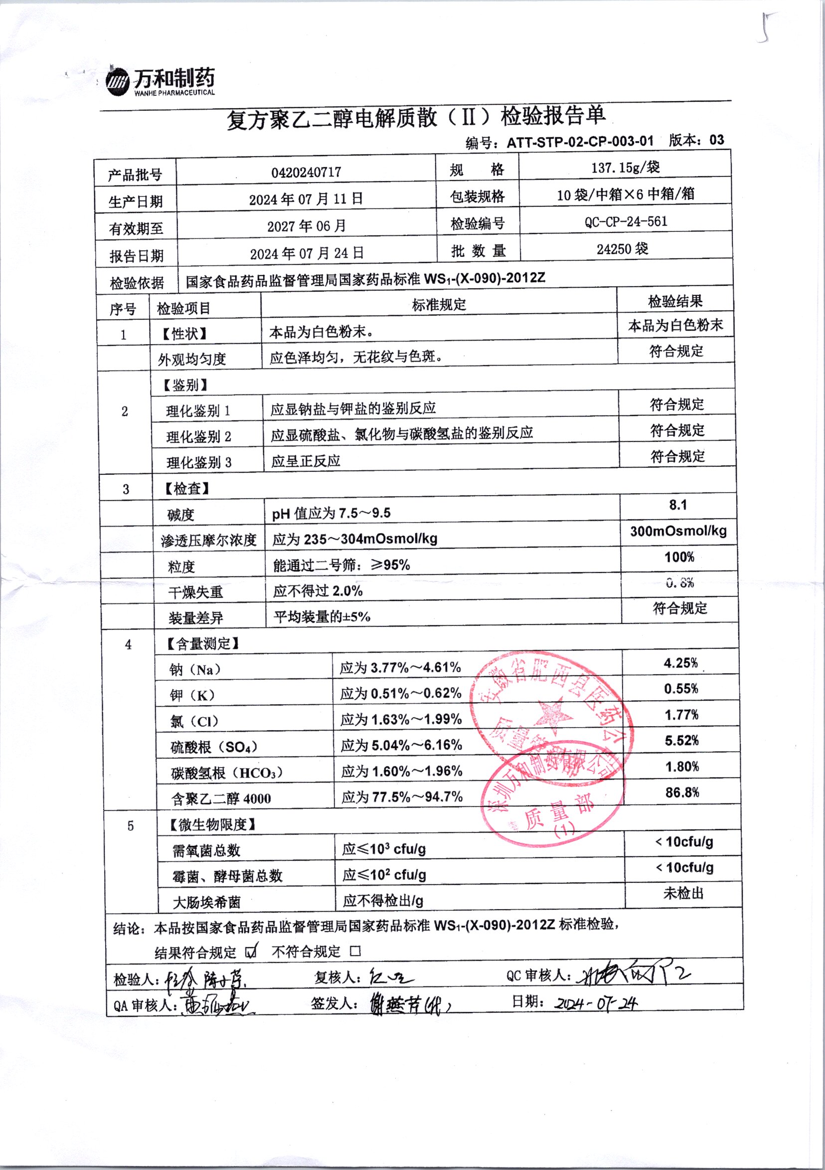 复方聚乙二醇电解质散(II) | 137.15g*10袋 | 0420240717 | 查看详情 |