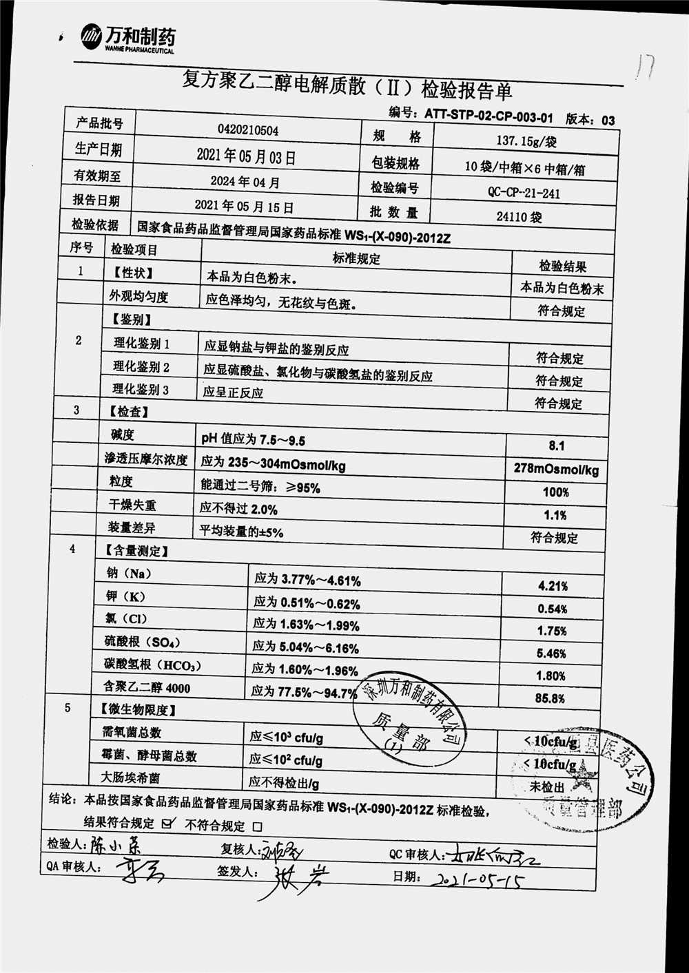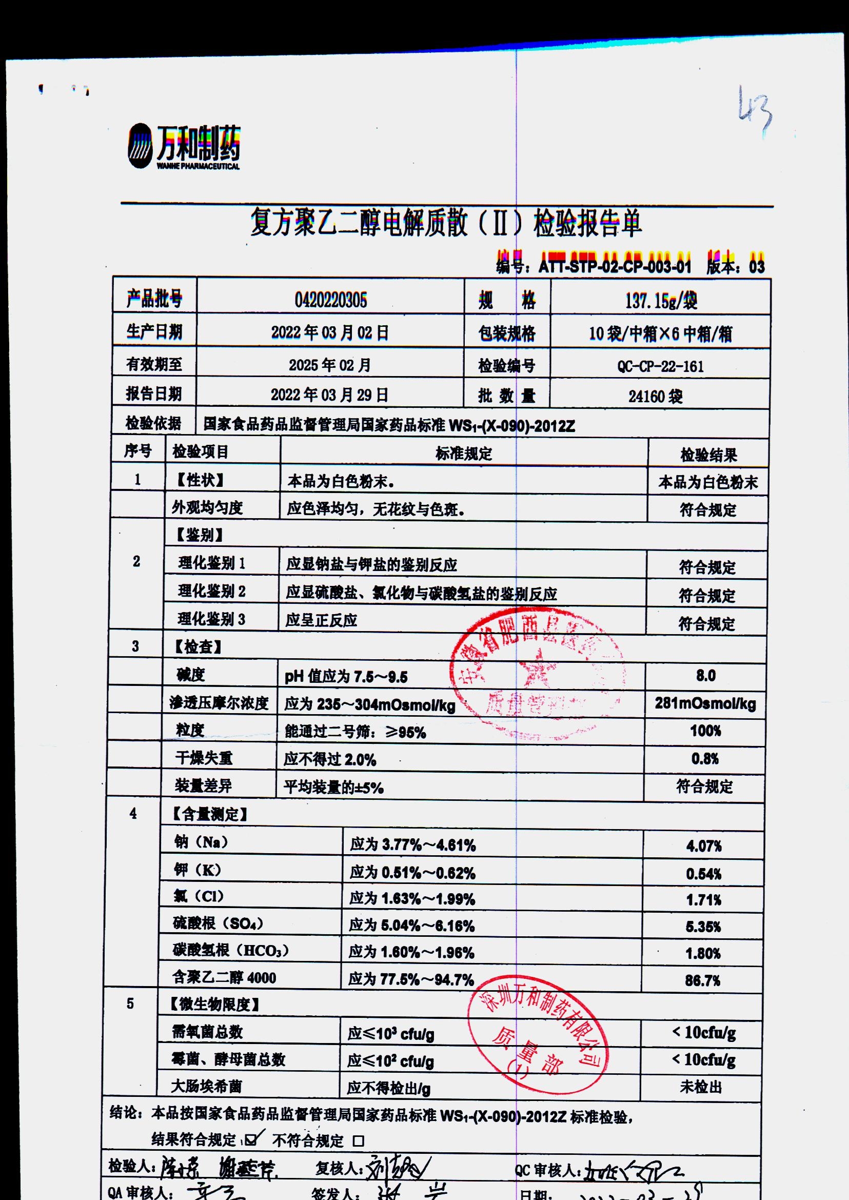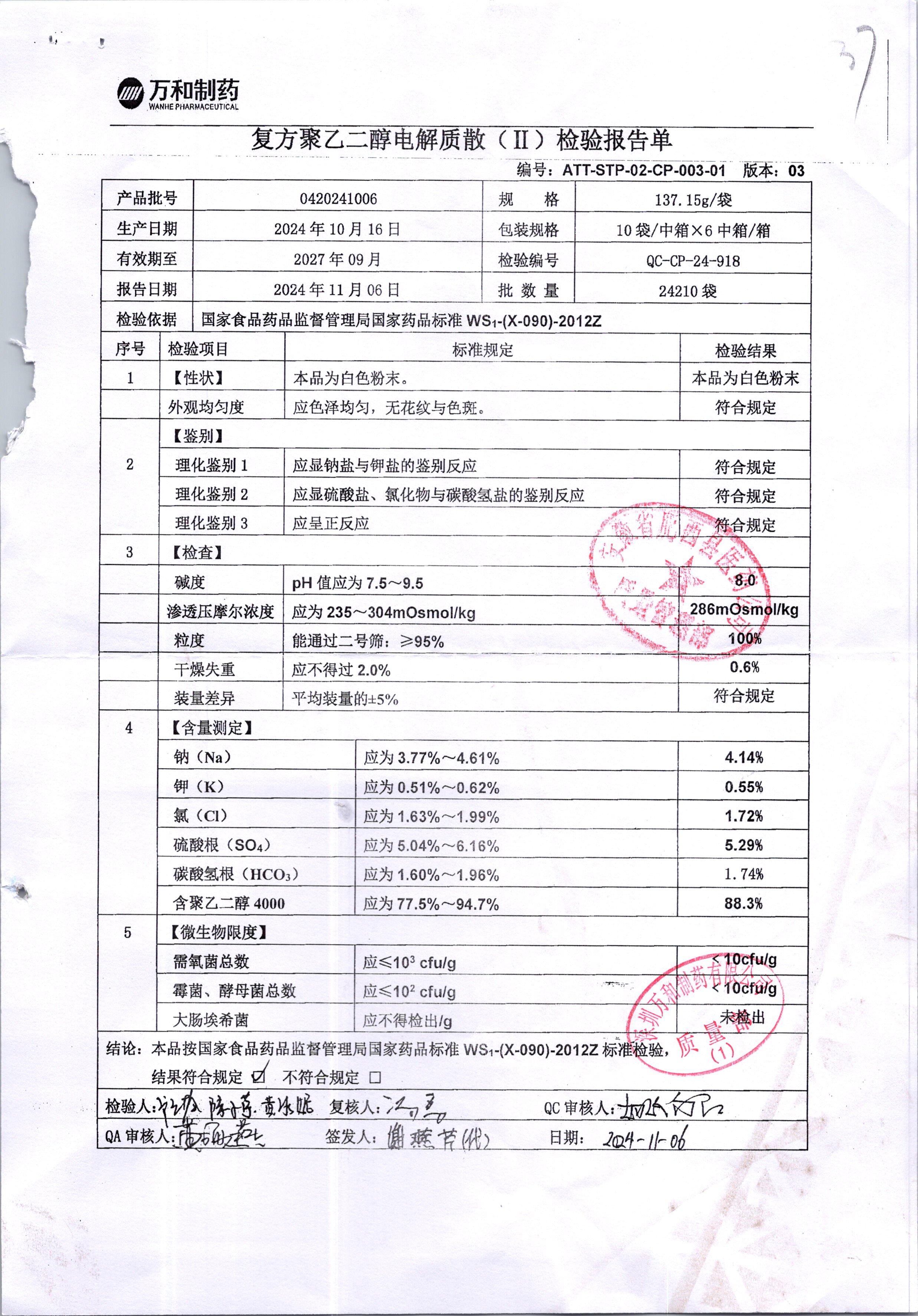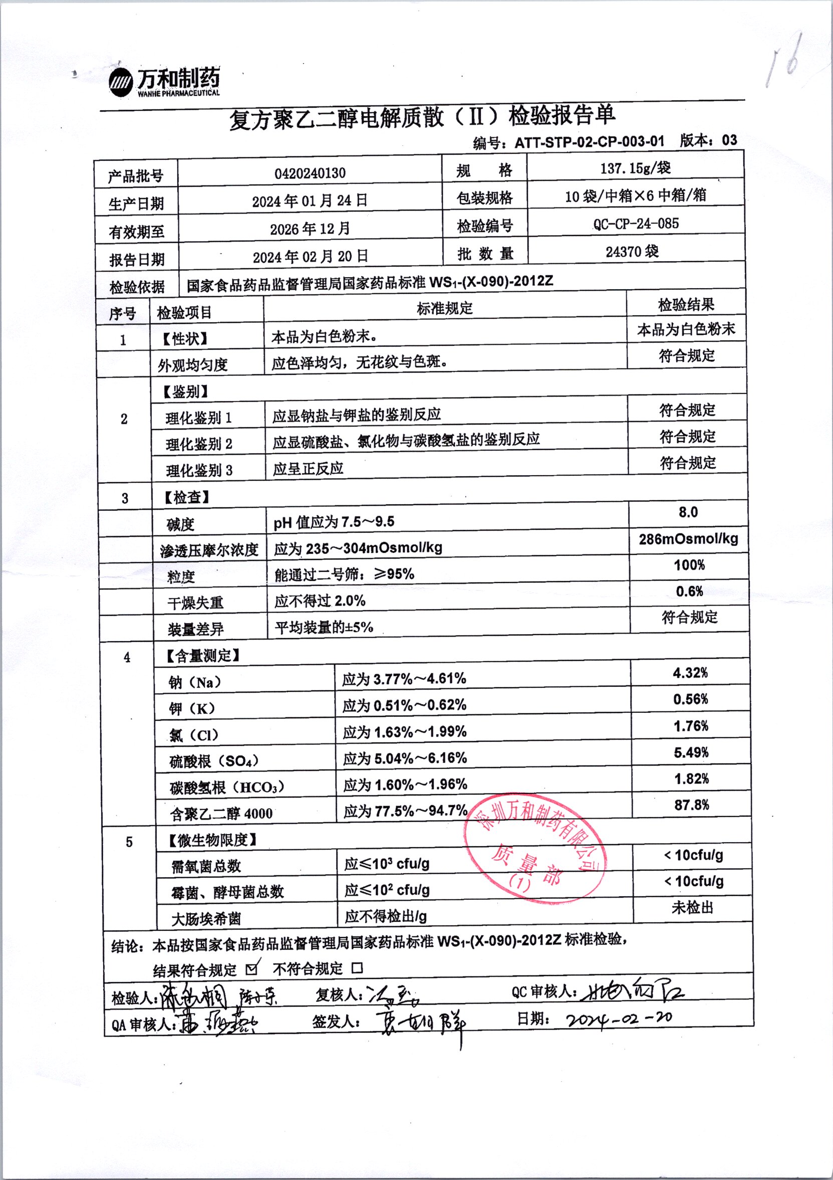 复方聚乙二醇电解质散(II) | 137.15g*10袋 | 0420240717 | 查看详情 |