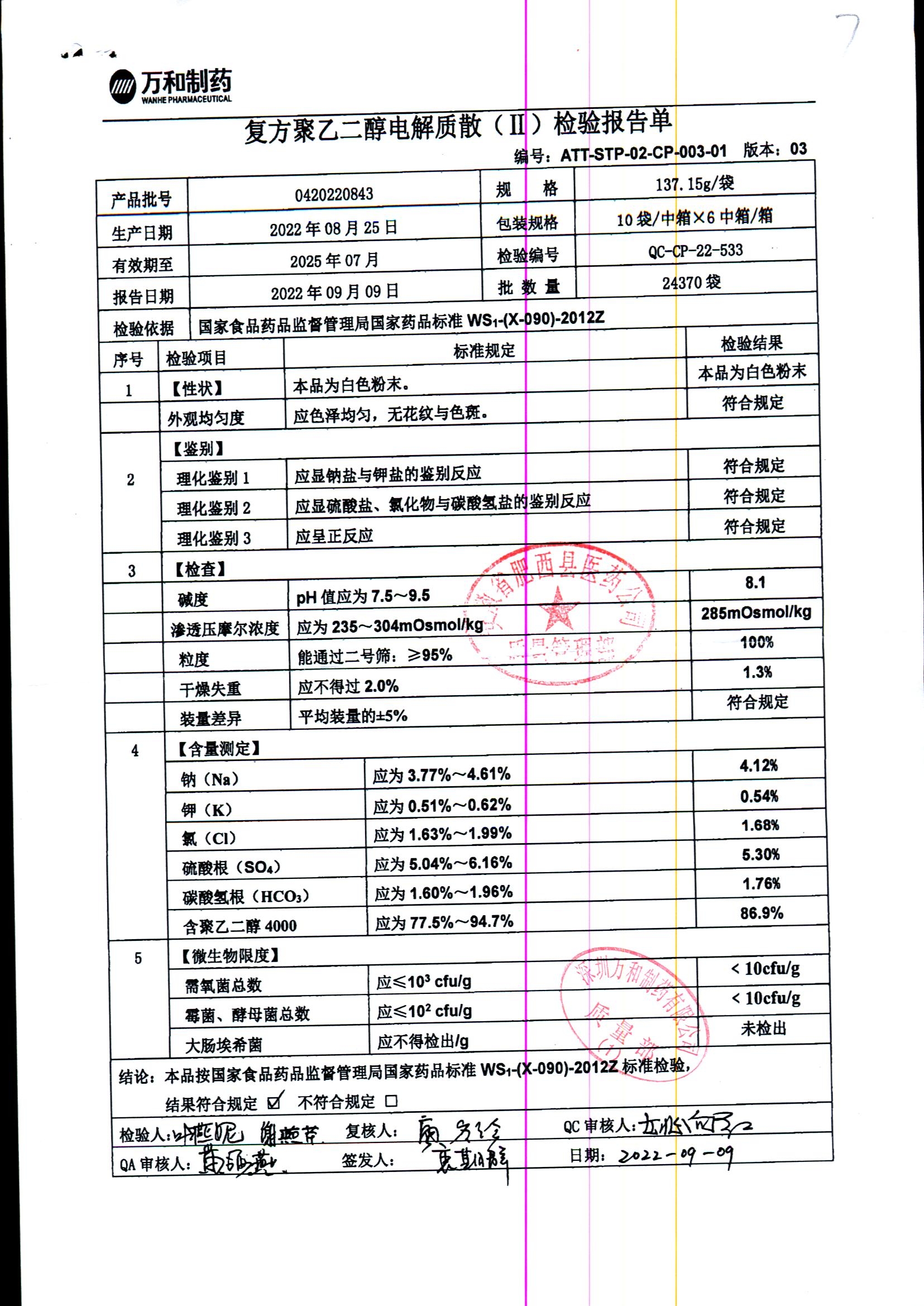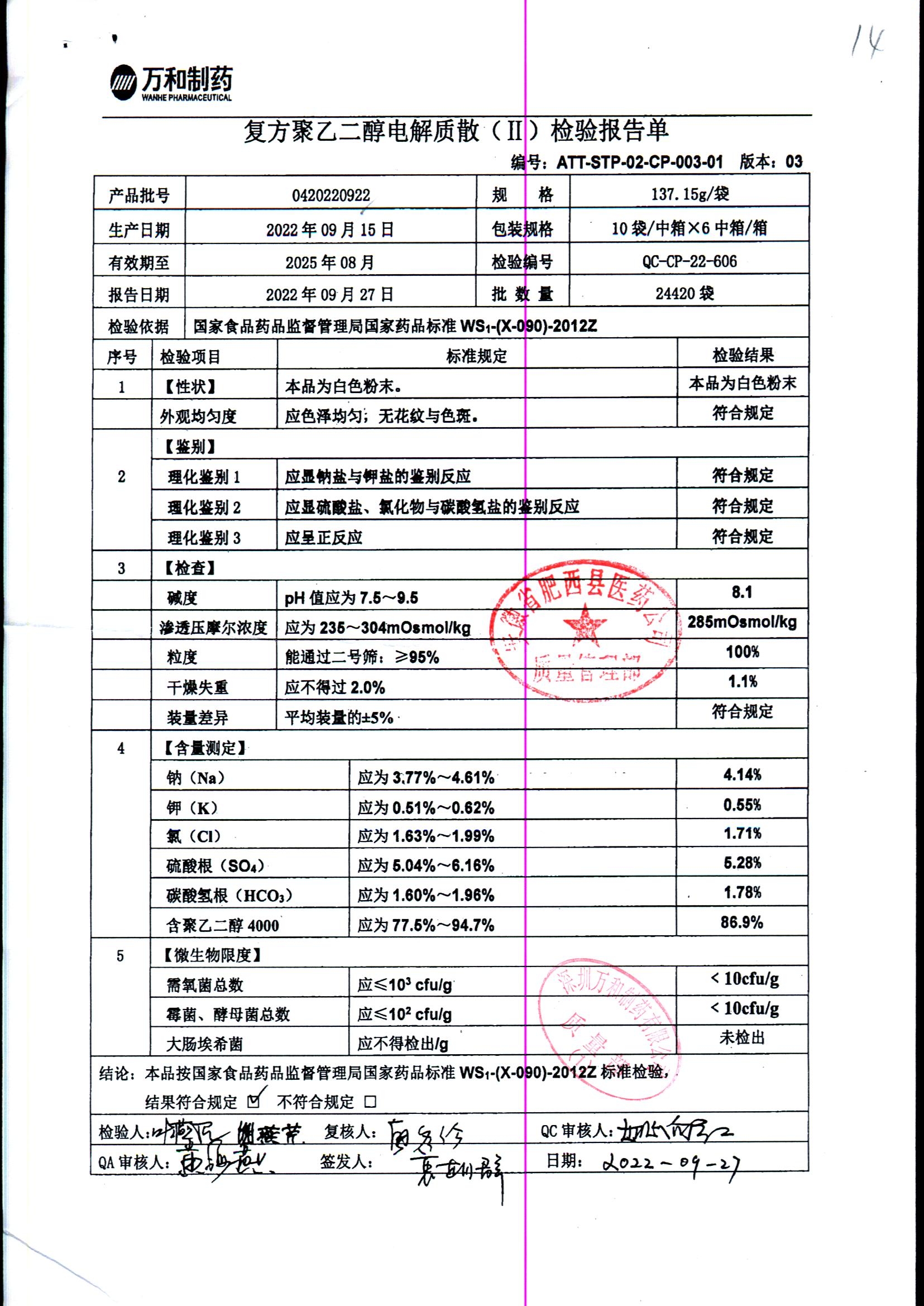复方聚乙二醇电解质散(II) | 137.15g*10袋 | 0420230550 | 查看详情 |