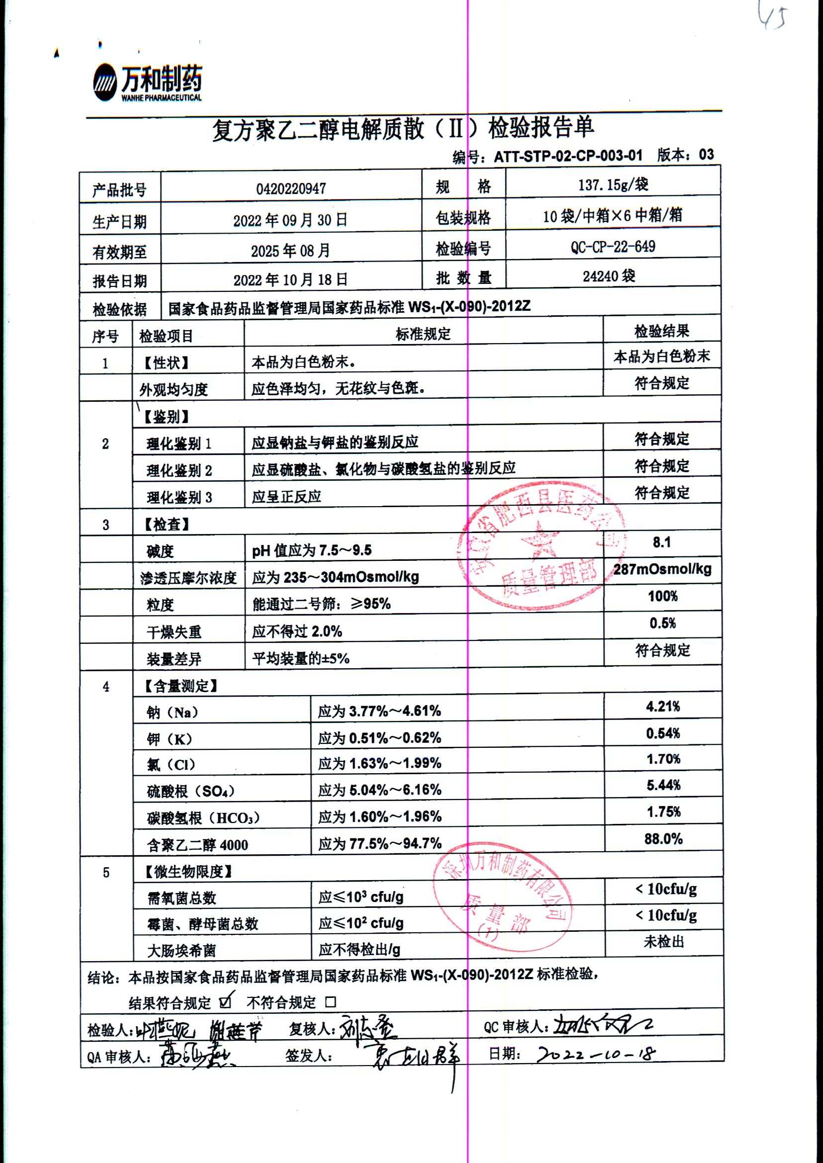 复方聚乙二醇电解质散(II) | 137.15g*10袋 | 0420220922 | 查看详情 |