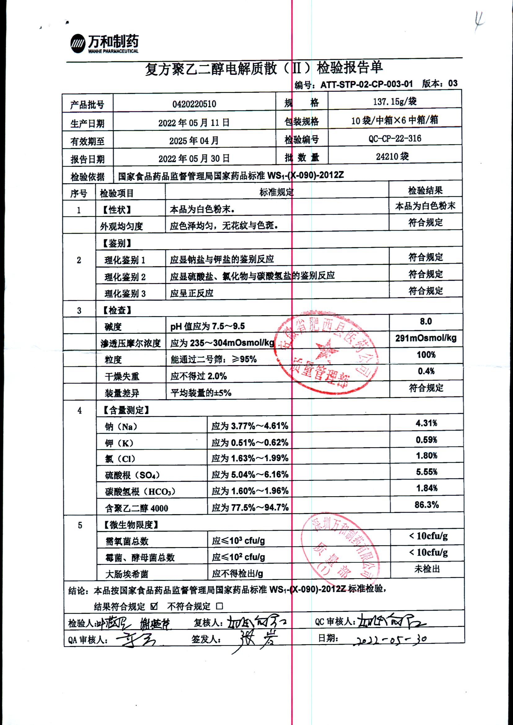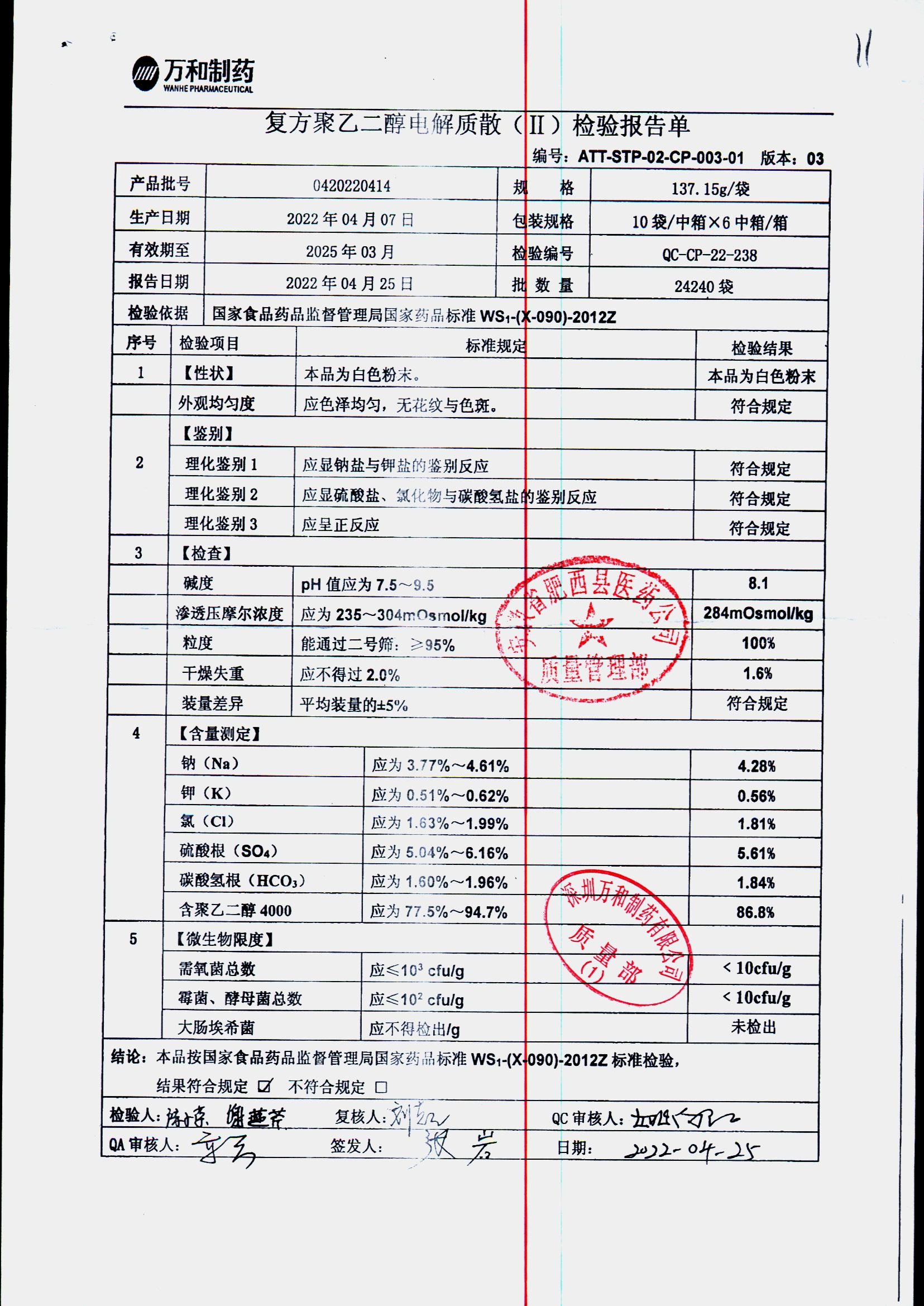复方聚乙二醇电解质散(II) | 137.15g*10袋 | 0420220510 | 查看详情 |