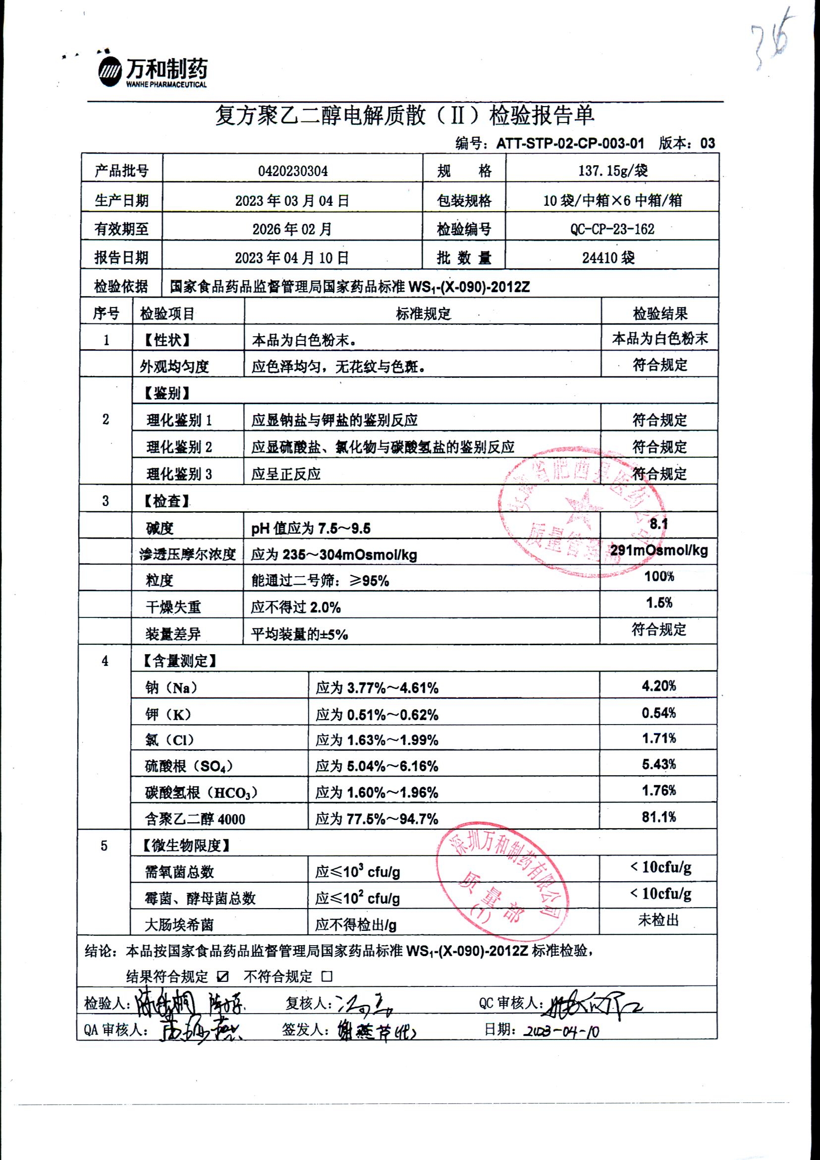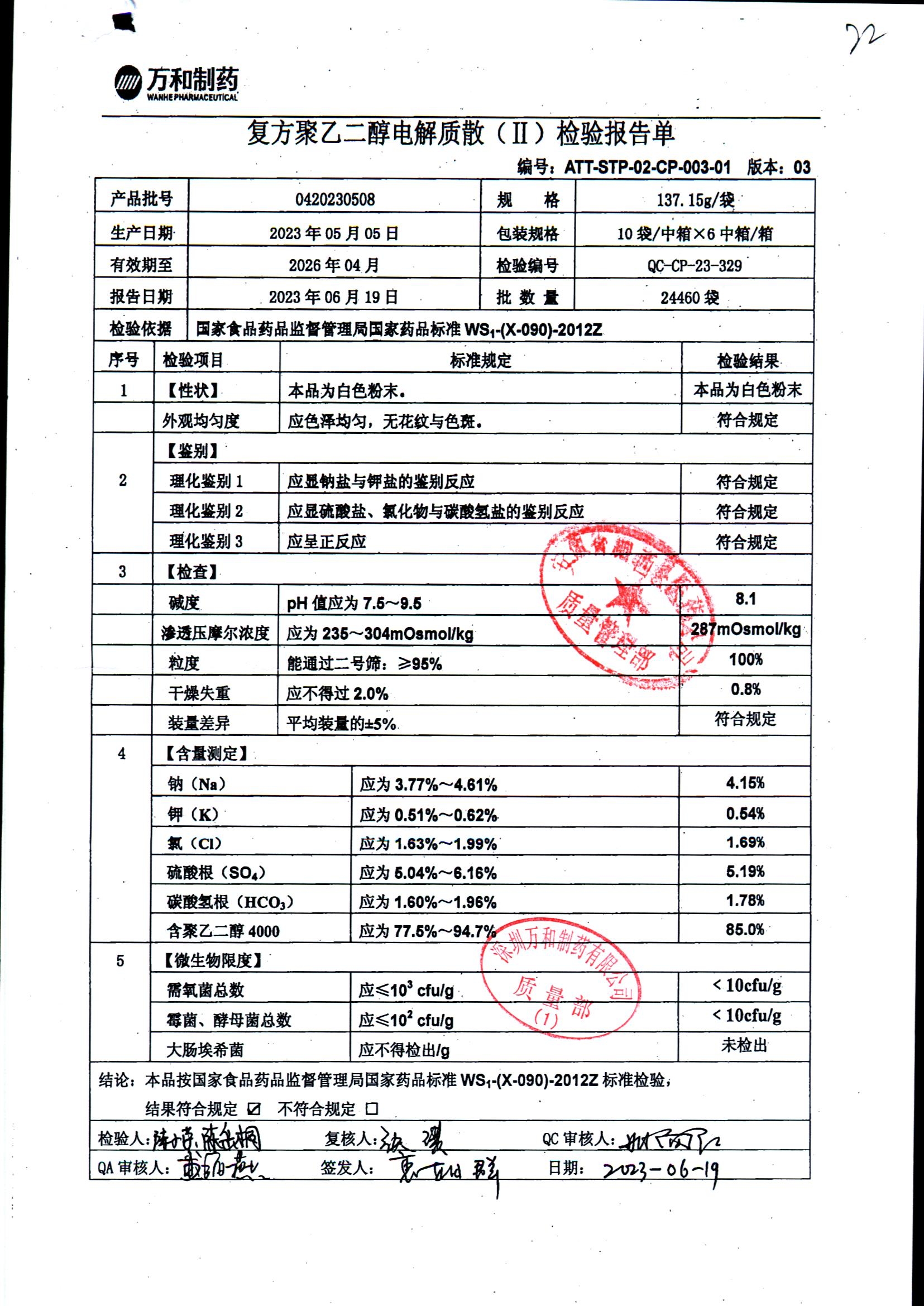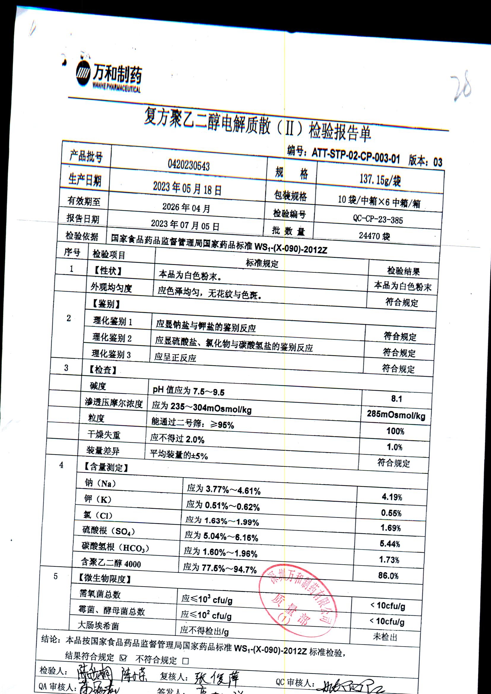 复方聚乙二醇电解质散(II) | 137.15g*10袋 | 0420230304 | 查看详情 |